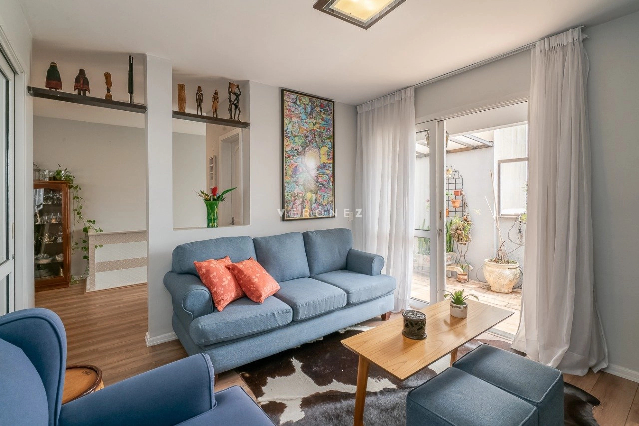 Andar inferior: amplo living integrado à cozinha americana, área de serviço completa e 3 dormitórios, sendo 1 suíte espaçosa.