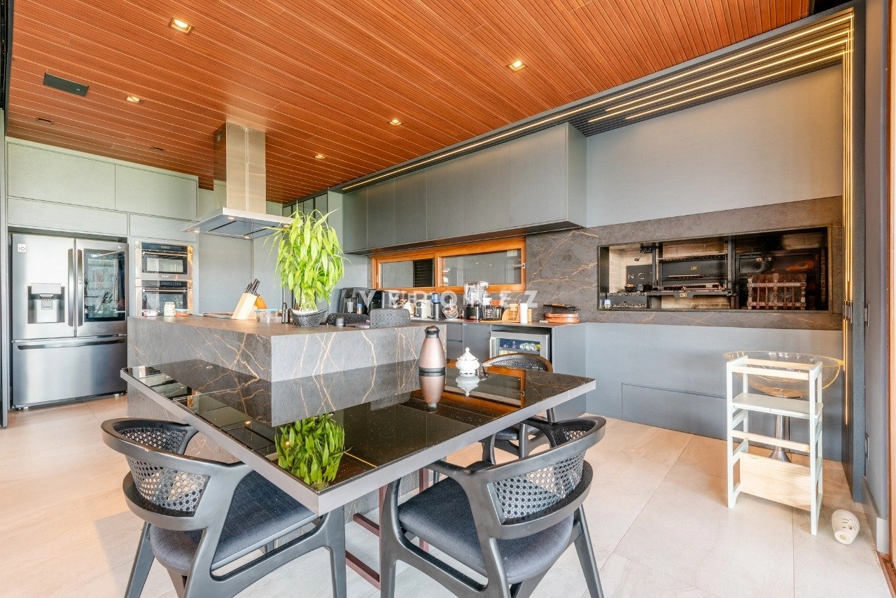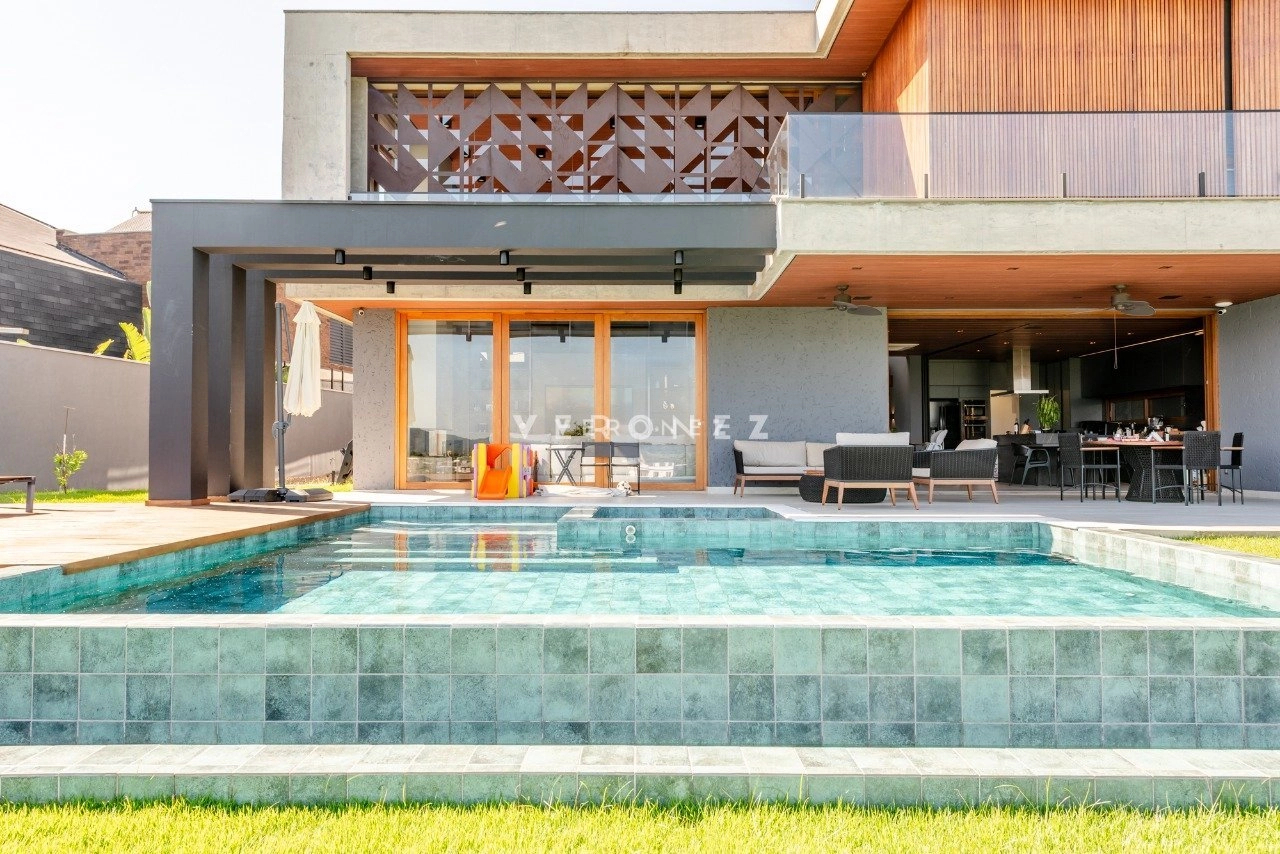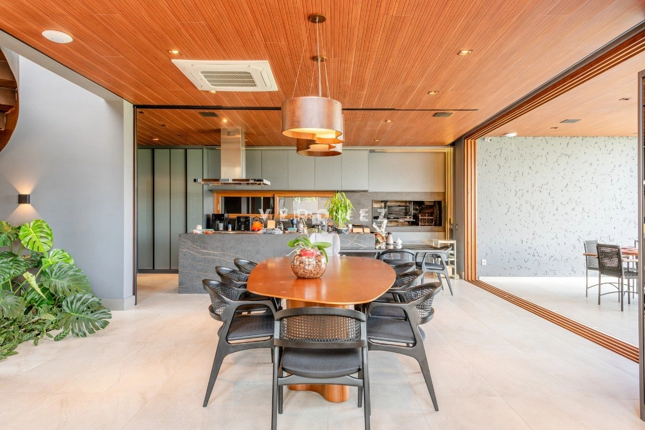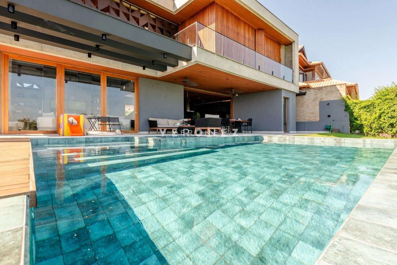 Uma residência impecável, assinada por um escritório de arquitetura renomado que personifica sofisticação, inovação e conforto absoluto. Com 608m² de área construída em um terreno de 1.100m², esta obra-prima arquitetônica oferece uma experiência única de morar bem. Sua fachada imponente, realçada por um espelho d?água, antecipa a excelência dos interiores, onde cada detalhe reflete exclusividade. A cozinha italiana, revestida com pedras Dekton, harmoniza-se com acabamentos nobres, como esquadrias em PVC amadeirado e piso Porto Bello.