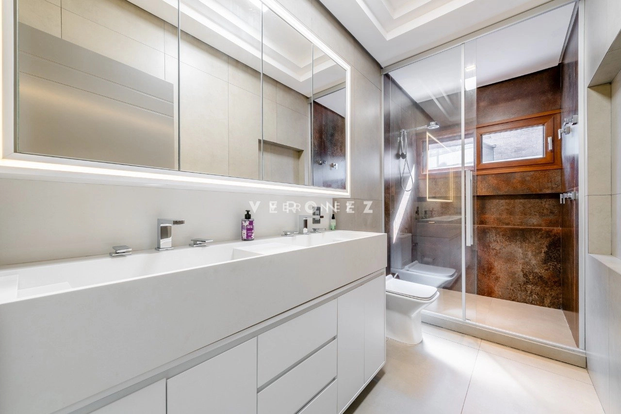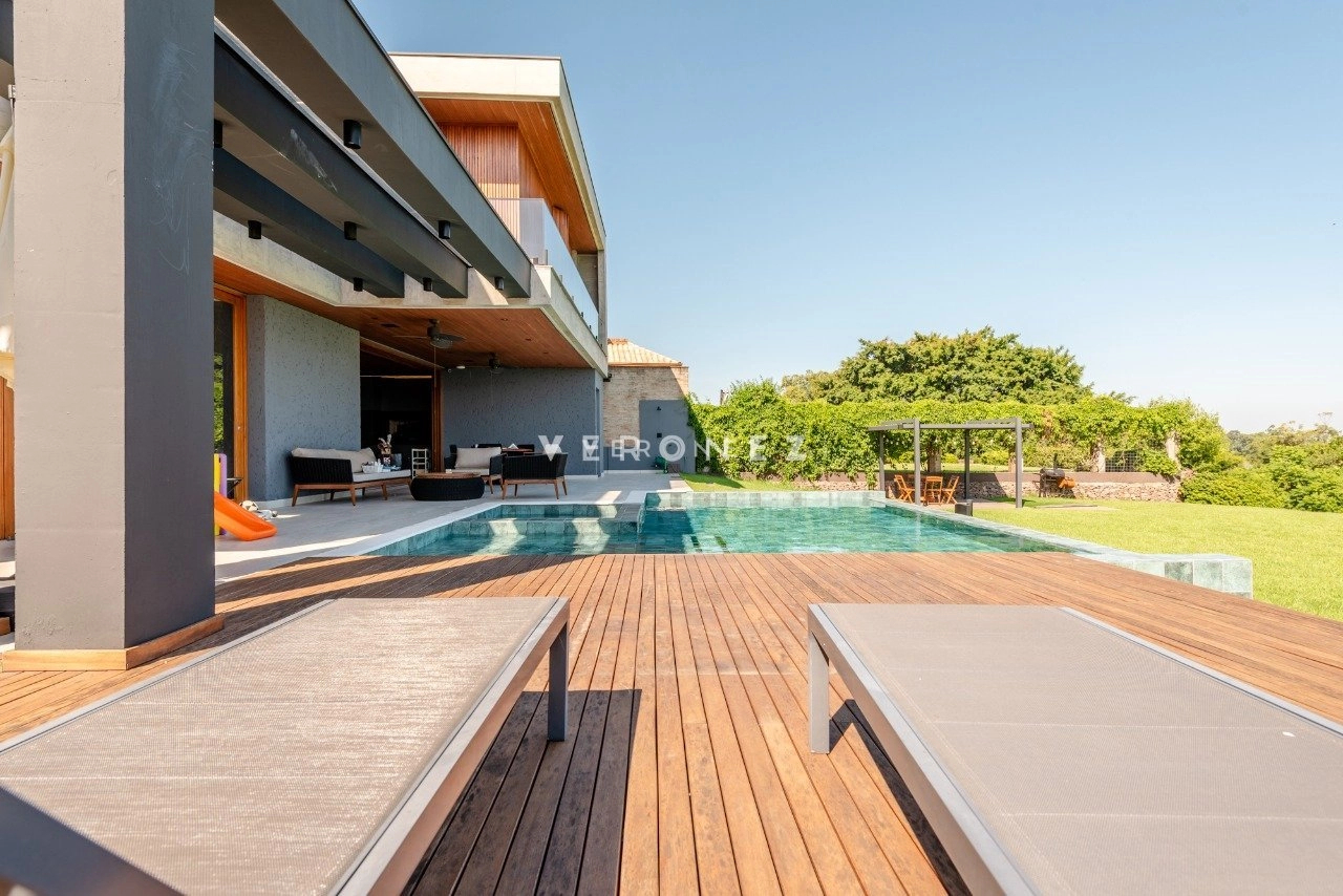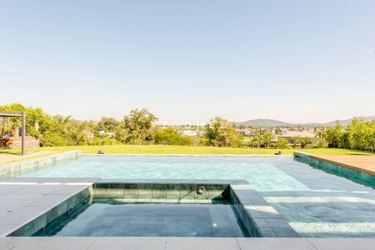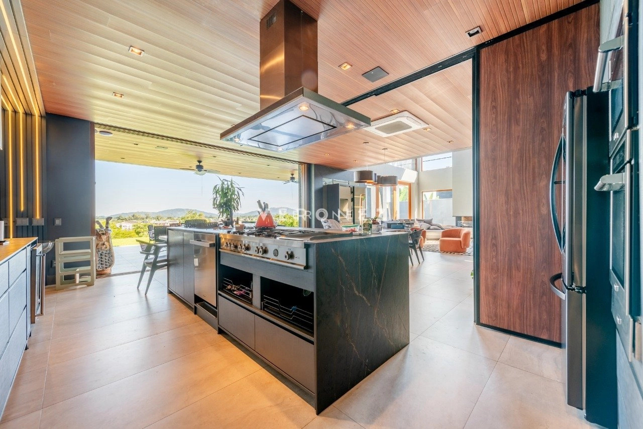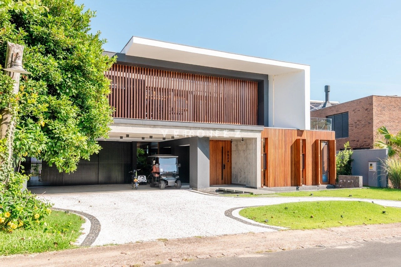 Uma residência impecável, assinada por um escritório de arquitetura renomado que personifica sofisticação, inovação e conforto absoluto. Com 608m² de área construída em um terreno de 1.100m², esta obra-prima arquitetônica oferece uma experiência única de morar bem. Sua fachada imponente, realçada por um espelho d?água, antecipa a excelência dos interiores, onde cada detalhe reflete exclusividade. A cozinha italiana, revestida com pedras Dekton, harmoniza-se com acabamentos nobres, como esquadrias em PVC amadeirado e piso Porto Bello.