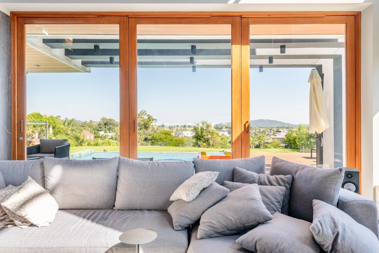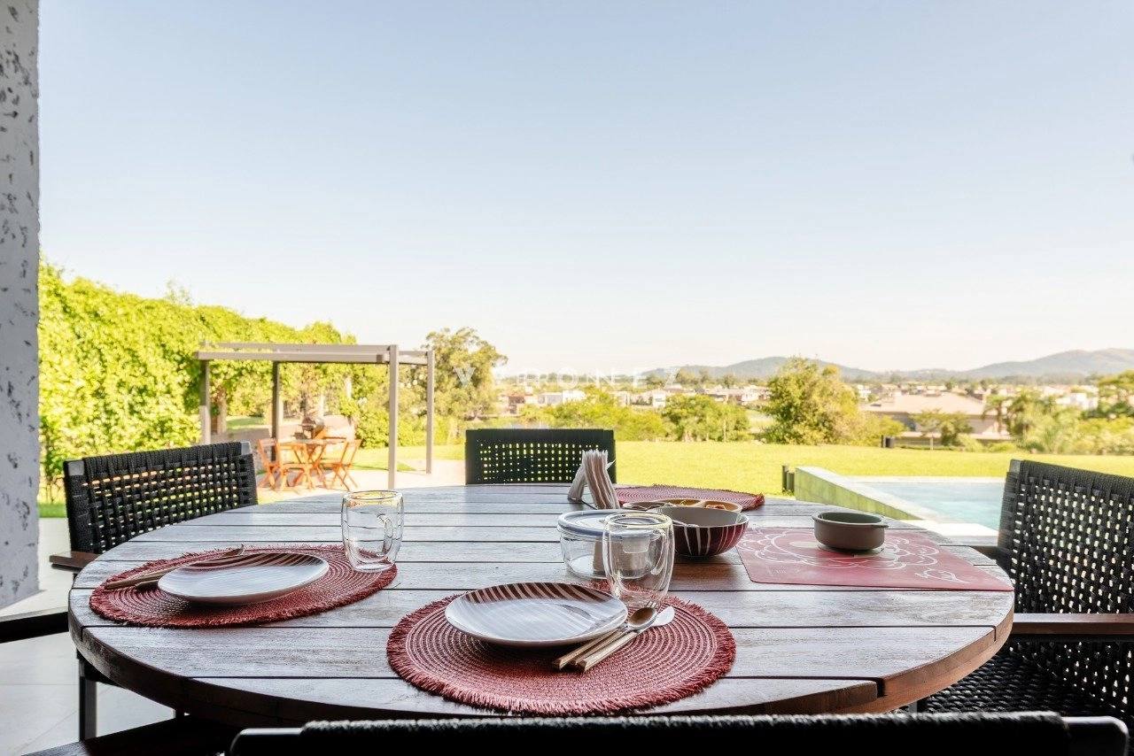 Totalmente automatizada, a residência conta com sistema de som ambiente, rede cabeada, energia solar e nobreak, garantindo máxima eficiência e conforto. O lazer é um espetáculo à parte: piscina, spa e sauna aquecidos, além de um espaço de contemplação com fogo de chão, criam um cenário perfeito para momentos de bem-estar. A suíte master surpreende com flap TV e uma integração impecável ao design contemporâneo, proporcionando um refúgio de requinte e privacidade.