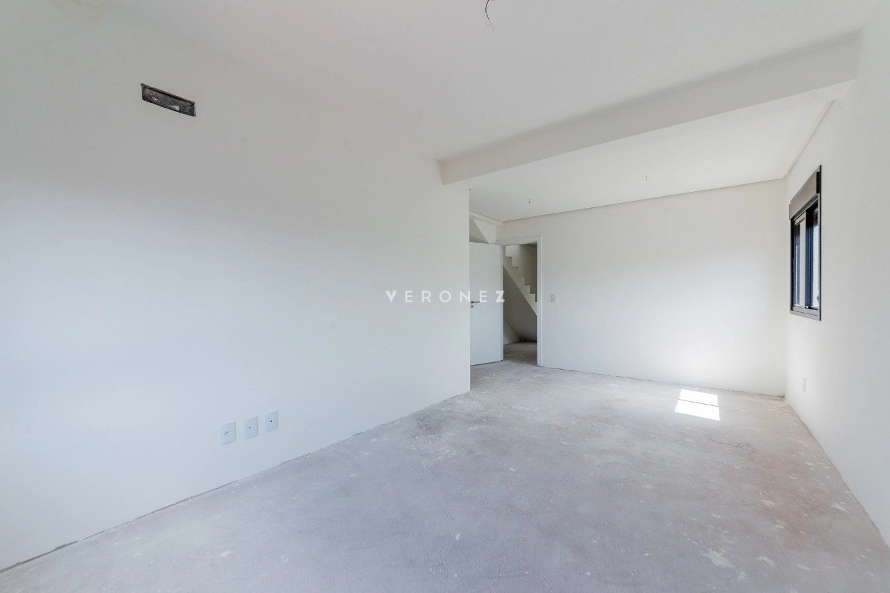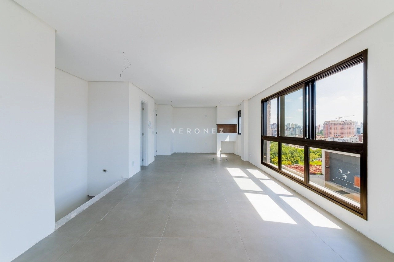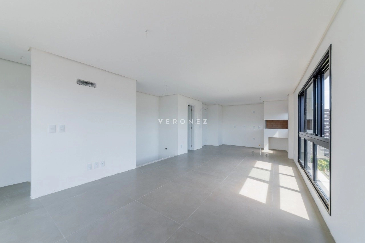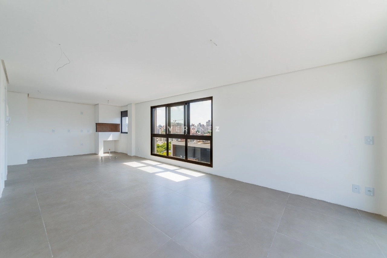Cobertura duplex de 133 m², com 2 dormitórios, sendo 2 suítes. O living é amplo e conta com lareira e churrasqueira, integrando os ambientes de forma funcional. O imóvel possui ainda cozinha e área de serviço. O terraço oferece ampla vista, e o imóvel conta com espera para jacuzzi e hidromassagem. São 2 vagas de garagem.