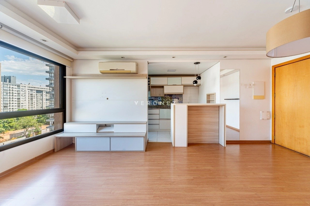 Apartamento de 65 m², com 2 dormitórios, sendo 1 suíte. O living é amplo, com cozinha integrada, churrasqueira e área de serviço separada. O imóvel conta com móveis planejados e splits em todos os ambientes, além de sol da tarde e vista aberta. Possui 1 vaga de garagem.