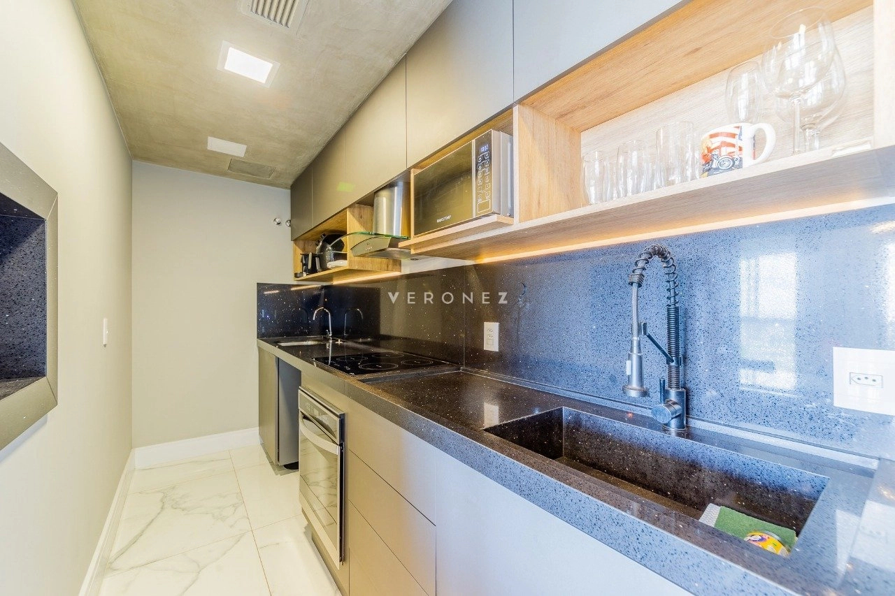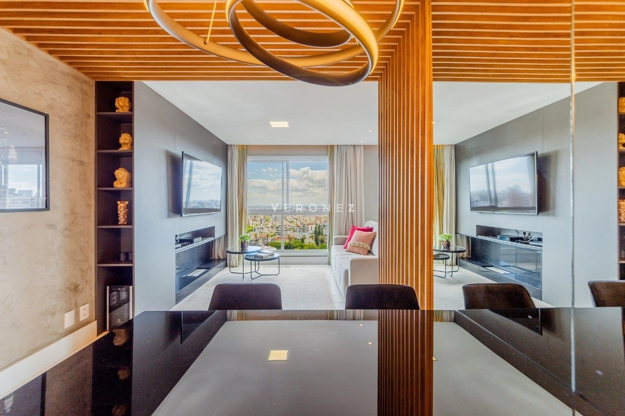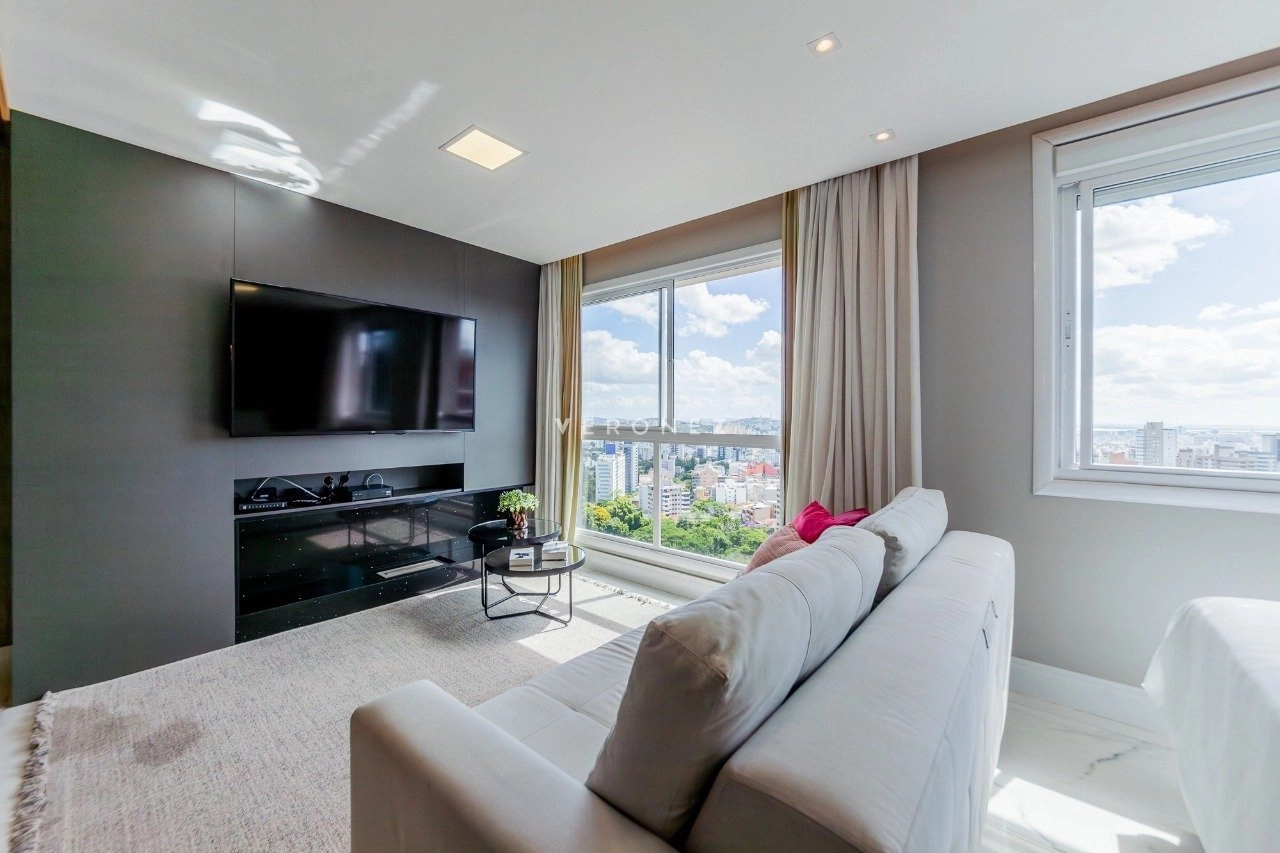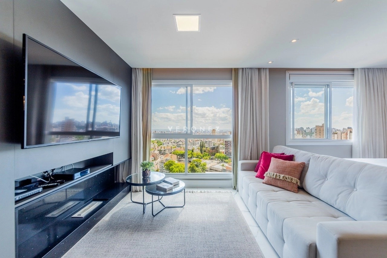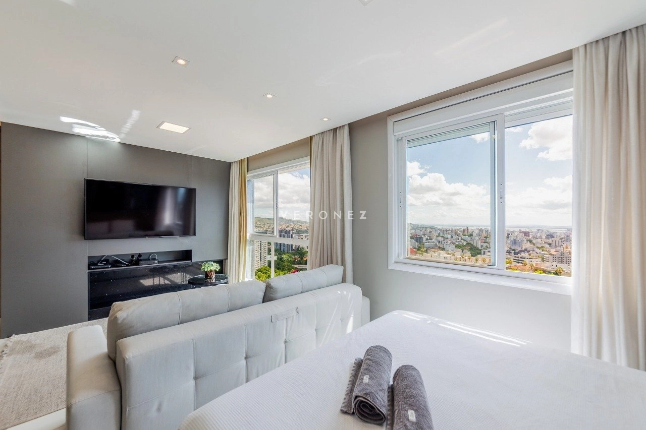 Em andar alto, será vendido mobiliado. Com uma excelente vista para a cidade e para o Rio Guaíba. Ainda conta com cozinha completa, com churrasqueira, e splits instalados. Ainda conta com 1 vaga rotativa.