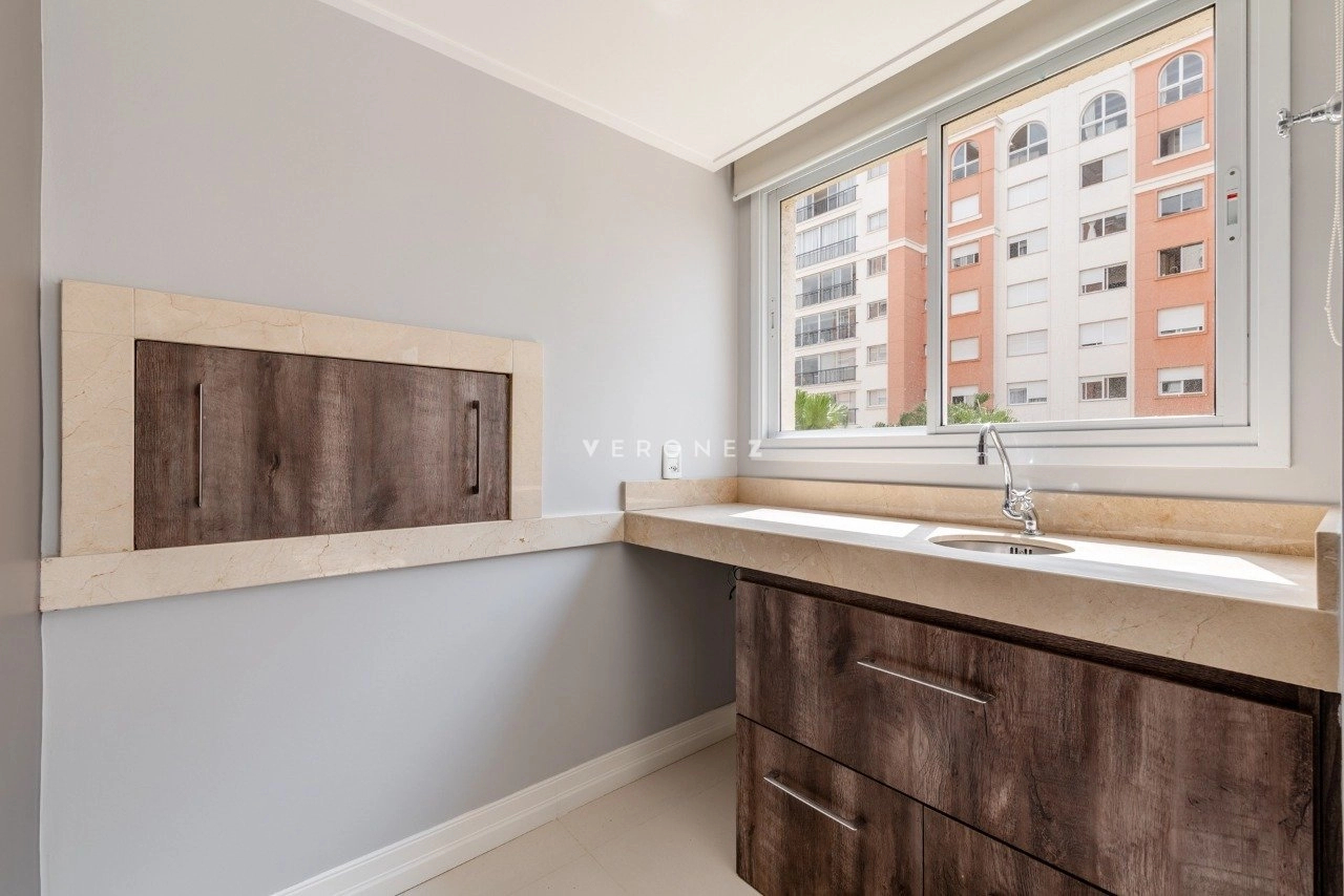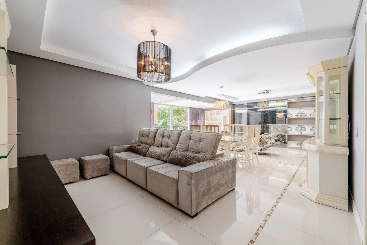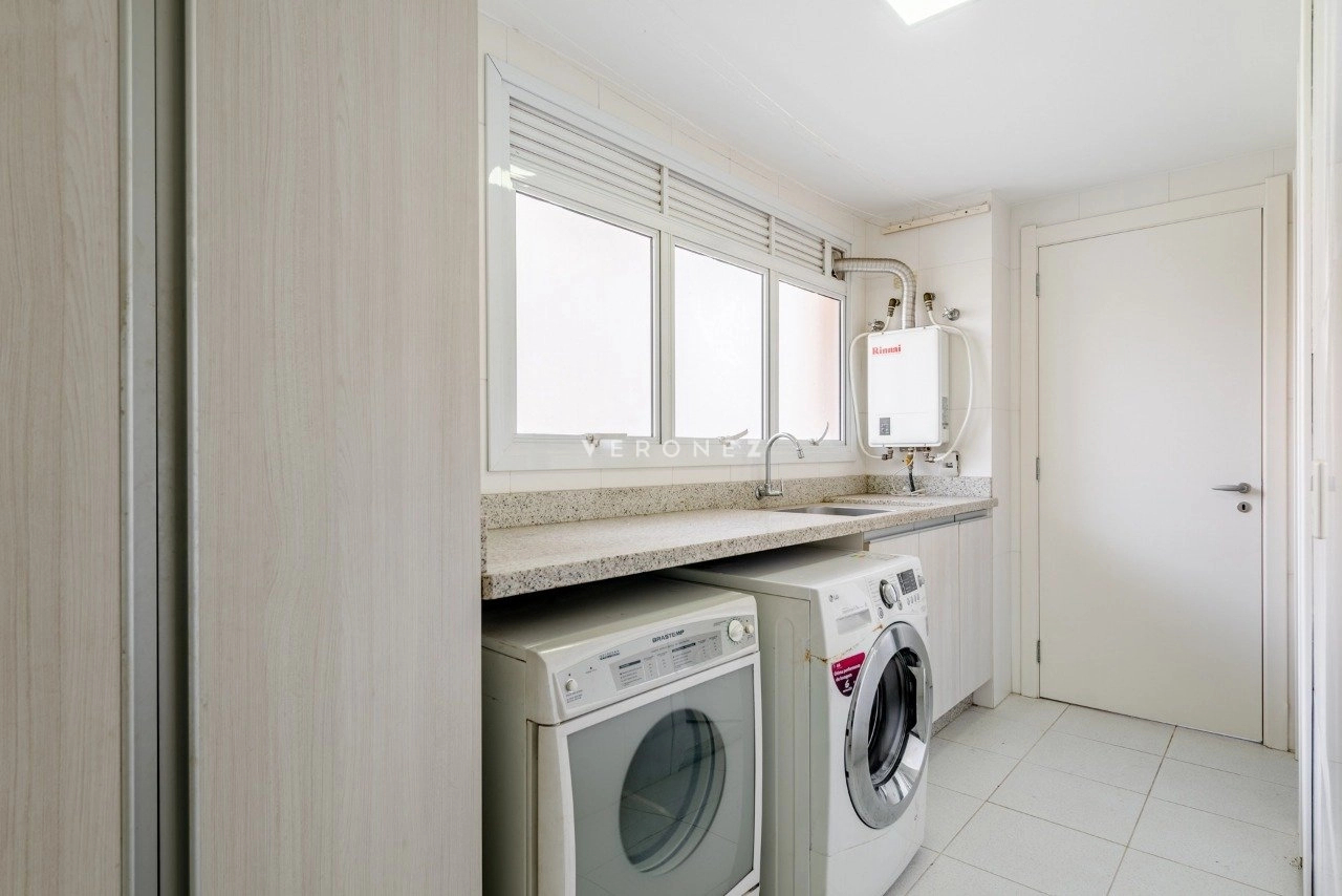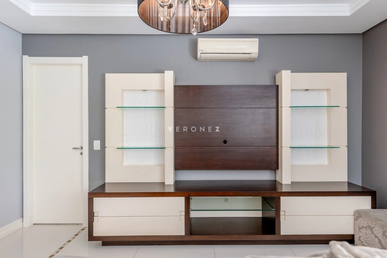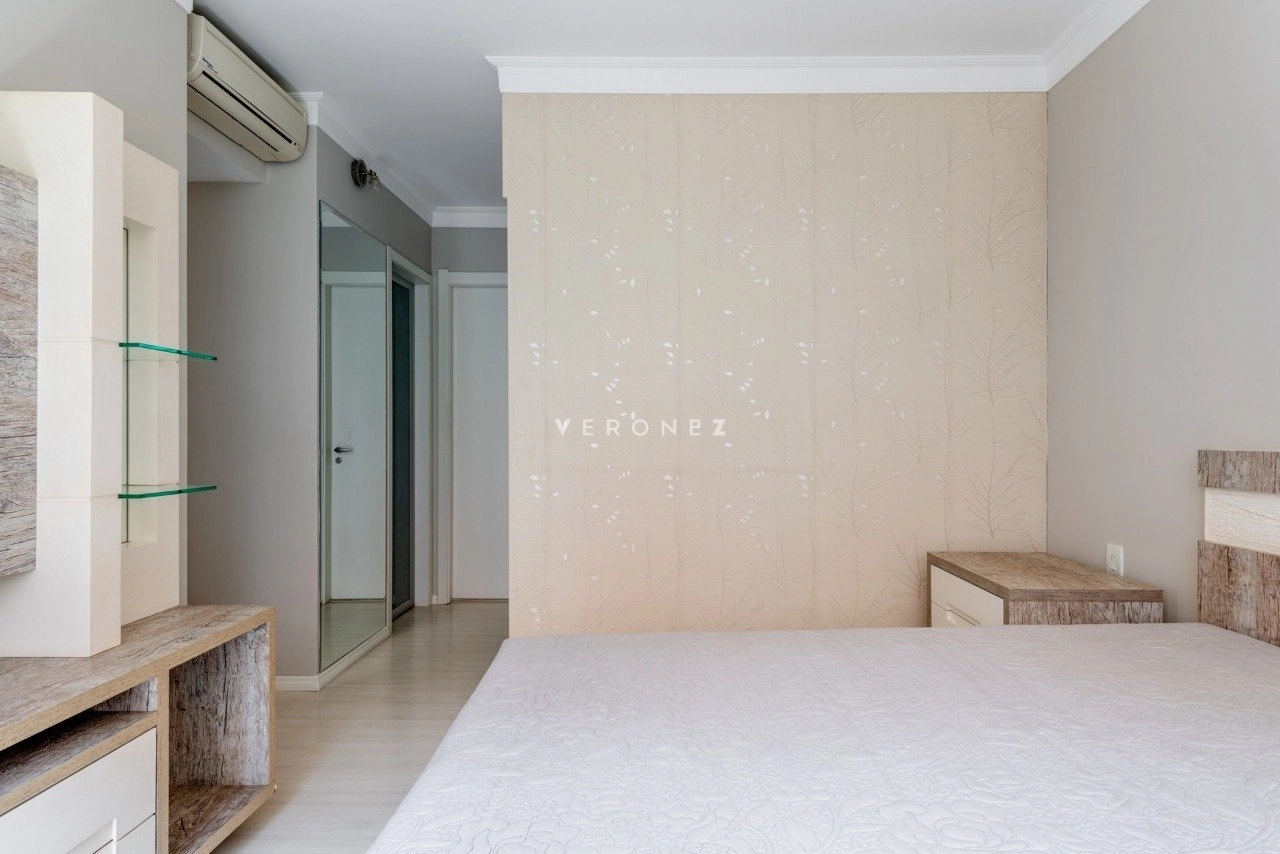 Apartamento mobiliado com 3 suítes com armários e splits, sendo a suíte máster com 2 closets e banheiro com hidromassagem, living para 3 ambientes com lareira, churrasqueira, sofá, poltronas, mesa de jantar e lavabo, cozinha montada com armários, cooktop, geladeira, forno elétrico e mesa com banquetas, área de serviço com tanque, aquecedor de passagem, máquina lava e seca, despensa e banheiro auxiliar, 157m² de área privativa, 3 vagas de garagem sendo 1 dupla e 1 simples. Condomínio com infraestrutura completa com portaria 24h, piscina, churrasqueira, espaço gourmet, academia, brinquedoteca, quadra poliesportiva, piscina adulto e infantil, aquecida, playground, salão de jogos, salão de festas e área verde.