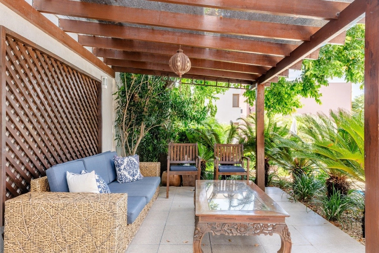 A área externa é um grande diferencial: pátio com piscina, jardim com pergolado e solarium na fachada, proporcionando diferentes ambientes para lazer, descanso e convivência ao ar livre.
