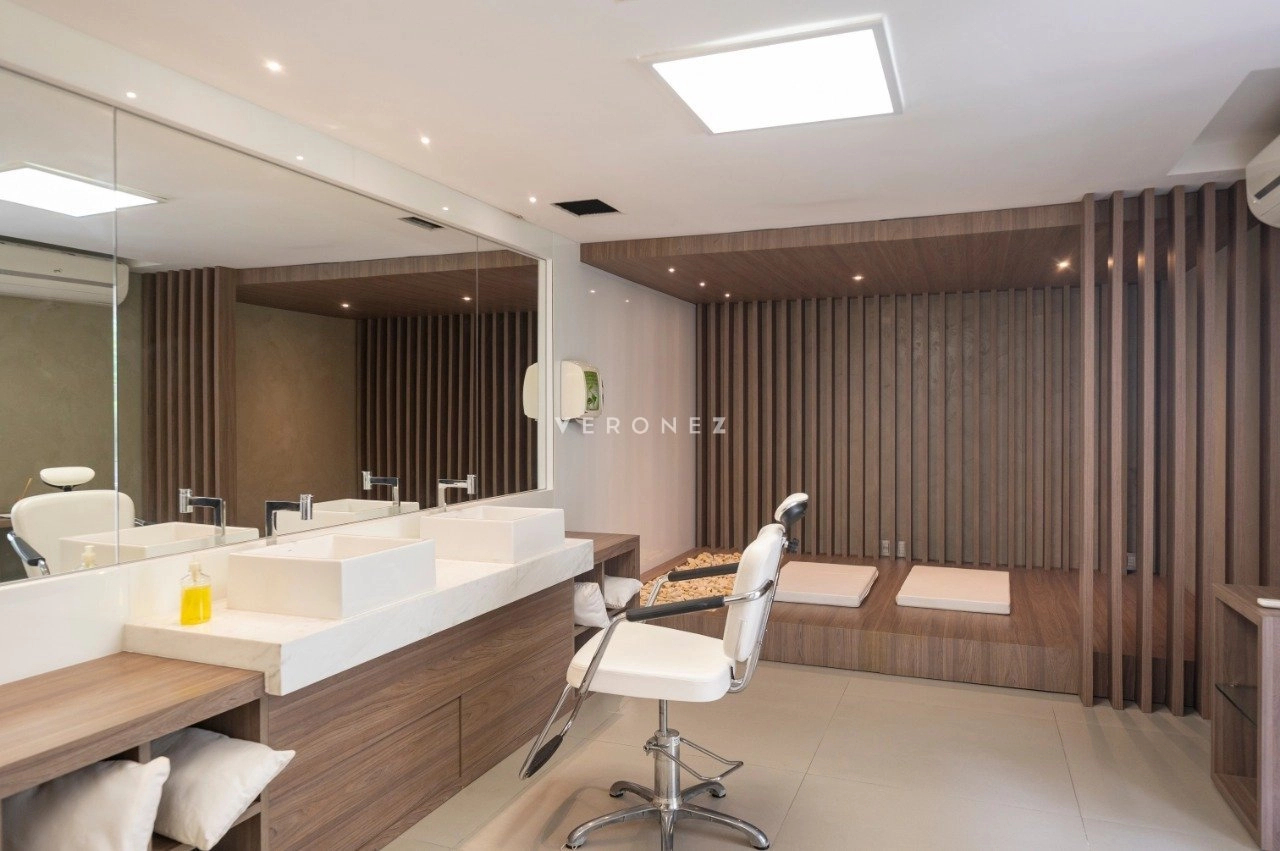 A infraestrutura do condomínio inclui piscina, academia, spa, área gourmet, salão de festas, salas de reuniões e lavanderia.