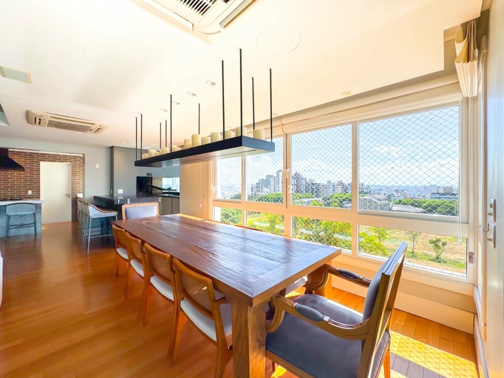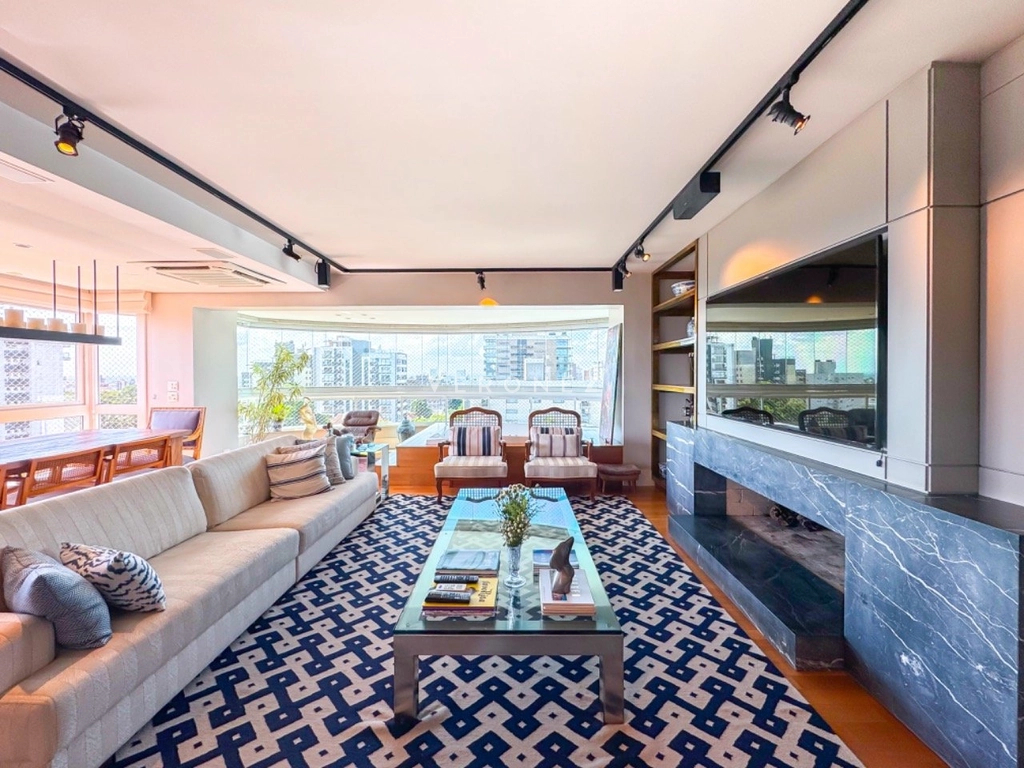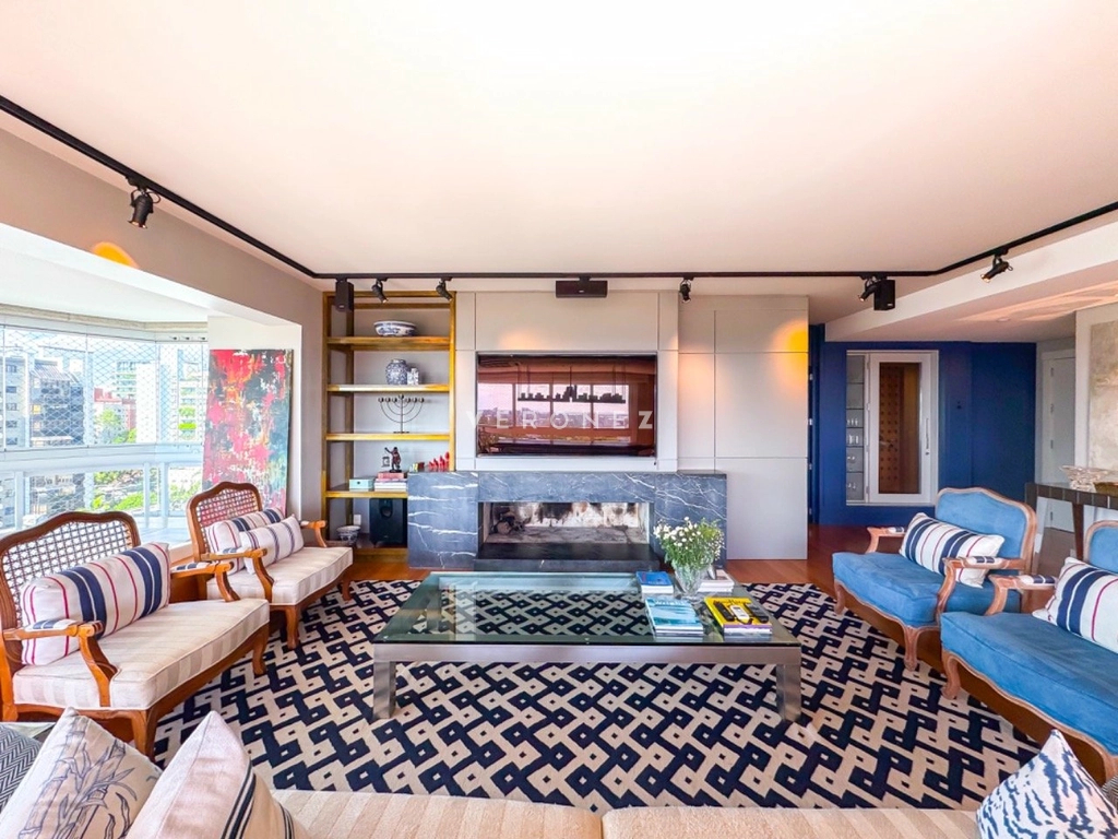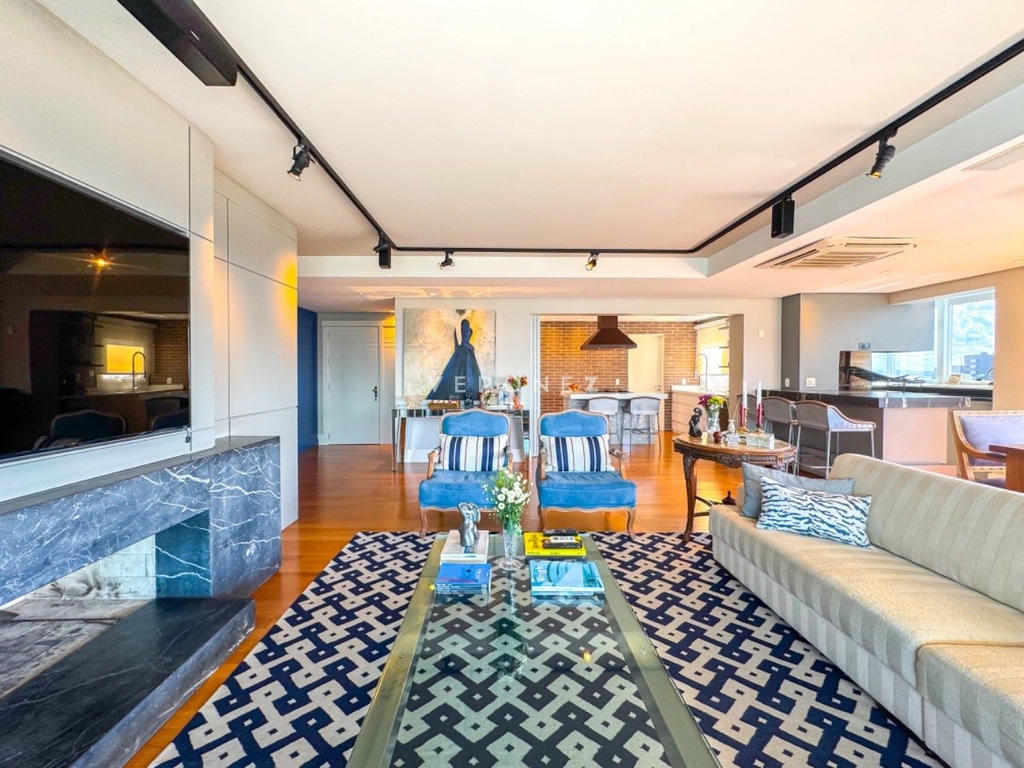 Sofisticação define este maravilhoso apartamento finamente decorado e mobilado pro arquiteto renomado. Imóvel possui 3 suítes, transformado em 2 suítes, sendo uma master com closet, de fácil reversão. Amplo living para 3 ambientes, andar alto com vista deslumbrante, hall de entrada privativo, elevador codificado, piso em madeira natural, projeto de iluminação em todos os ambientes , sacada, lavabo ,lareira, gourmet e Parilla Uruguaia com uma linda bancada, ampla cozinha planejada e integrada com todos eletrodomésticos, além de uma lavanderia completa. Também possui dependência completa. 3 vagas cobertas com depósito Condomínio com toda infraestrutura, gerador próprio, salão de festas com churrasqueiras, pub, espaço gourmet, 2 pergolados com fornos de pizza e churrasqueiras, piscinas térmica e aquecida, piscina infantil, quadra de tênis e quadra poliesportiva, playground, sala de cinema adulto e infantil, espaço teen, espaço fitness, spa, sauna, espaço para cachorros, porteiro eletrônico, vestiário para funcionários e portaria 24 horas. Localização privilegiada. Preço e disponibilidade do imóvel sujeitos a alteração sem aviso prévio.