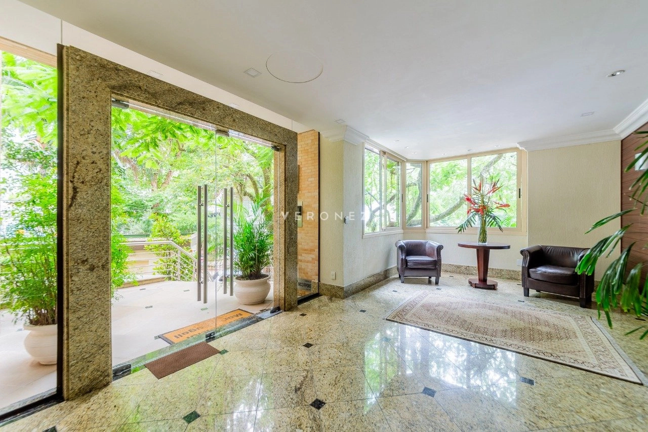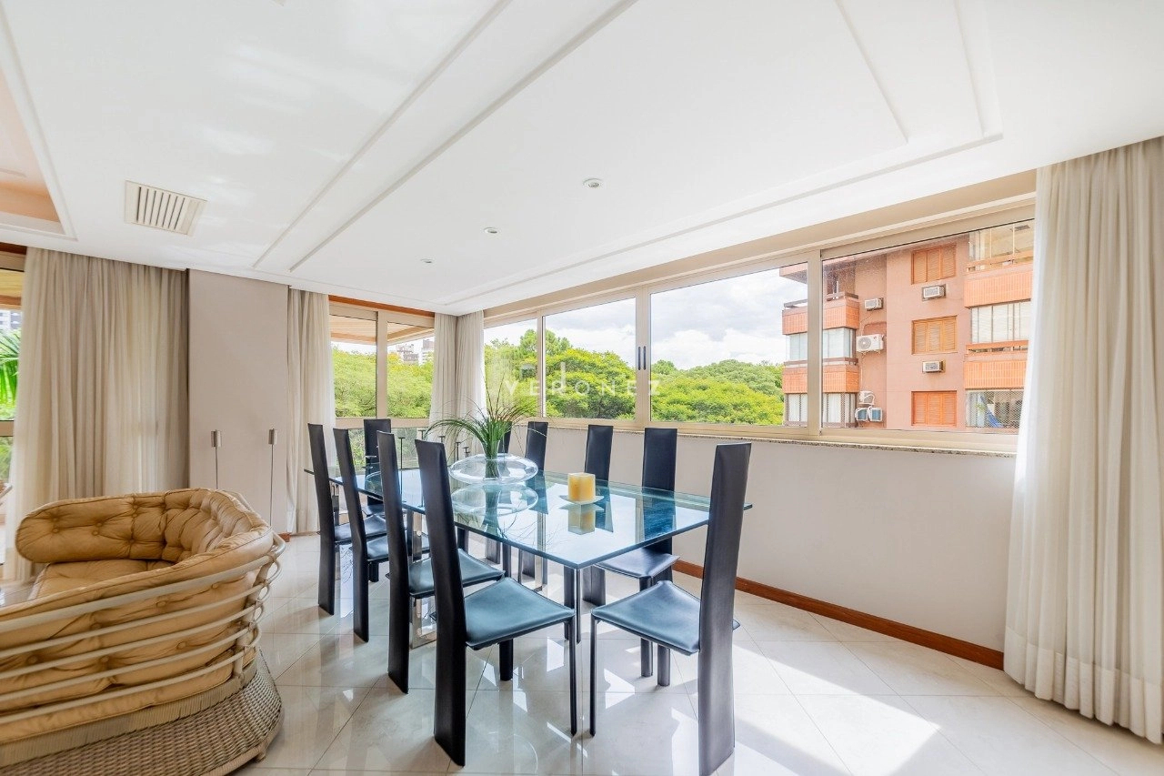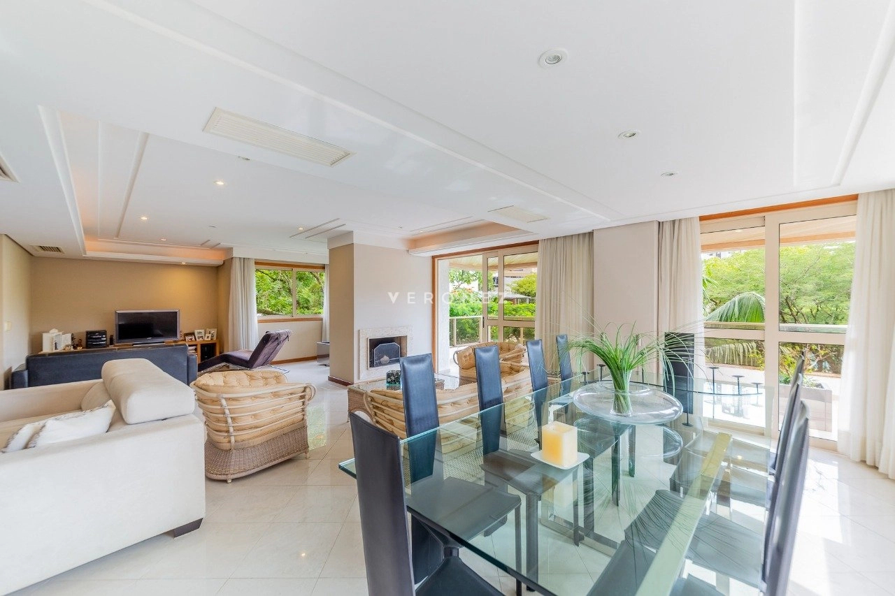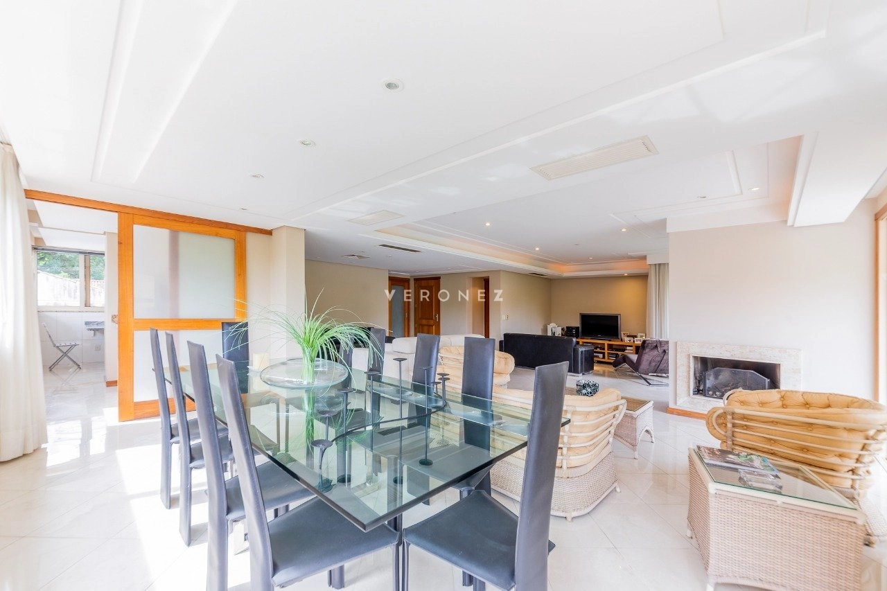 Apartamento semi mobiliado de 220 m², 3 suítes, sendo 1 master com hidromassagem, living para 4 ambientes, lareira, lavabo, área gourmet com churrasqueira, copa-cozinha, área de serviço separada, dependência de empregada, despensa e 4 vagas de garagem. O apartamento conta ainda com ar central e a posição solar privilegiada.