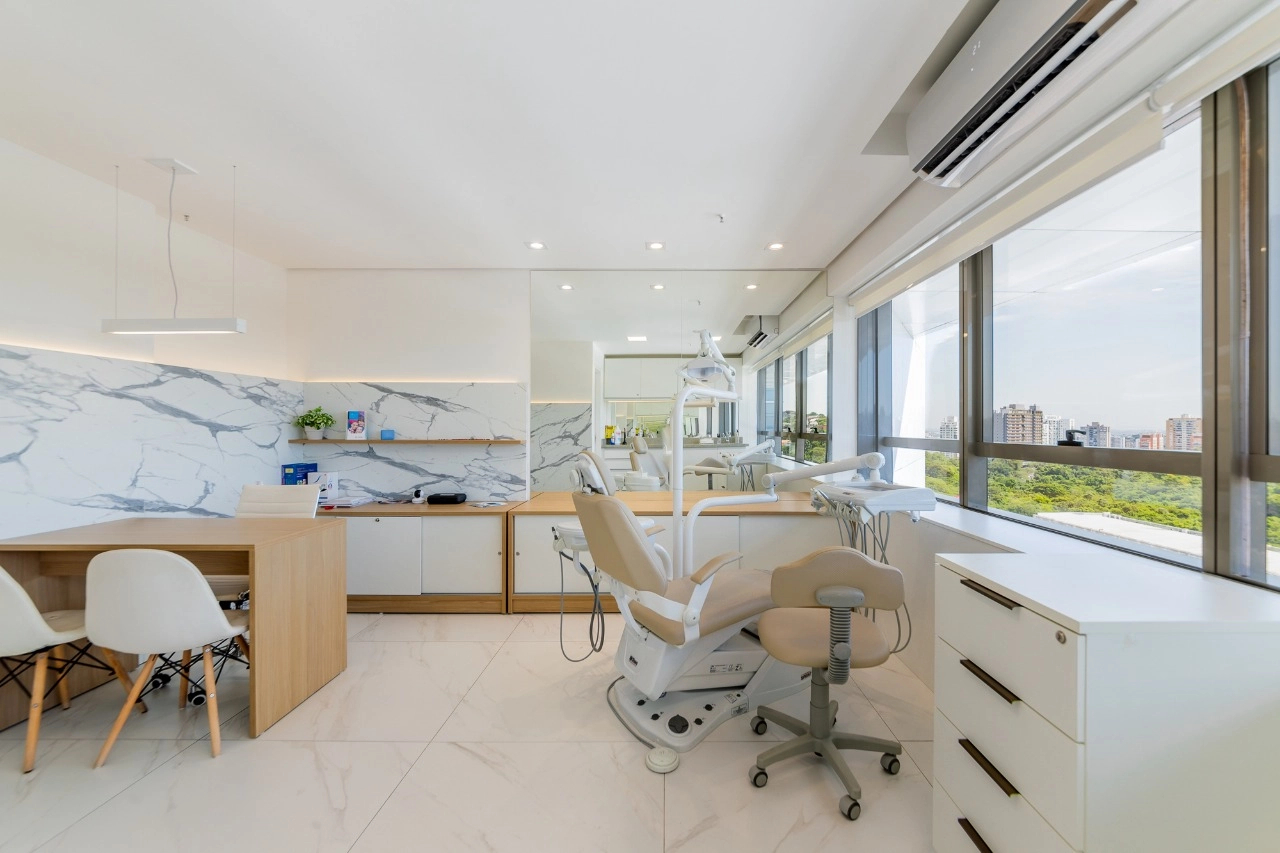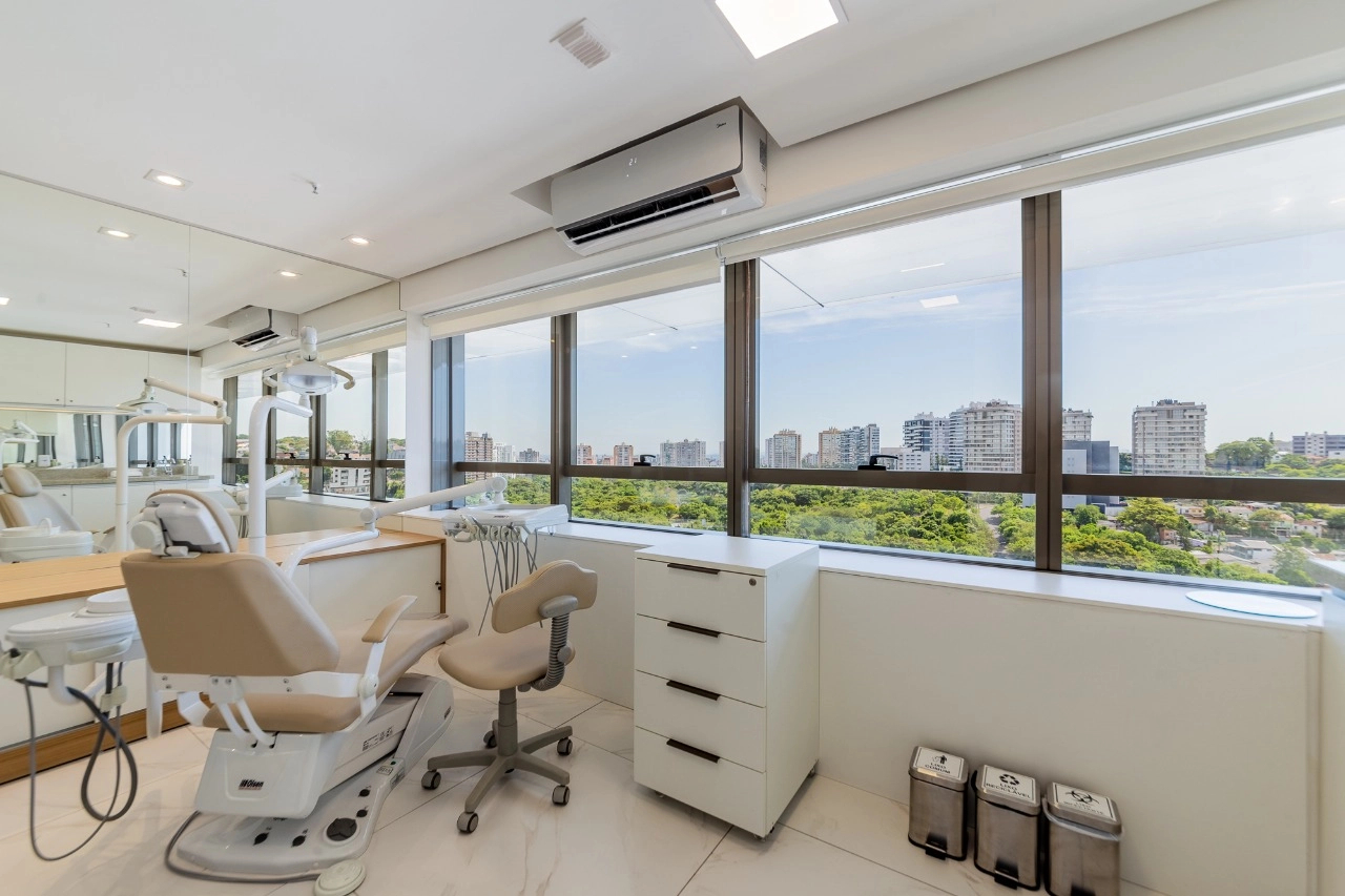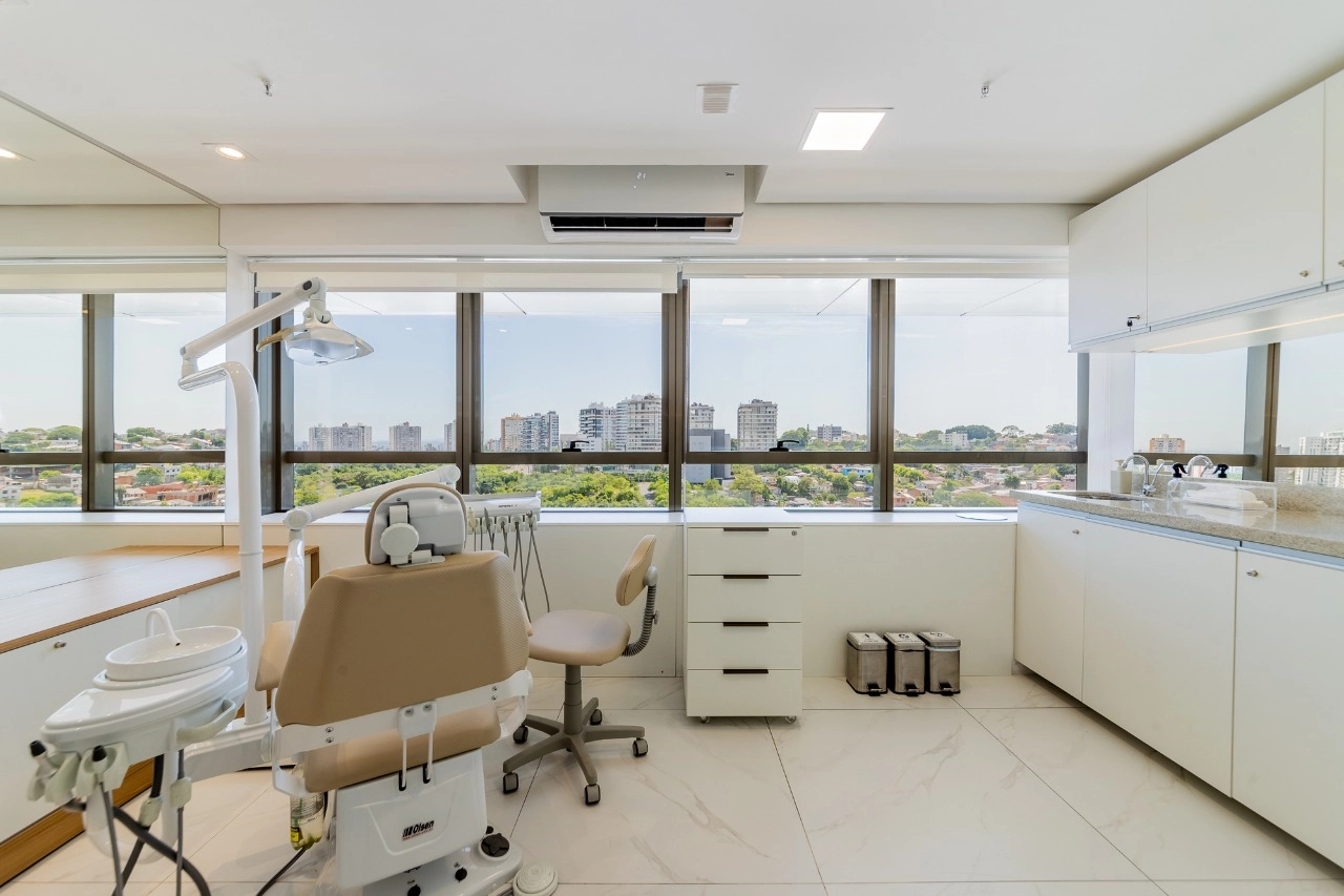 Sala comercial à venda, totalmente mobiliada e equipada para clínica odontológica, com vista privilegiada para o Parque Germânia. A sala possui 37 m² e está pronta para uso, contando com recepção, sala de atendimento, lavabo e sala de esterilização. Os móveis e equipamentos odontóligicos fixos permanecem no imóvel. Além disso, inclui uma vaga de garagem coberta e escriturada.
