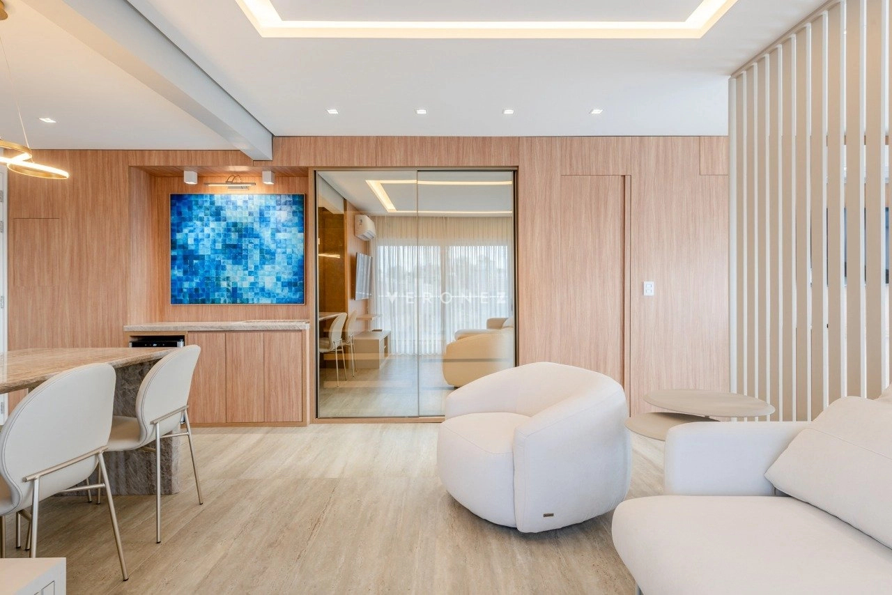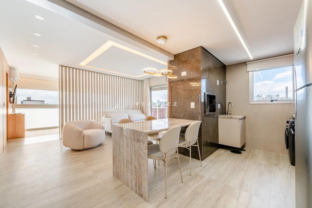 Totalmente mobiliado e decorado por arquiteta, o imóvel está pronto para morar. O living é aconchegante e bem distribuído, contando com churrasqueira, além de cozinha equipada com eletrodomésticos, oferecendo funcionalidade no dia a dia.
