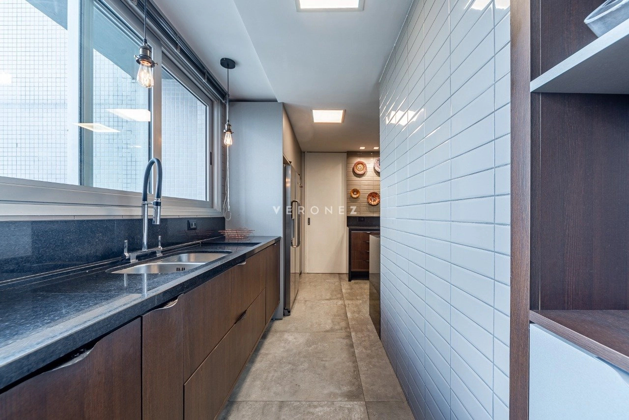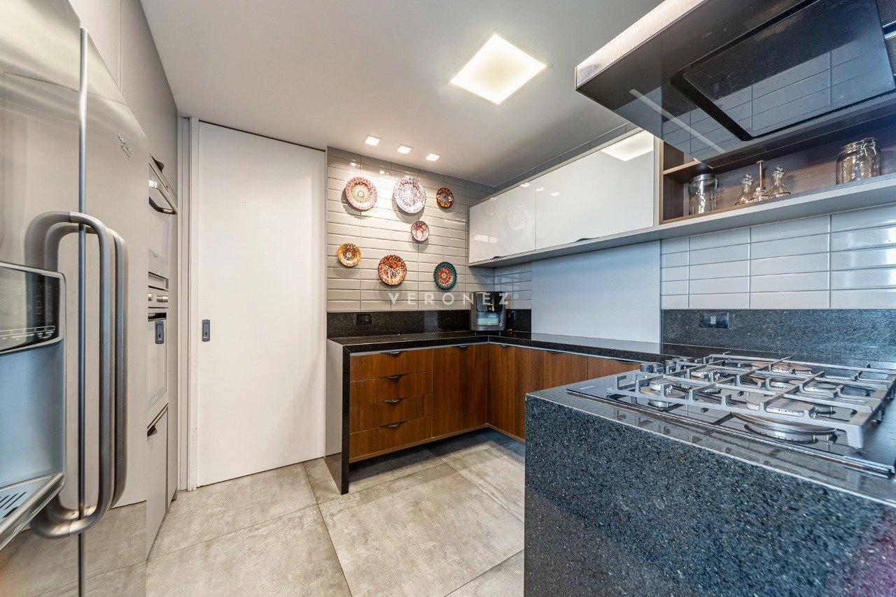 Cozinha planejada e equipada, área de serviço separada, dispensa e banheiro de empregada. Entrada de serviço separada. 3 vagas de garagem.