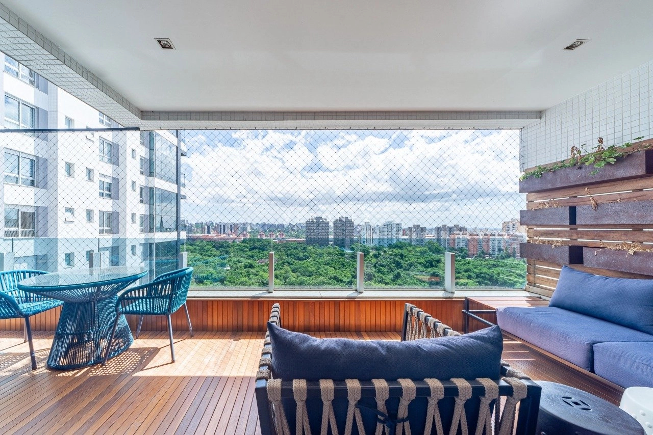 Apartamento mobiliado de 227 m², 3 suítes, sendo 1 máster com closet e hidromassagem.