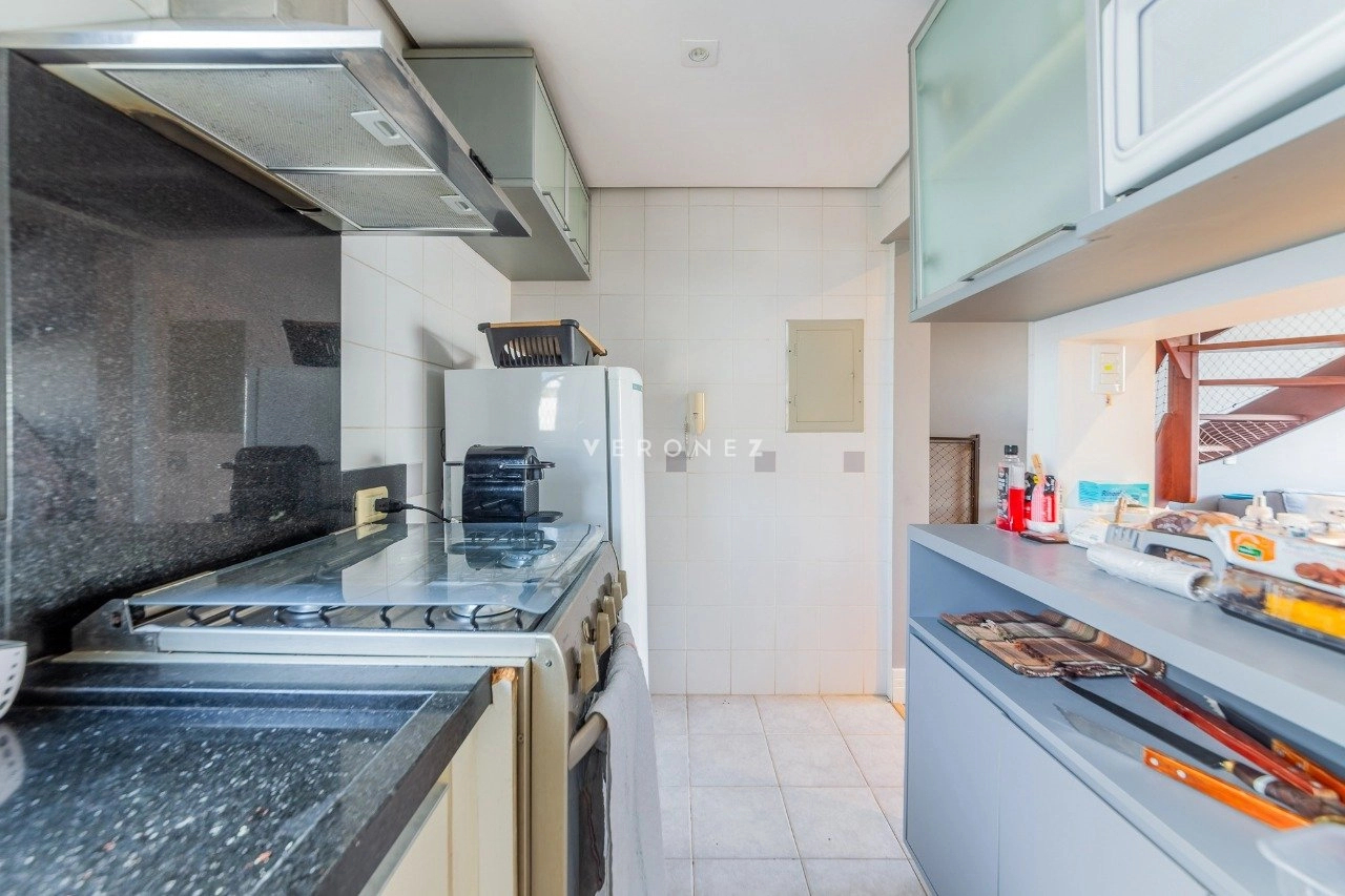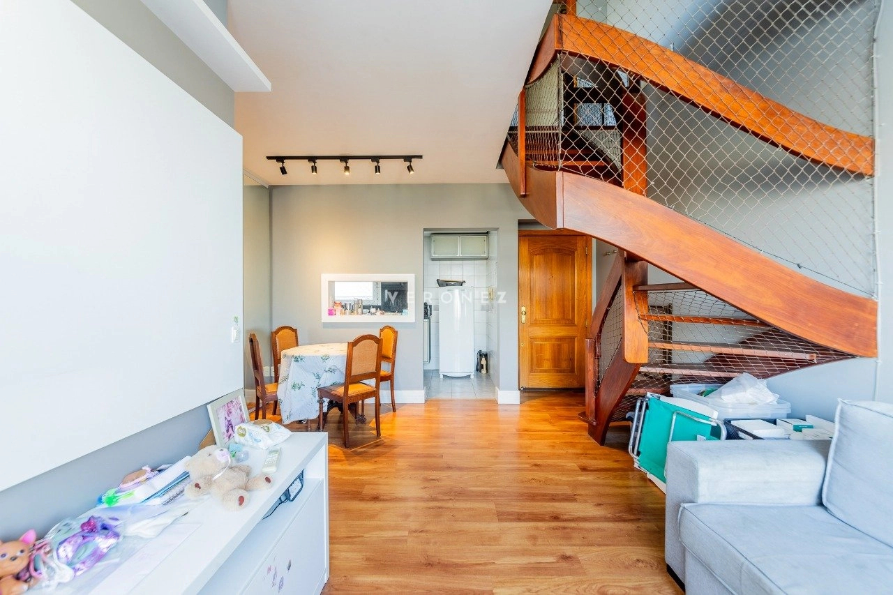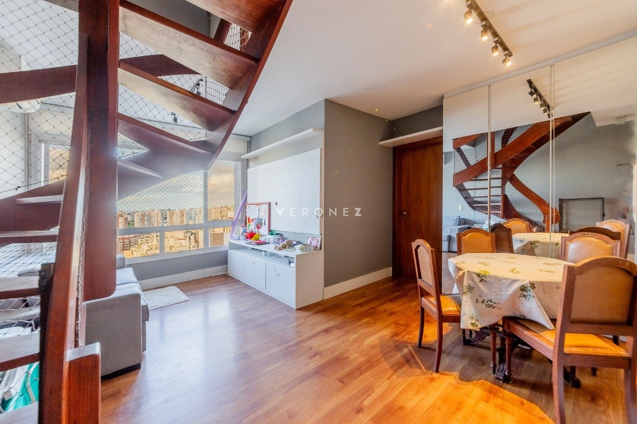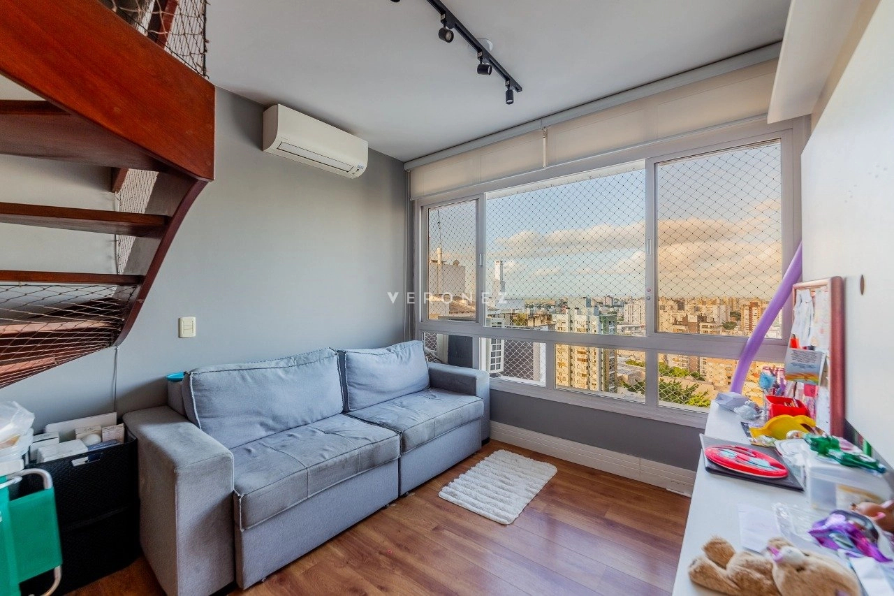Cobertura com 150 m² de área privativa, semi mobilada. No andar superior, living amplo, churrasqueira, lareira, lavabo e piscina. No andar inferior, sala com cozinha americana, área de serviço separada, 2 dormitórios, sendo 1 suíte e banheiro social. 1 vaga de garagem coberta.