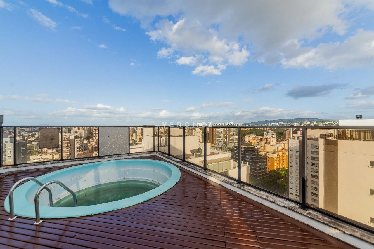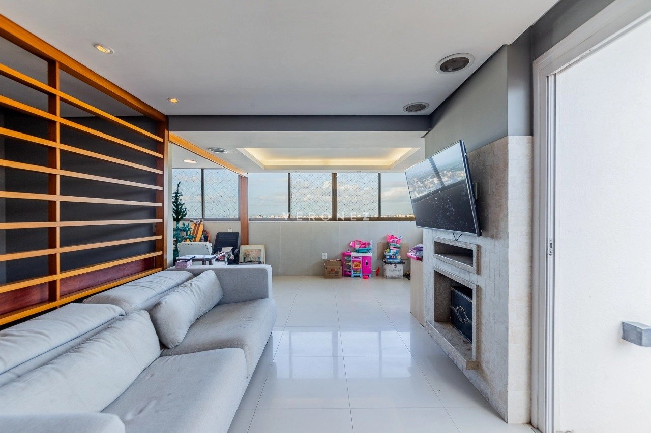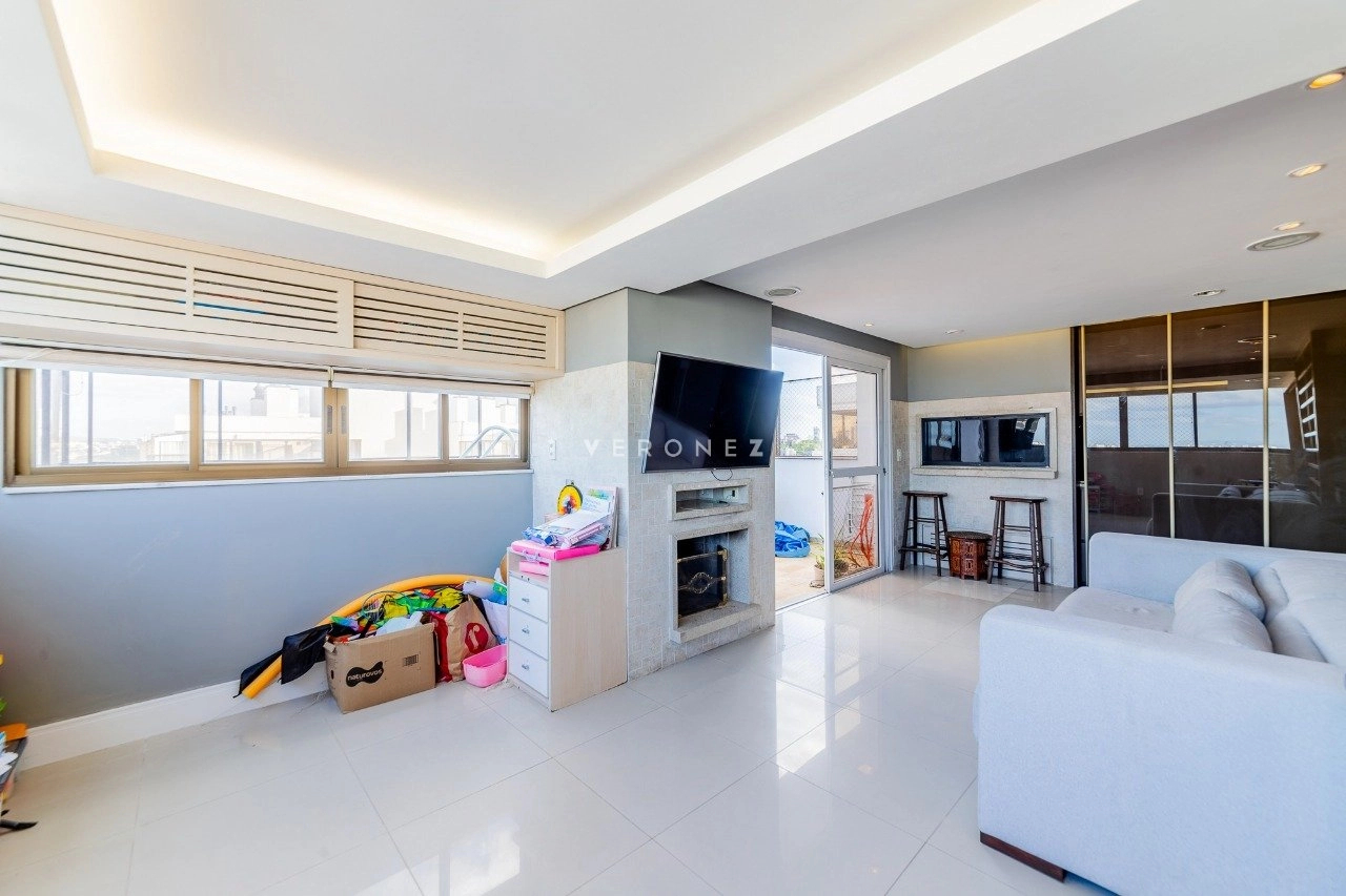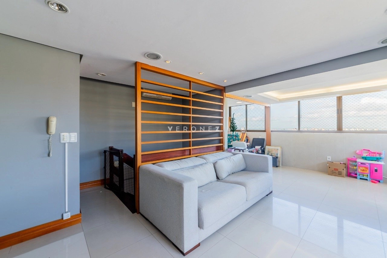 Cobertura com 150 m² de área privativa, semi mobilada. No andar superior, living amplo, churrasqueira, lareira, lavabo e piscina. No andar inferior, sala com cozinha americana, área de serviço separada, 2 dormitórios, sendo 1 suíte e banheiro social. 1 vaga de garagem coberta.