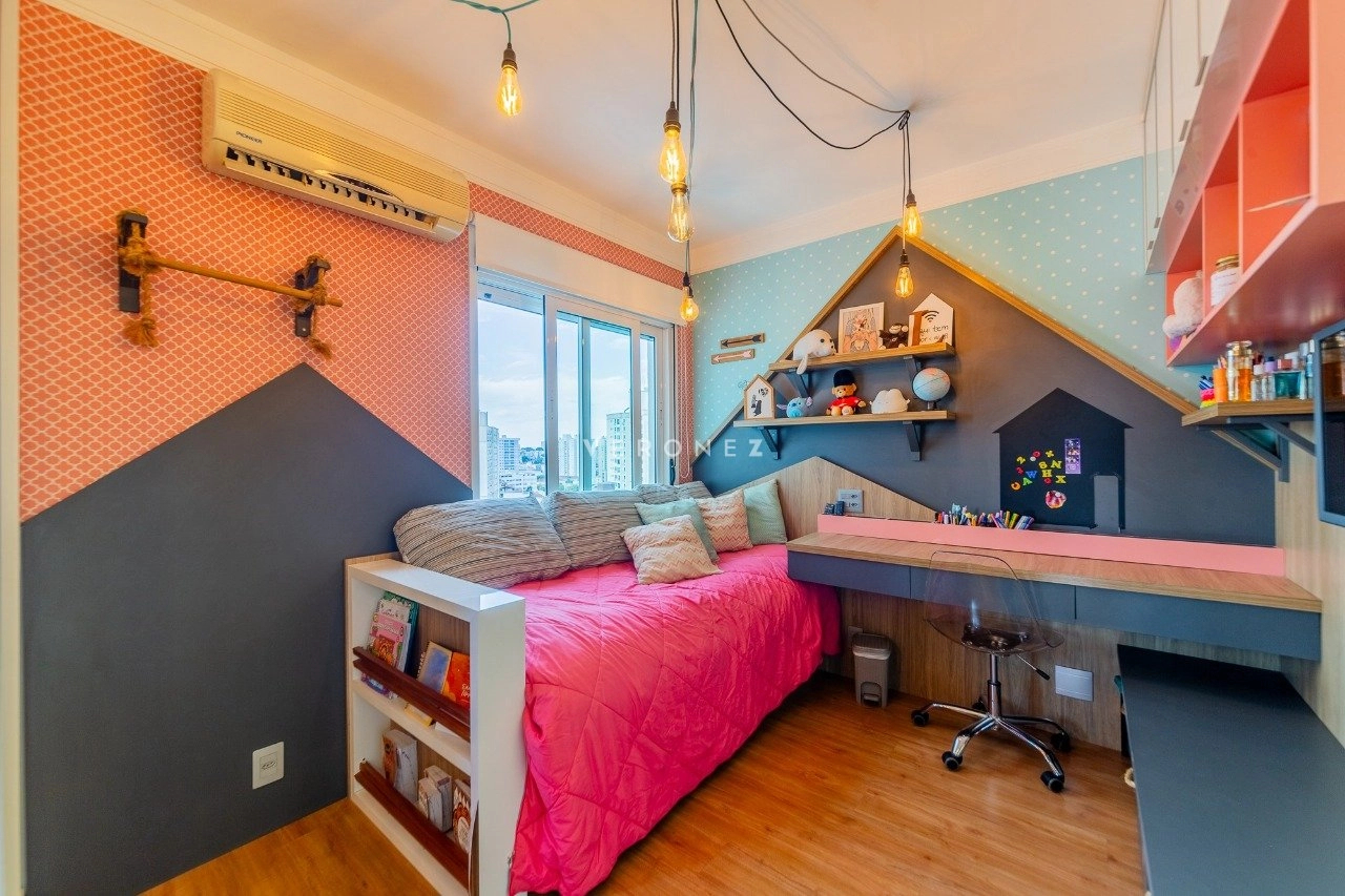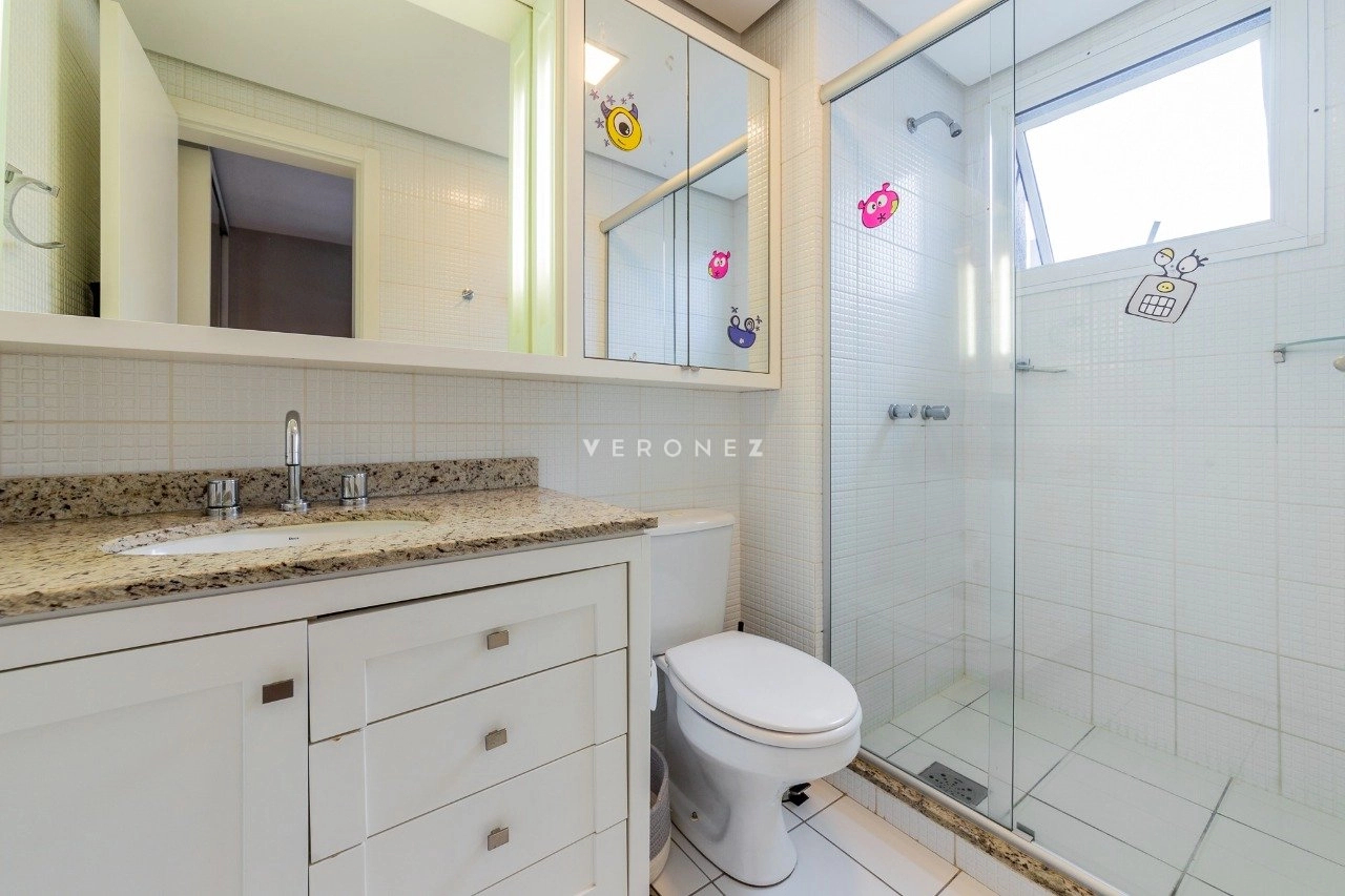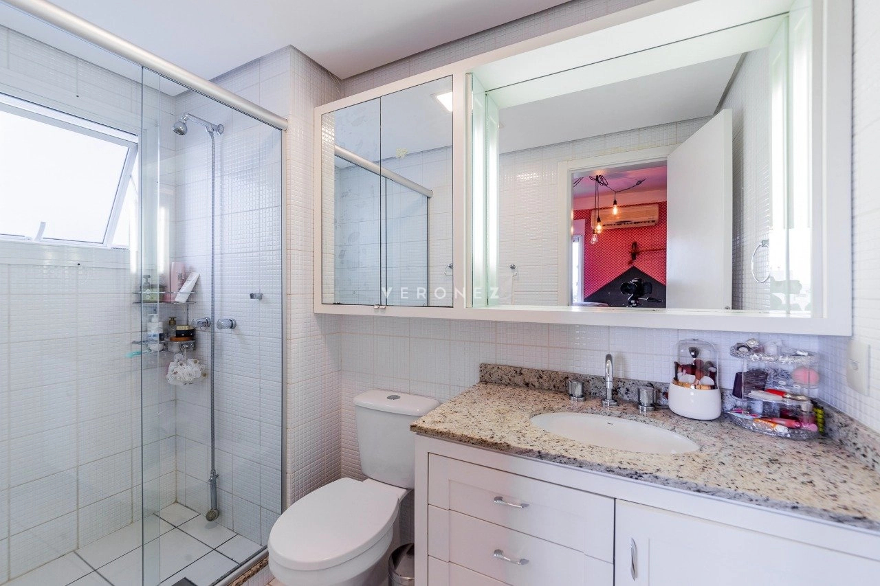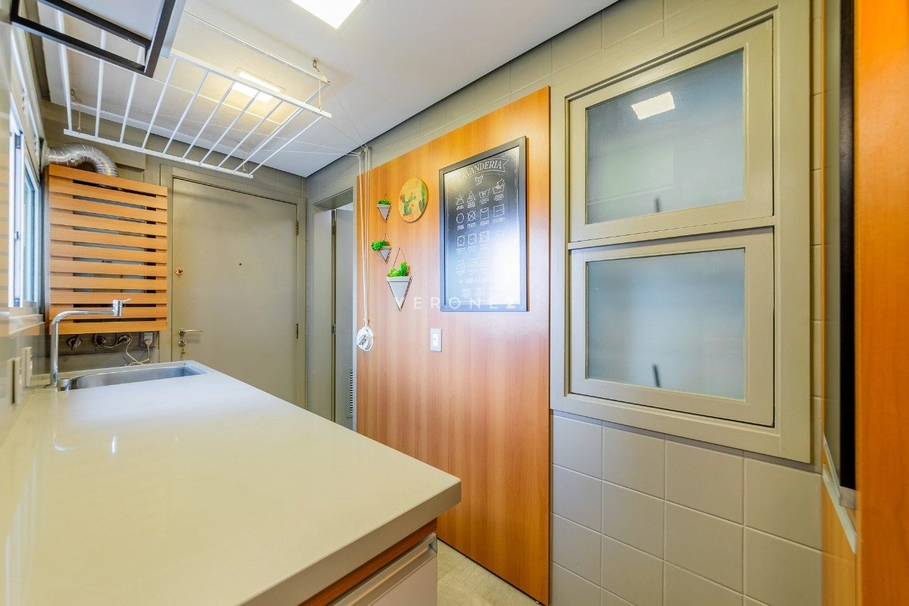 Será vendido mobiliado. O imóvel fica em andar alto, e é composto por uma sala de jantar e estar integradas, escritório, churrasqueira, lareira, lavabo, cozinha e área de serviço separada. Além das 3 suítes, é claro.