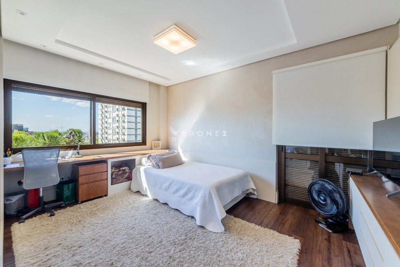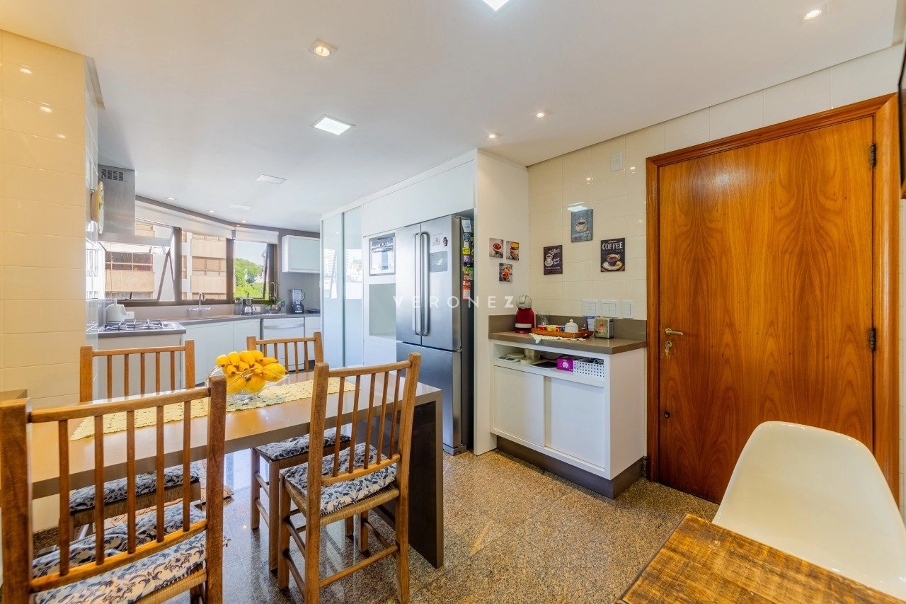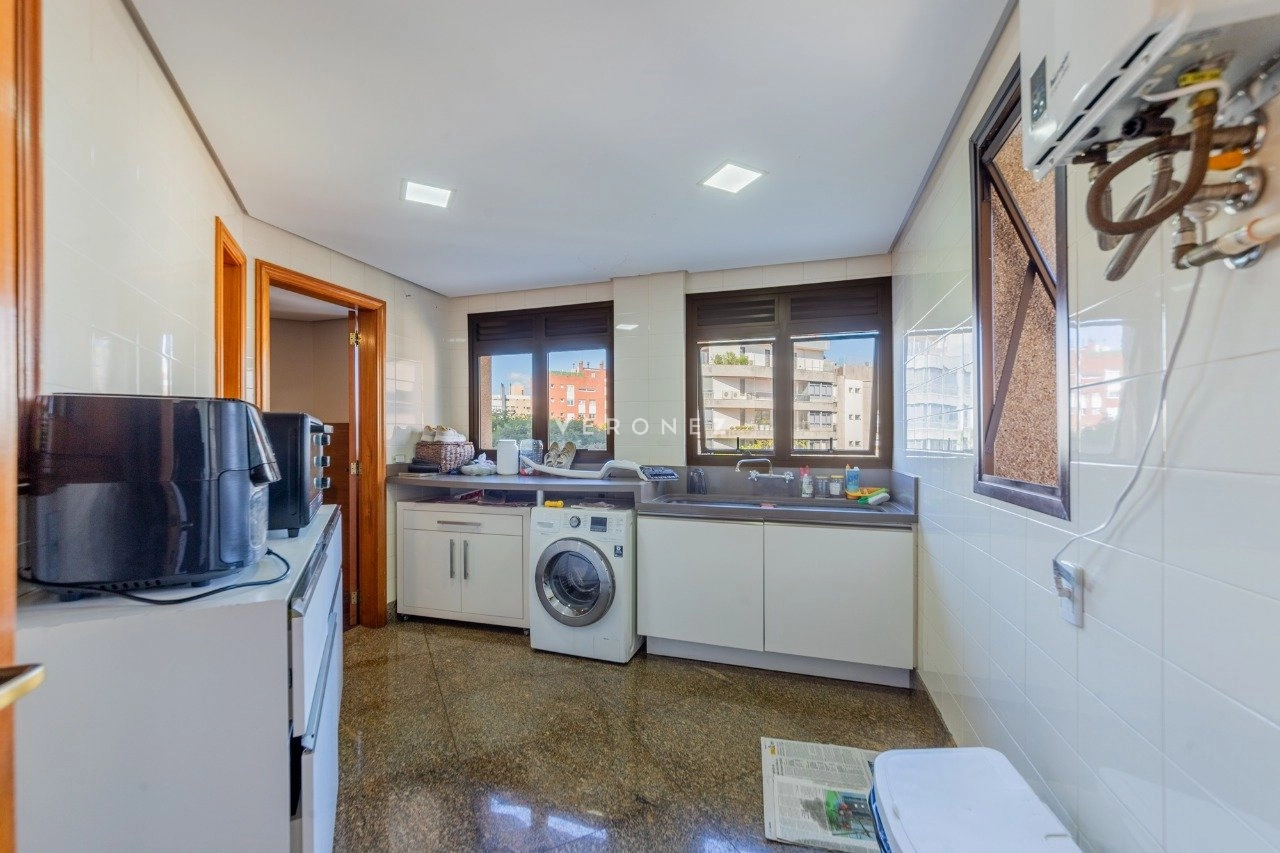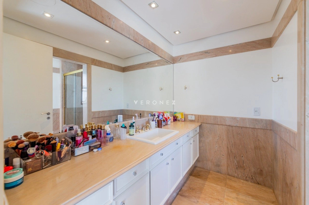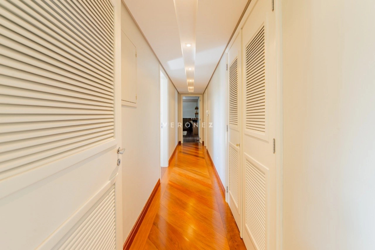 Apartamento com 374 m² privativos, mobiliado, 1 por andar, hall privativo, sala de estar e de jantar independentes, com lareira, lavabo, ampla varanda, espaço gourmet com churrasqueira, com acesso direito à varanda. Copa cozinha com um enorme espaço para panelas, lavanderia separada e dependência completa.