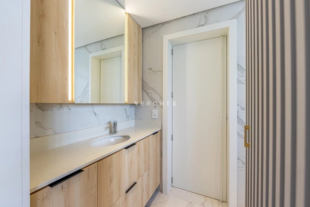 Com orientação solar norte, o apartamento recebe excelente iluminação natural ao longo do dia. Possui ainda 2 vagas de garagem.