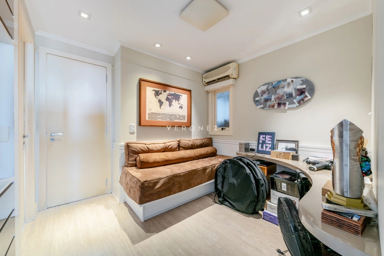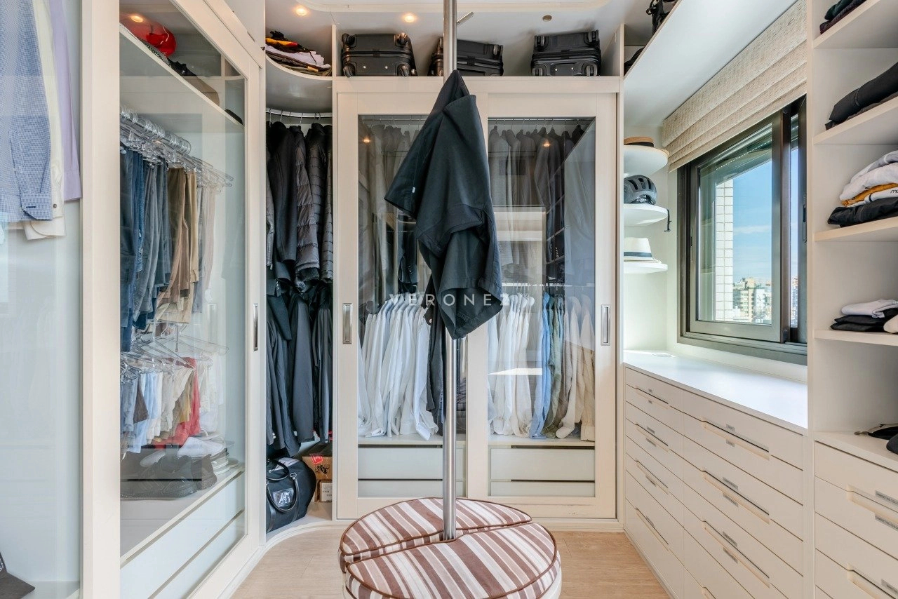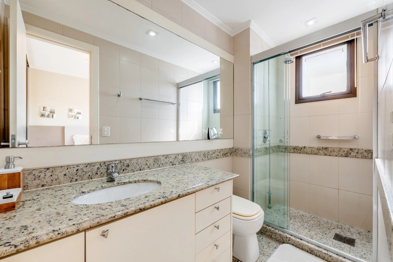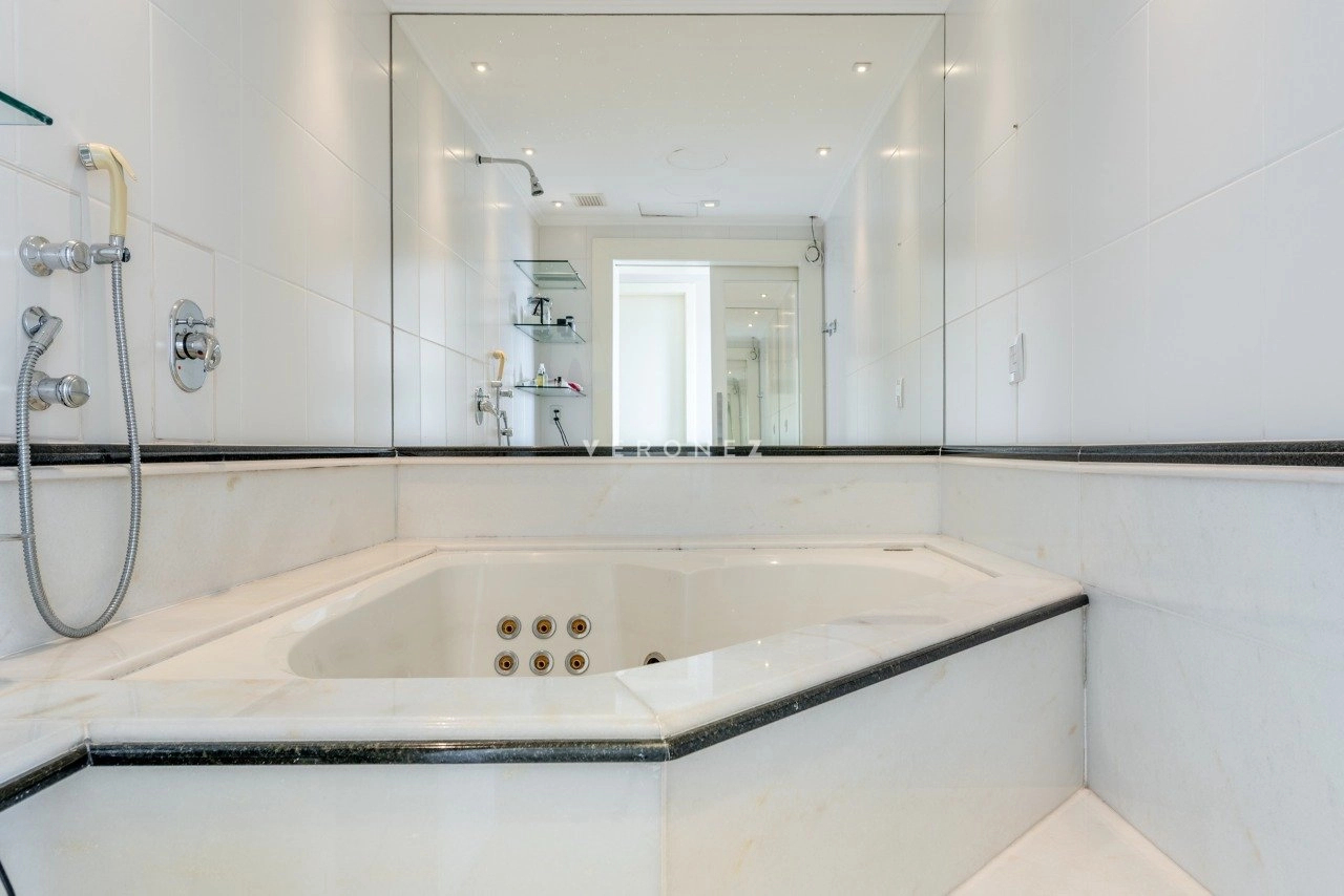 Apartamento, com 167 metros privativos, originalmente com 3 suítes, transformado em duas suítes, sendo uma delas máster, com amplo closet e espaço de relaxamento com hidromassagem.