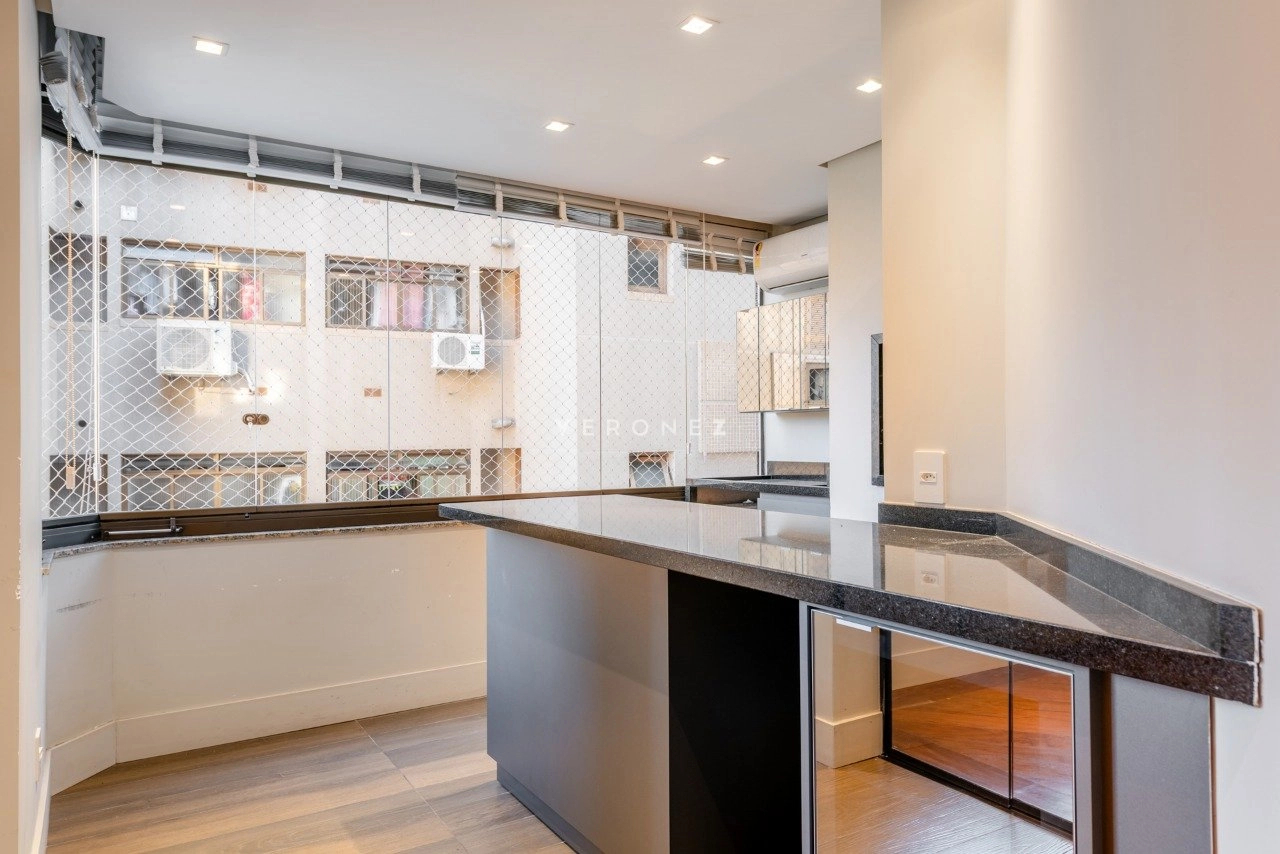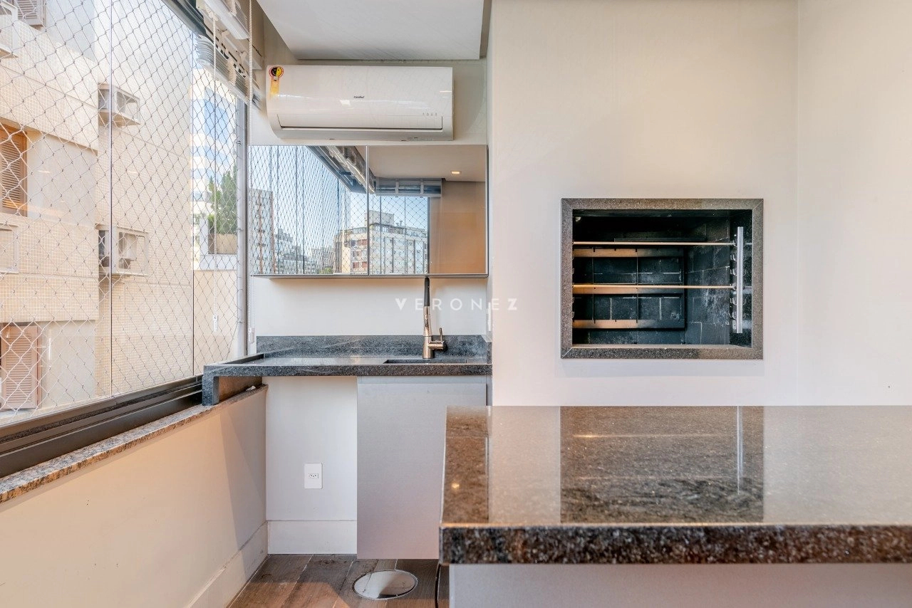 Apartamento semi mobiliado de 123 m², 3 dormitórios, sendo 1 suíte, living para 3 ambientes, lareira, lavabo, área gourmet com churrasqueira integrada ao living, cozinha, área de serviço separada, banheiro social e 2 vagas de garagem.