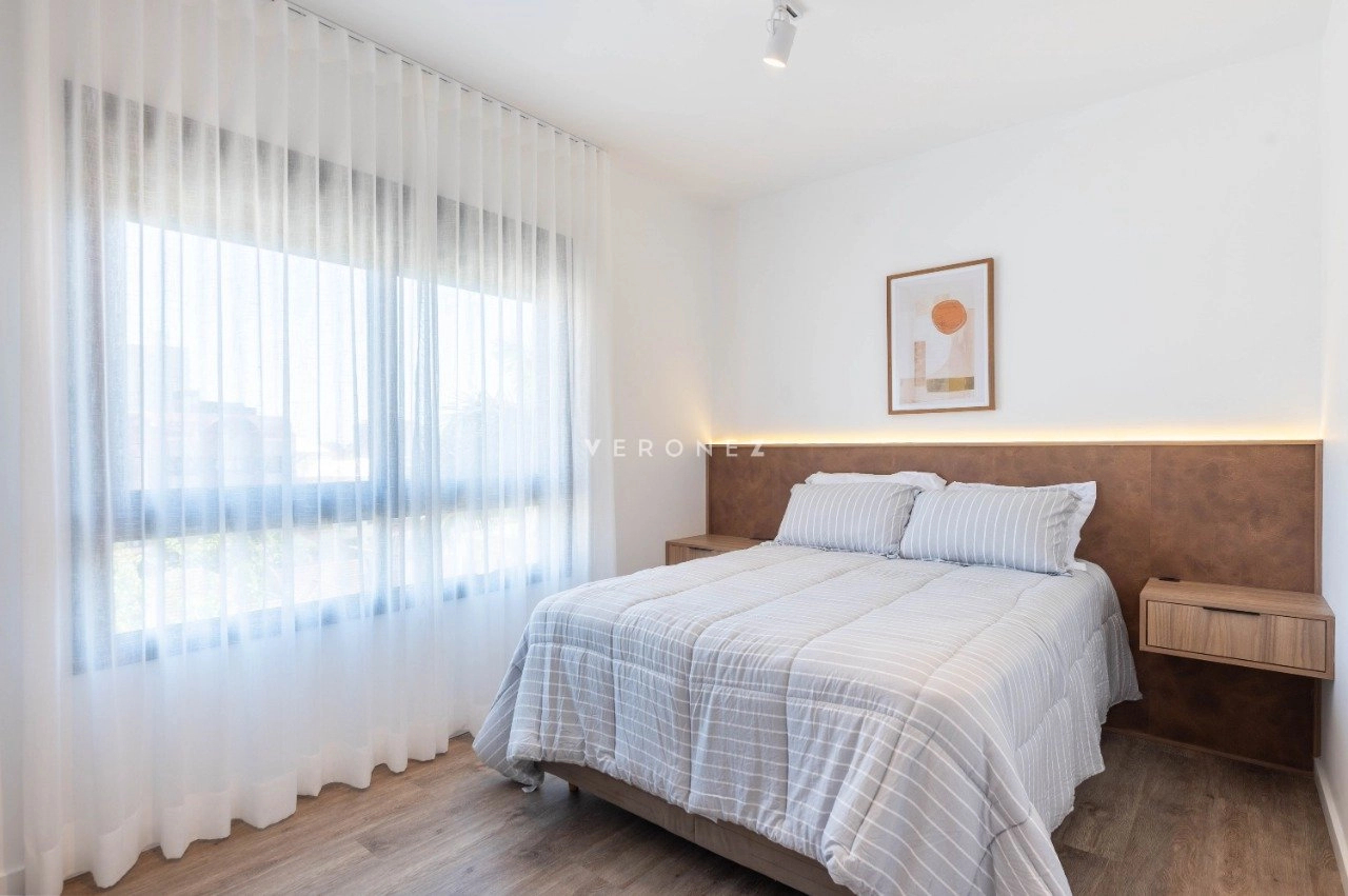 Com arquitetura moderna e acabamentos de qualidade, o edifício oferece apartamentos de 1 e 2 dormitórios, com plantas que variam de 56 m² a 63 m² privativos. Cada unidade conta com churrasqueira e cozinha americana, além de opções com suíte e garden.
