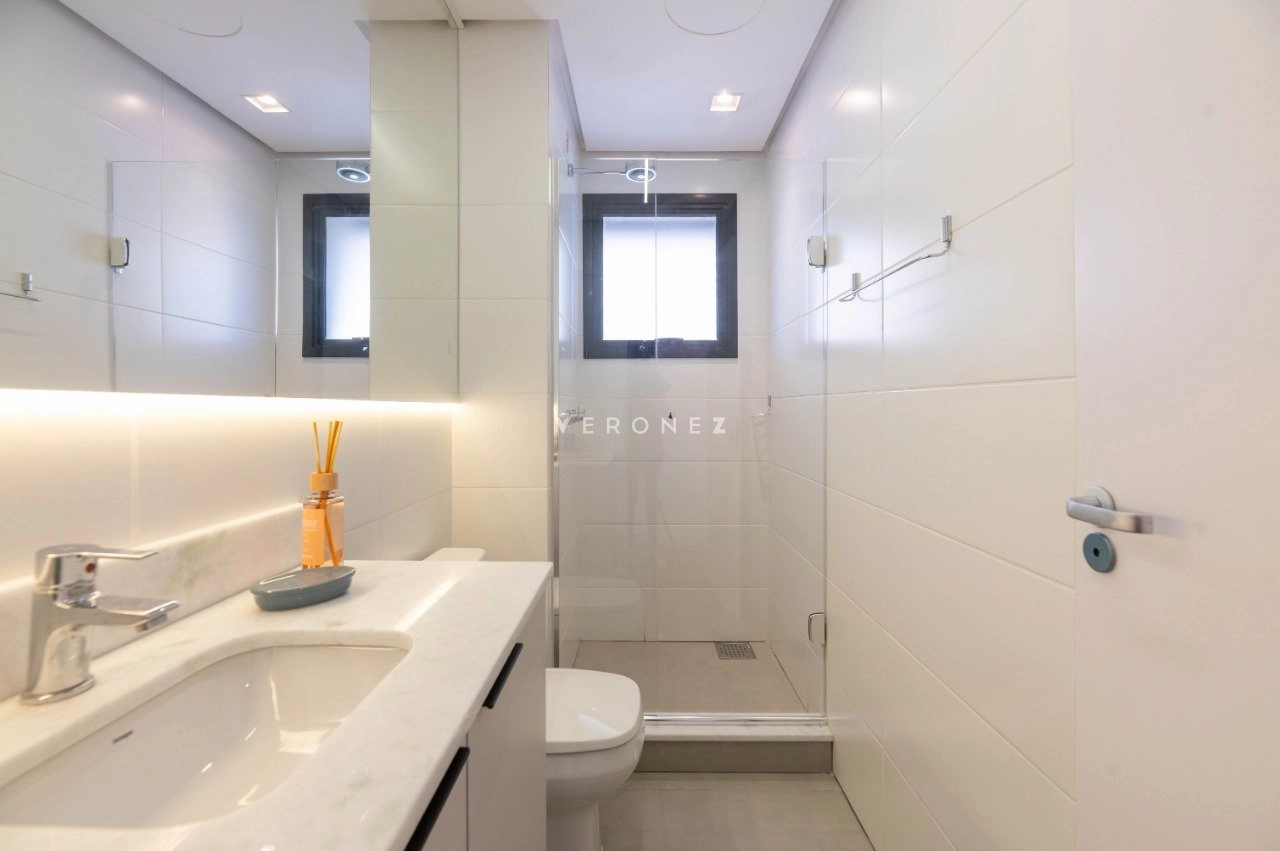 O apartamento dispõe de dois banheiros, ambos com armários.
