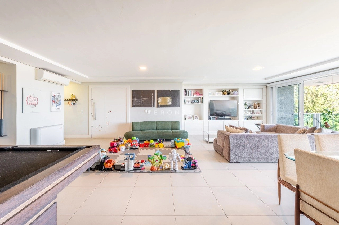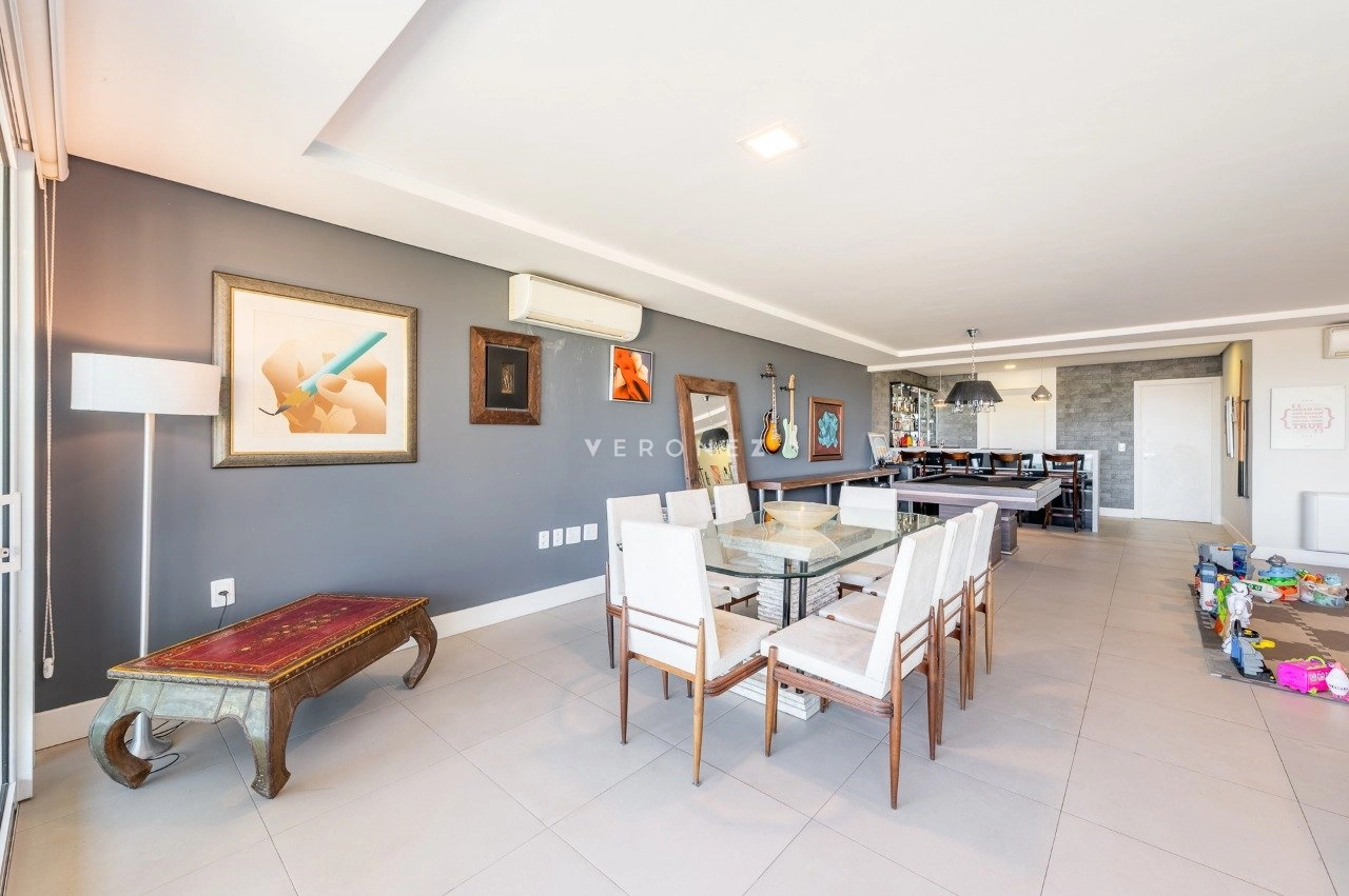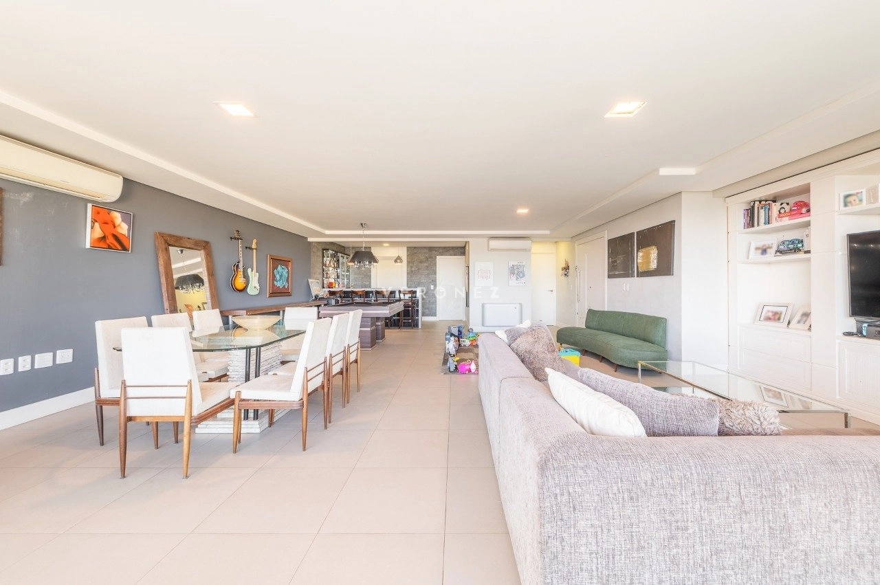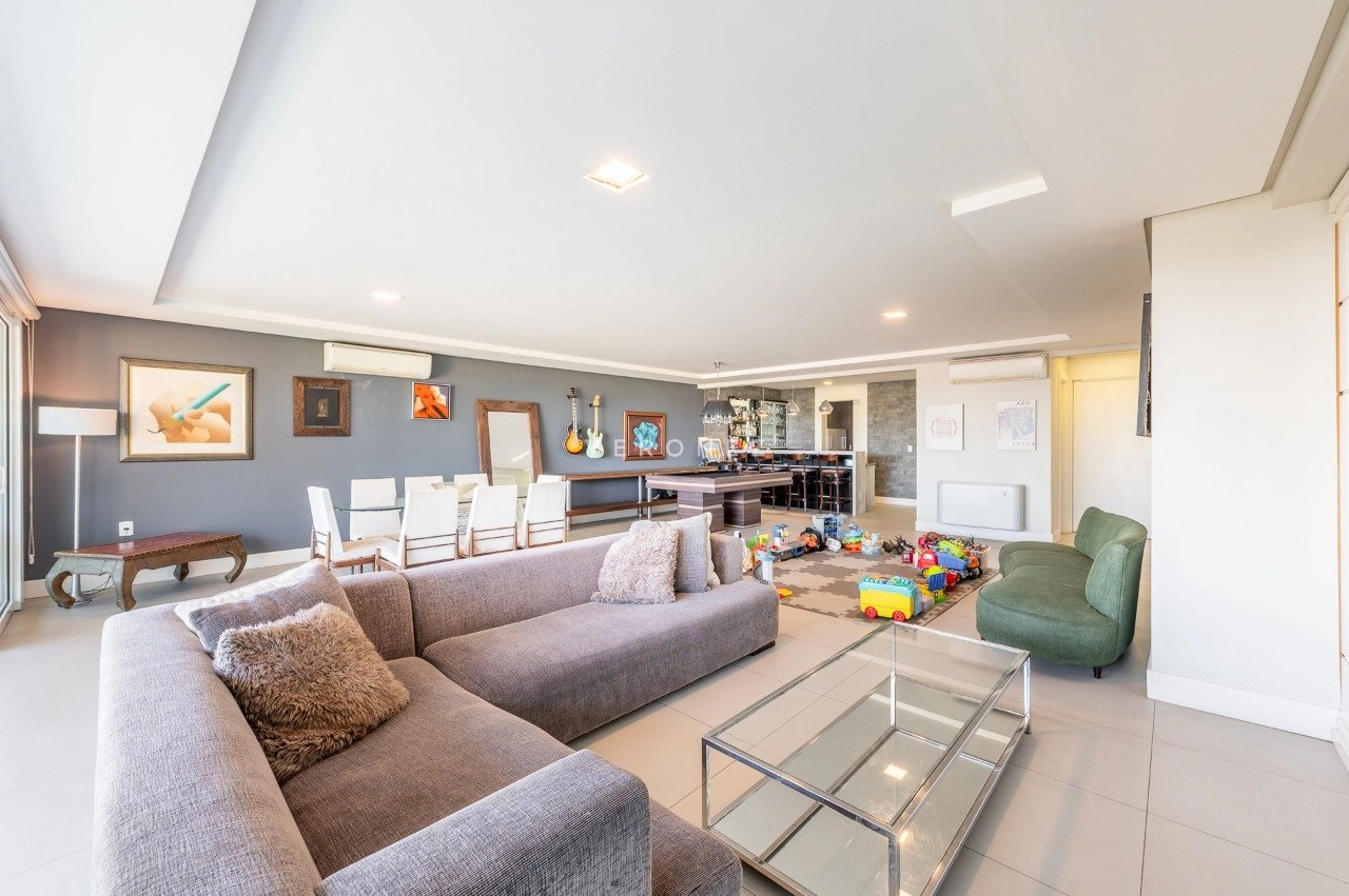Com 243 m² de área privativa, este imóvel impressiona pela amplitude e luminosidade. A área social conta com um elegante living para até quatro ambientes, privilegiado por excelente iluminação natural e ótima posição solar. Lavabo, espaço para bar com bancada e uma charmosa churrasqueira completam o ambiente com muito bom gosto.