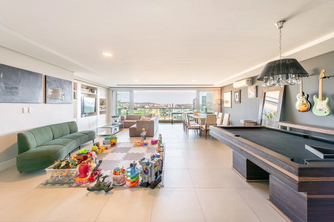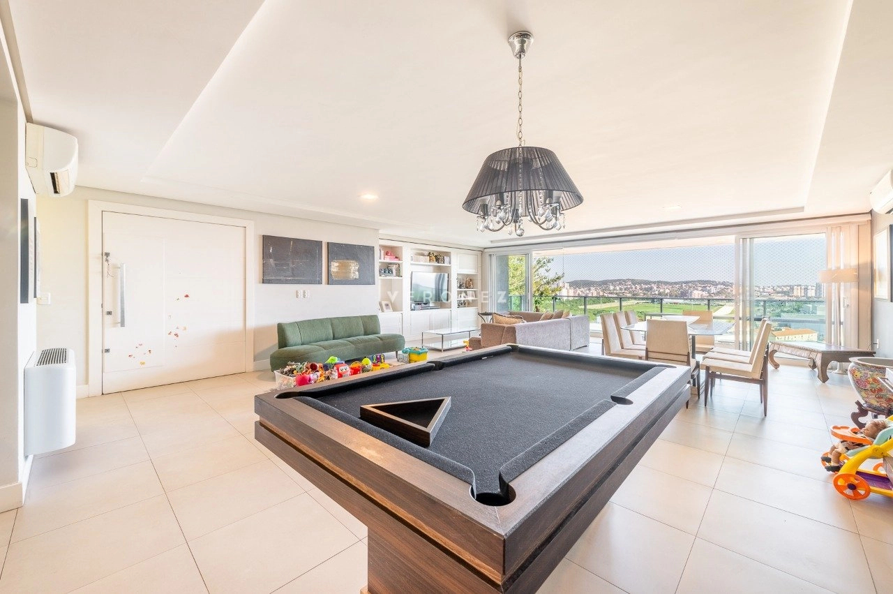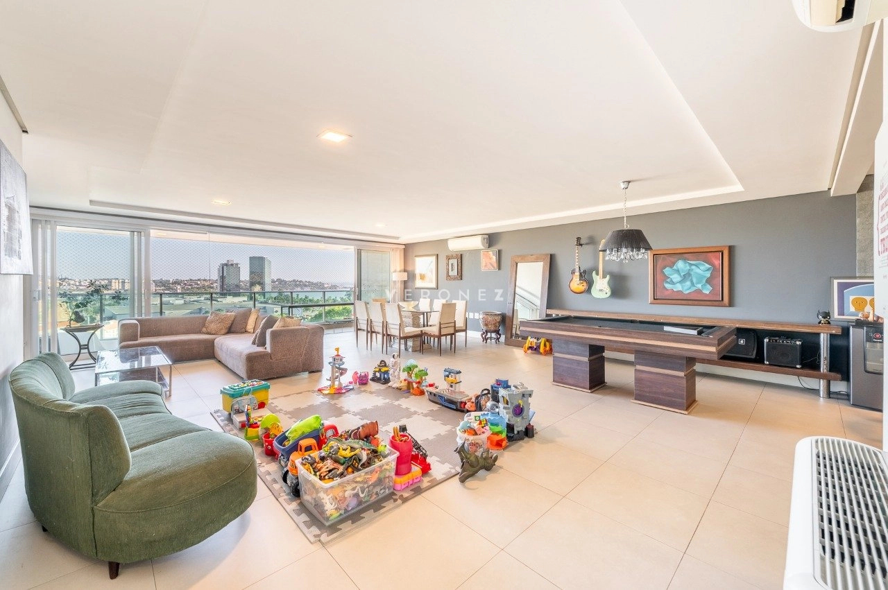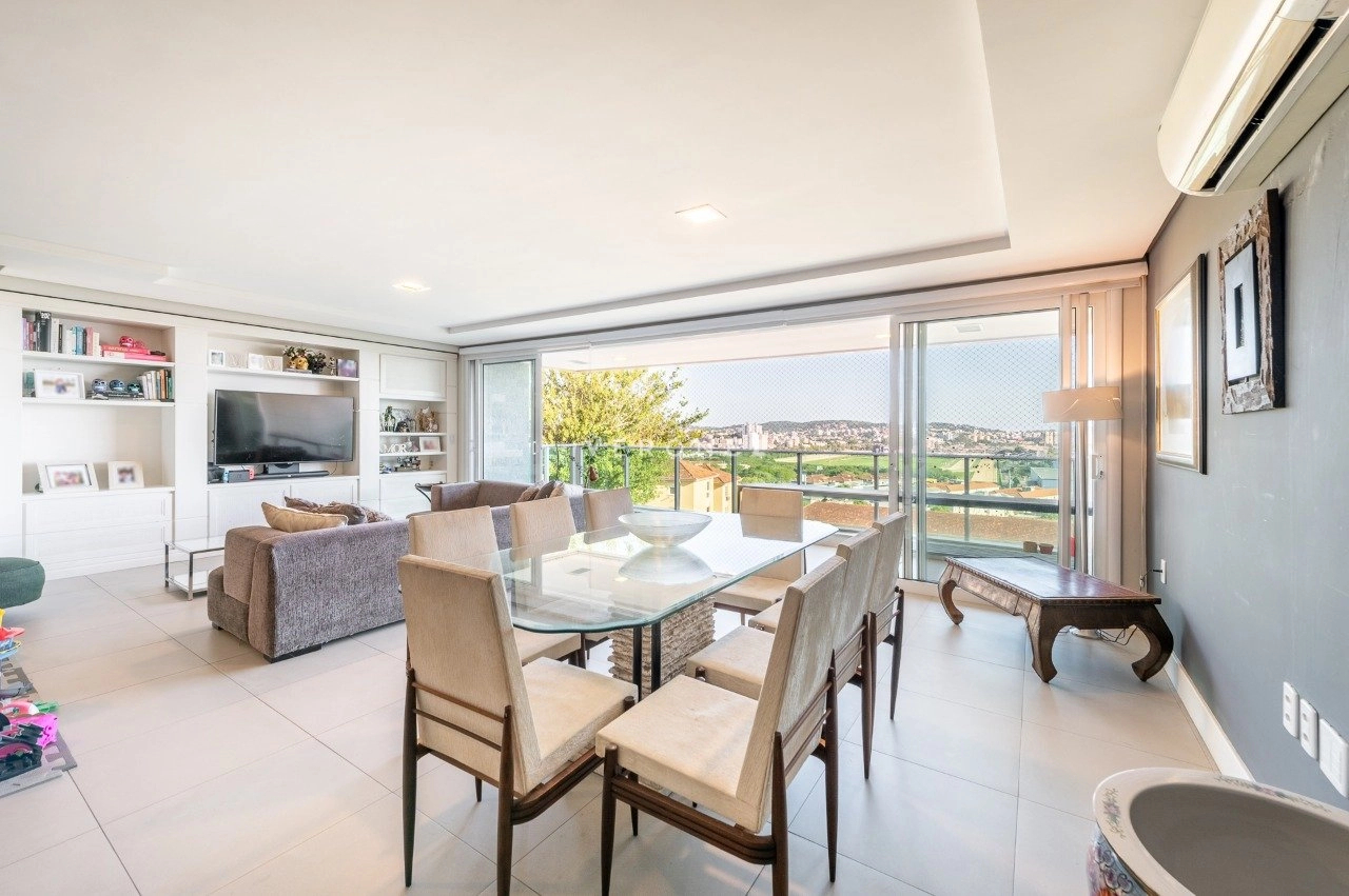 Com 243 m² de área privativa, este imóvel impressiona pela amplitude e luminosidade. A área social conta com um elegante living para até quatro ambientes, privilegiado por excelente iluminação natural e ótima posição solar. Lavabo, espaço para bar com bancada e uma charmosa churrasqueira completam o ambiente com muito bom gosto.