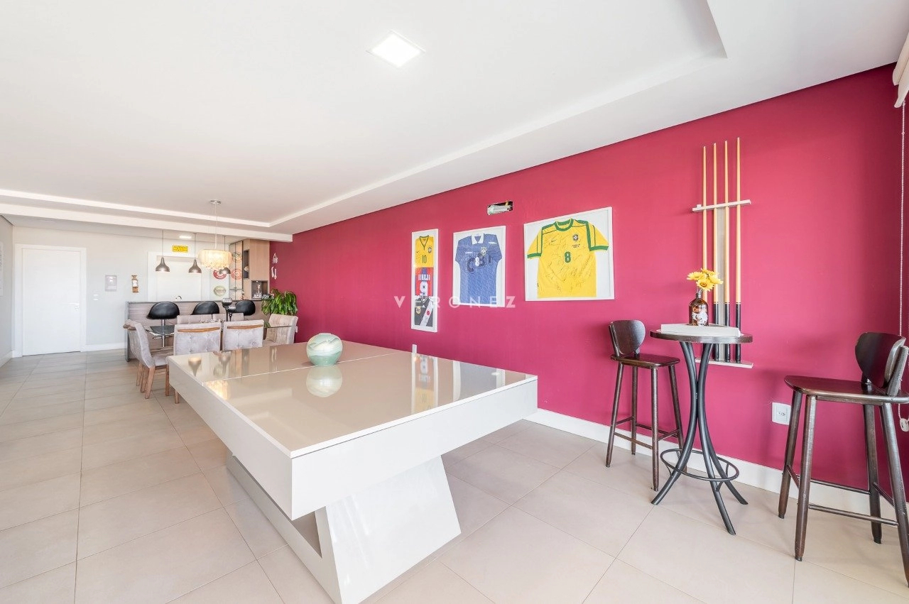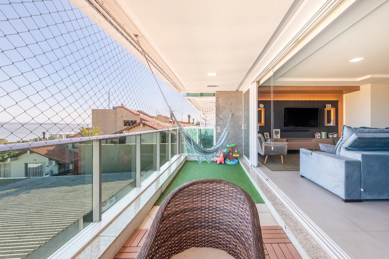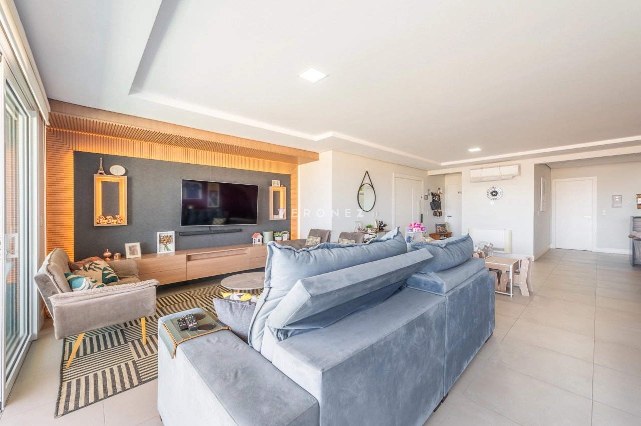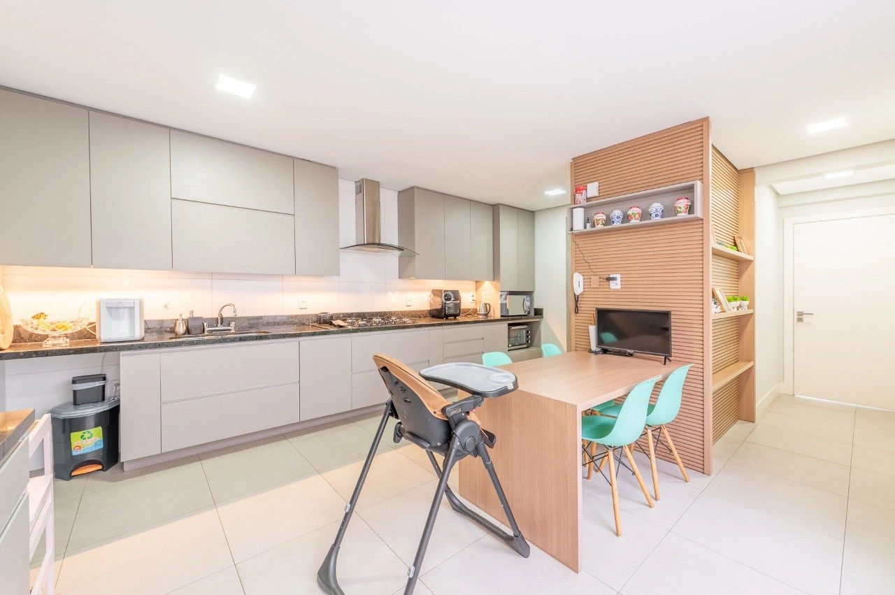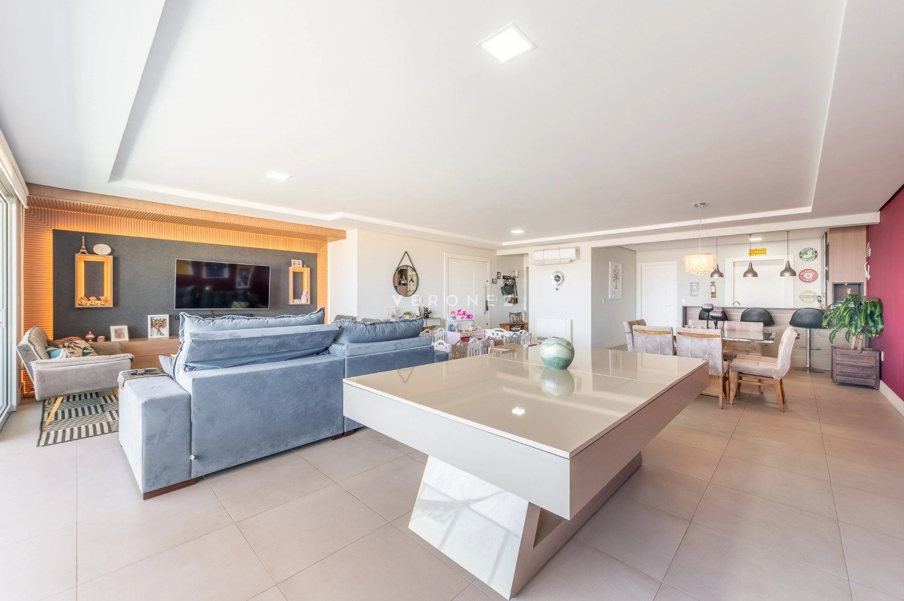 Apartamento com 3 dormitórios, 243 m², living amplo com sacada, lavabo e espaço gourmet e cozinha com churasqueira.