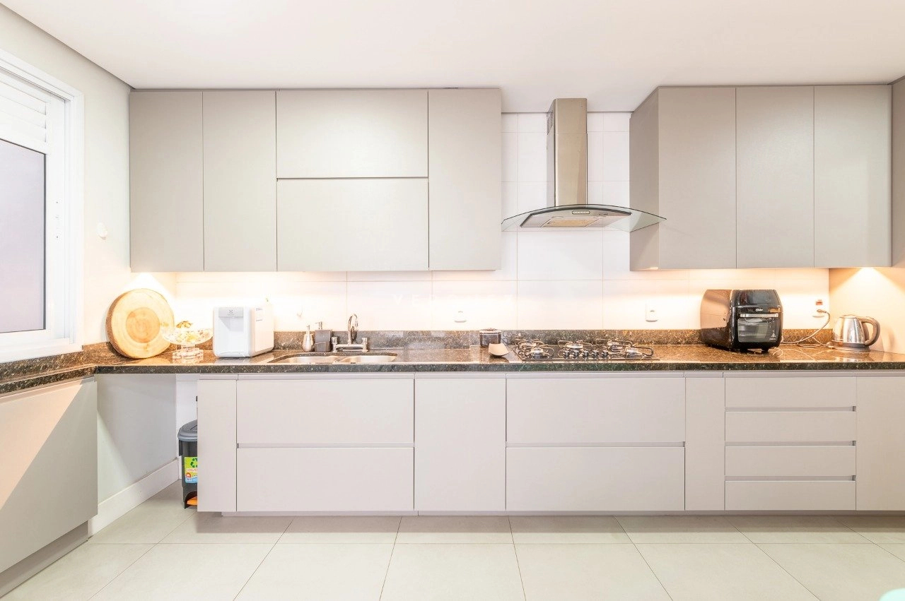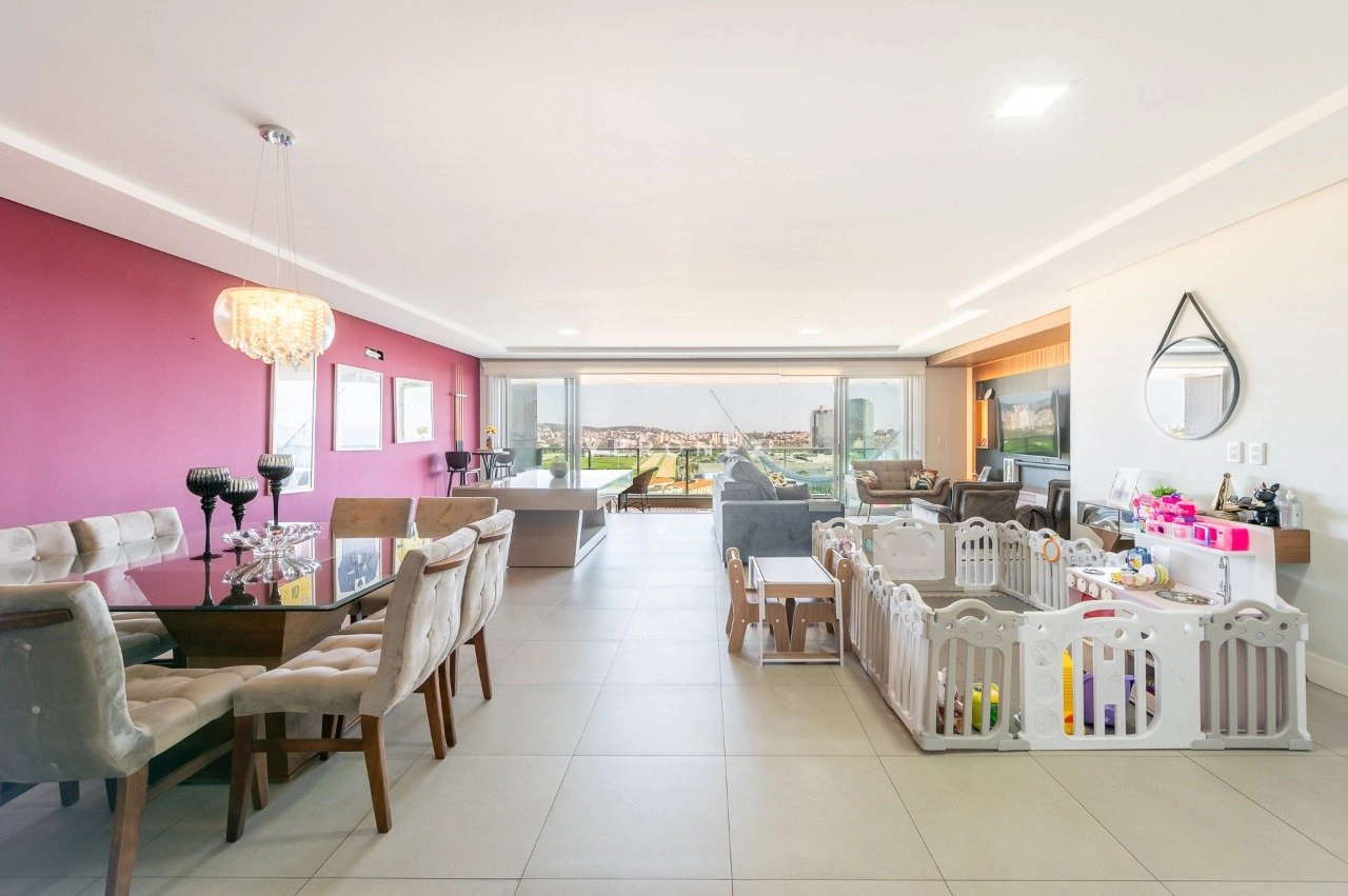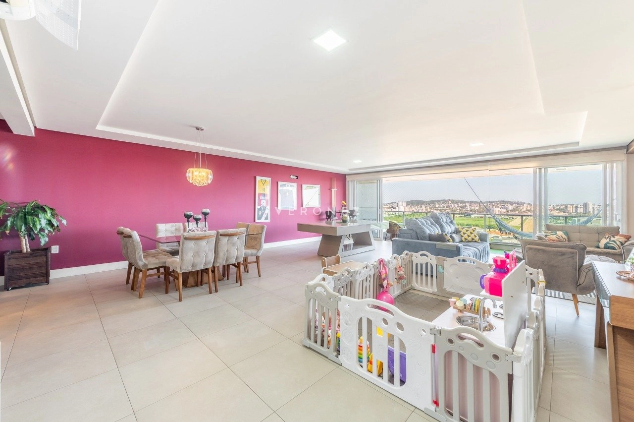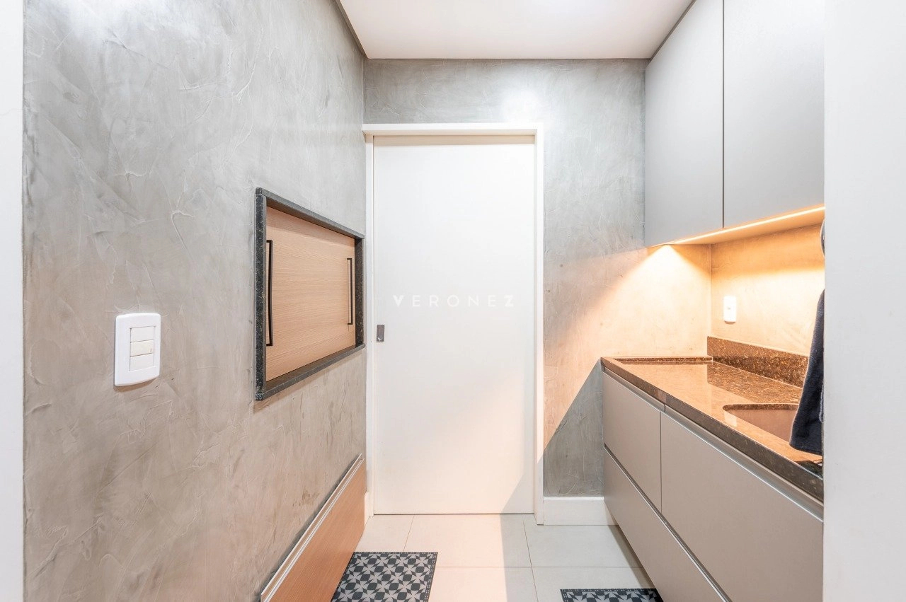 Apartamento com 3 dormitórios, 243 m², living amplo com sacada, lavabo e espaço gourmet e cozinha com churasqueira.