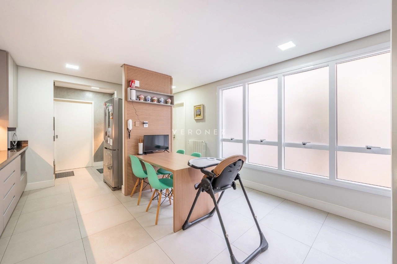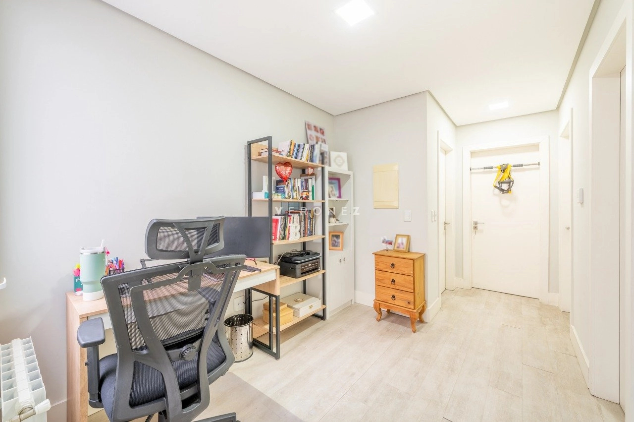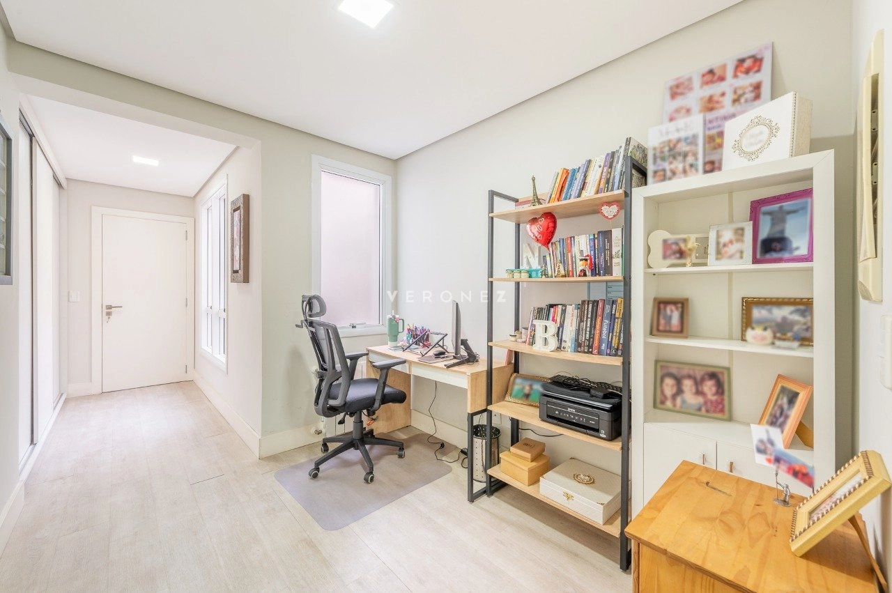 Na área íntima, são 3 dormitórios, sendo 2 suítes. A circulação ainda conta com um espaço versátil utilizado como home office.