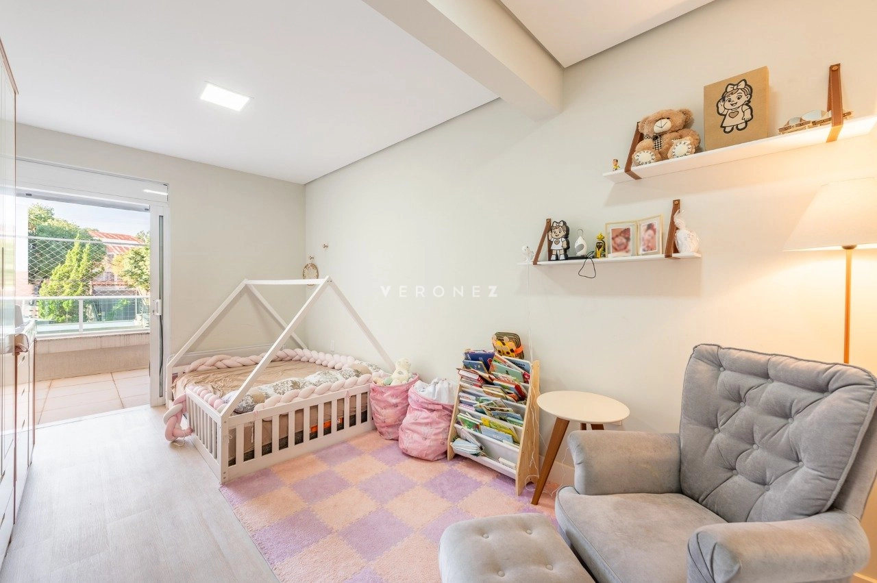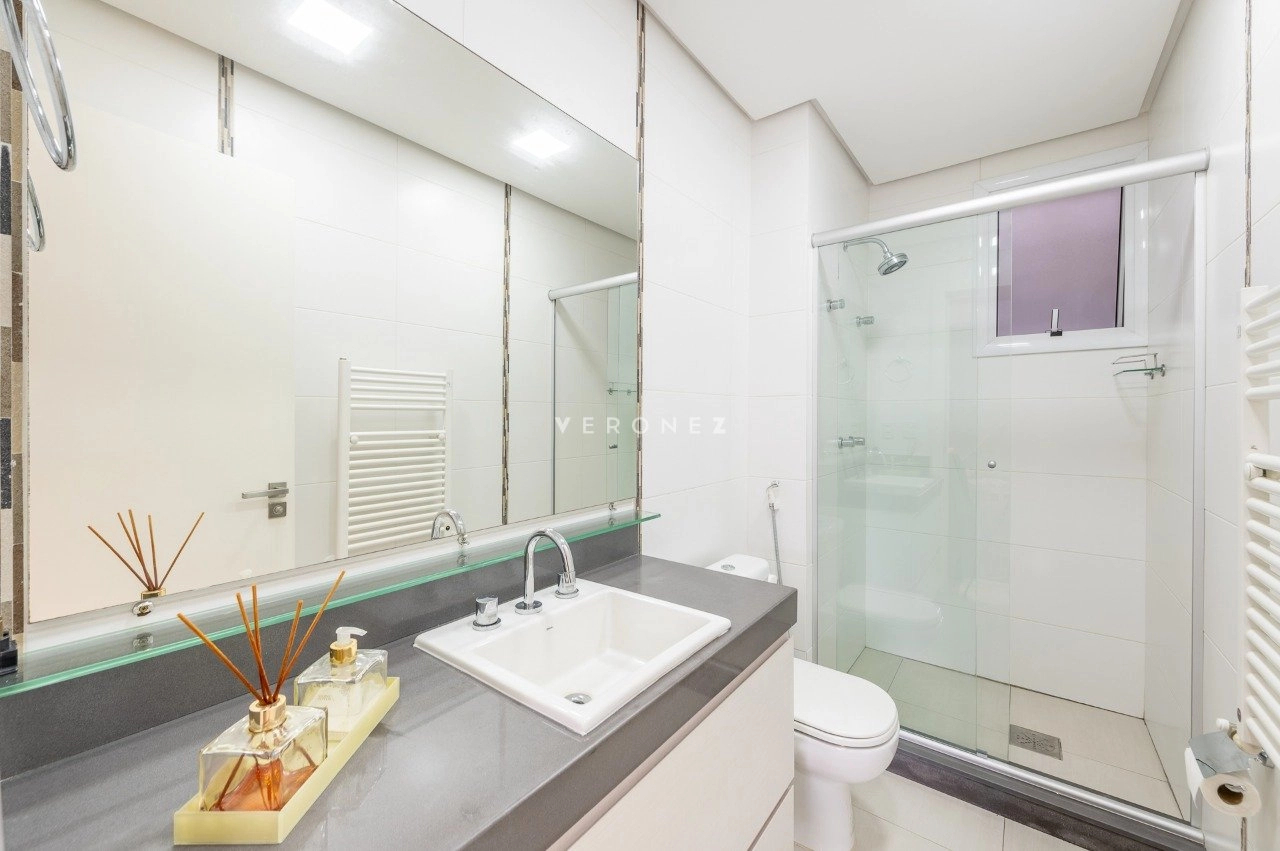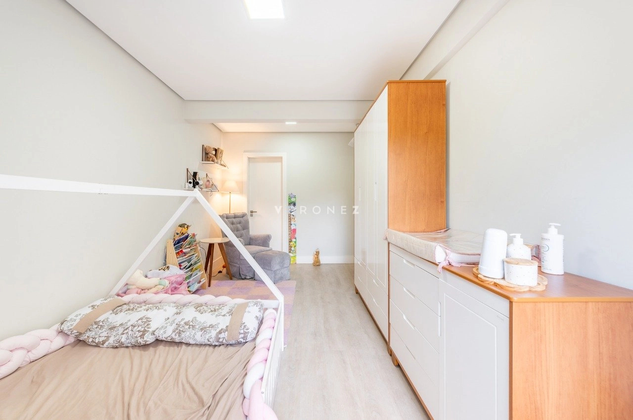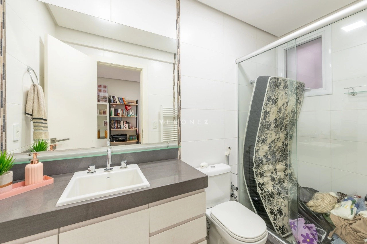 Na área íntima, são 3 dormitórios, sendo 2 suítes. A circulação ainda conta com um espaço versátil utilizado como home office.