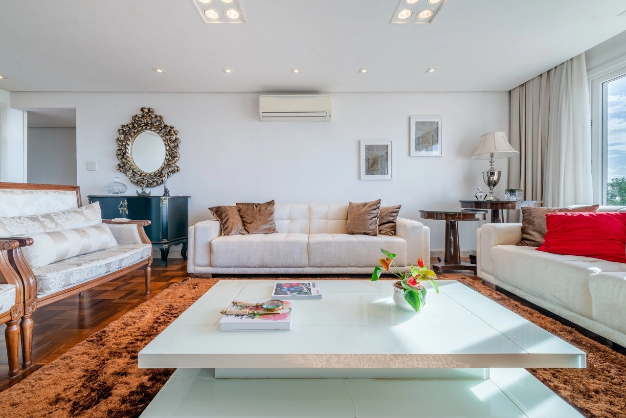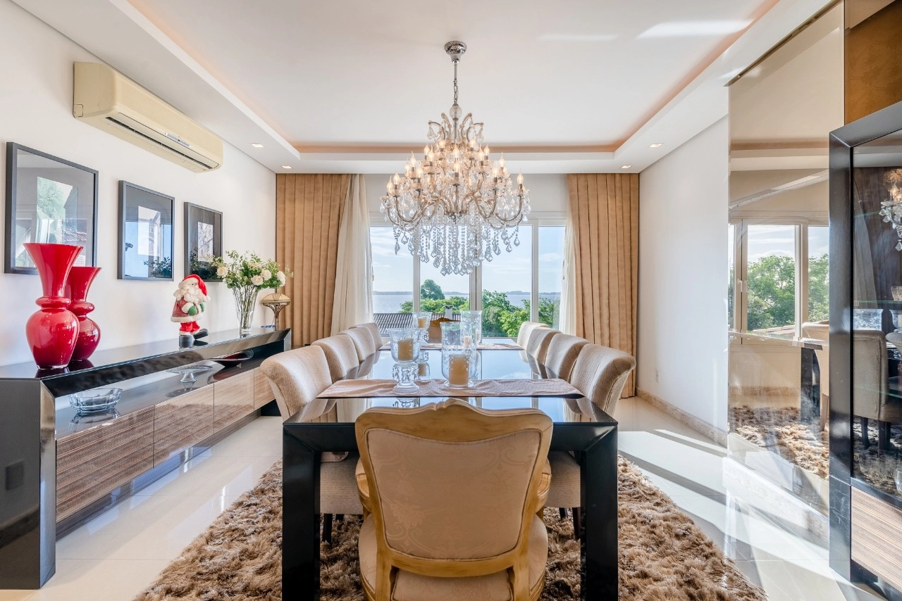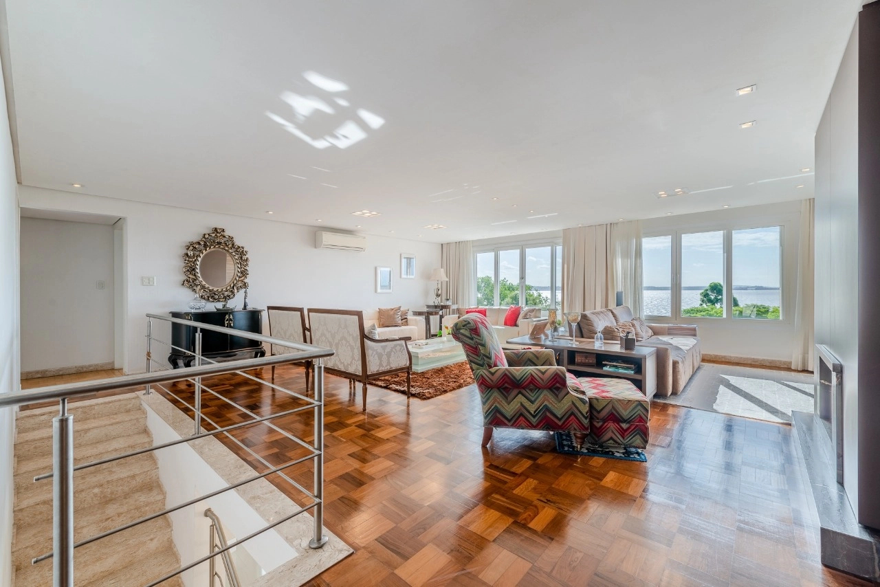 Com 5 dormitórios, suíte com closet, dependência de empregada, office completo, 5 banheiros, cozinha super ampla, lavandeira, lareira, adega, salão de festas, área gourmet, piscina, 4 vagas de garagem, sendo 2 cobertas e o principal, uma localização fantástica com uma vista deslumbrante para o Guaíba.
