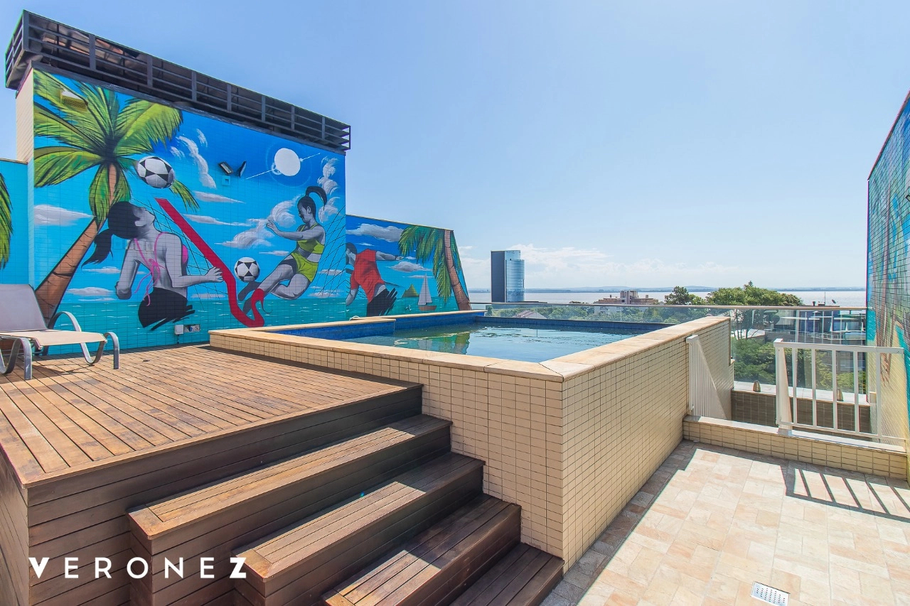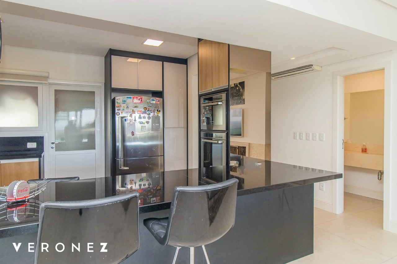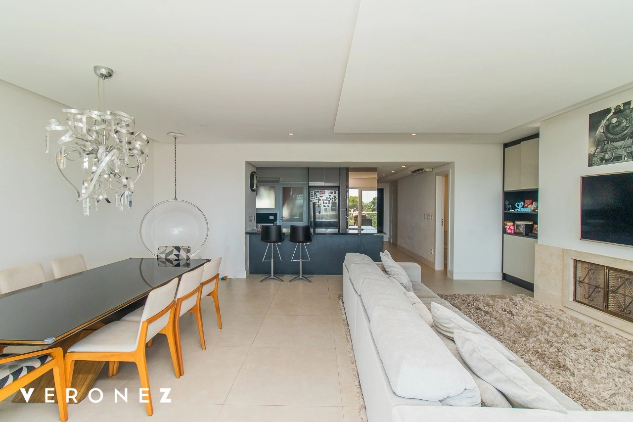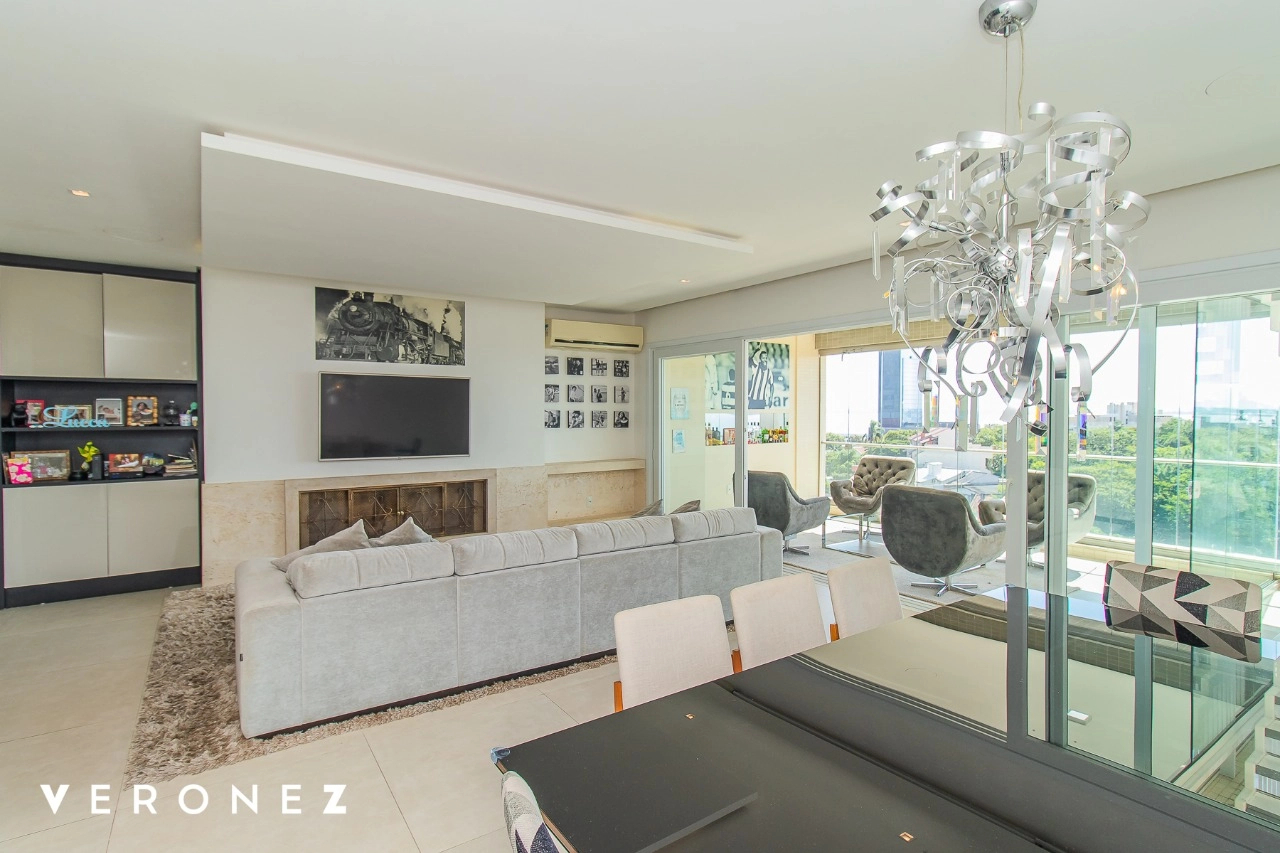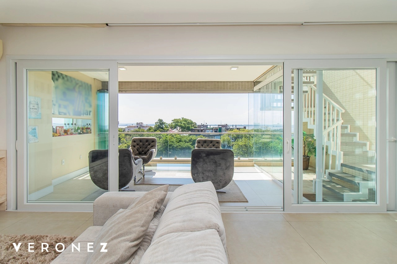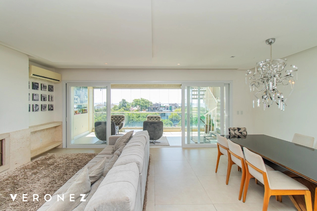 São 320 m² privativos, 3 amplas suítes com persianas elétricas e split instalado. Na suíte master tem uma varanda com jacuzzi e esteira! Passando os dormitórios você encontra uma aconchegante sala de cinema, projetada para ficar totalmente escura e proporcionar a melhor experiencia de um filme em família! No living temos lavabo, amplo ambiente de TV com lareira, split, varanda integrada com linda vista para o Guaíba, cozinha americana com churrasqueira e área de serviço separada com banheiro auxiliar! Na cobertura, piscina com deck molhado, amplo ambiente para churrasco com mesa de sinuca, TV, split e lavabo! O elevador chega diretamente no andar superior!