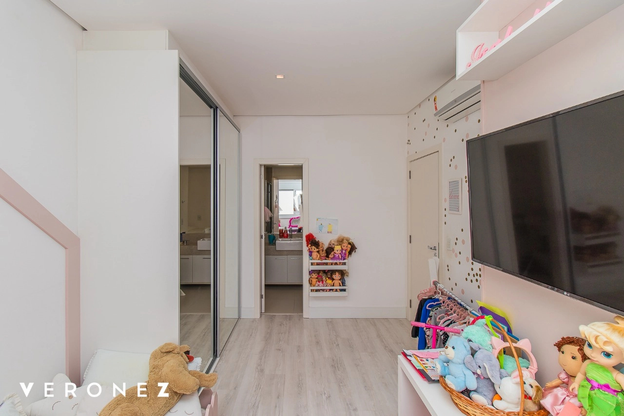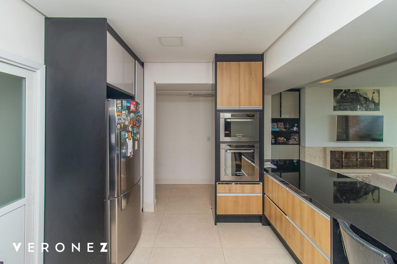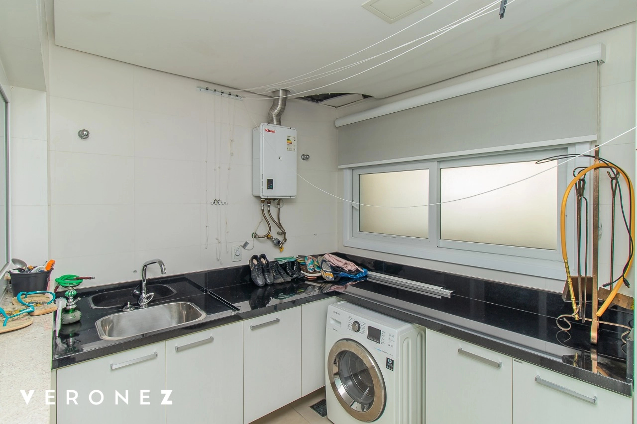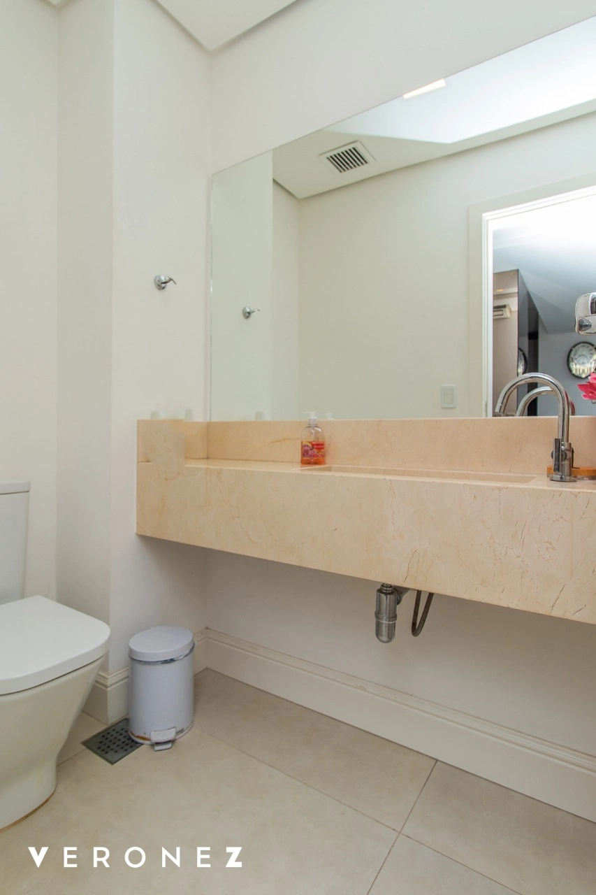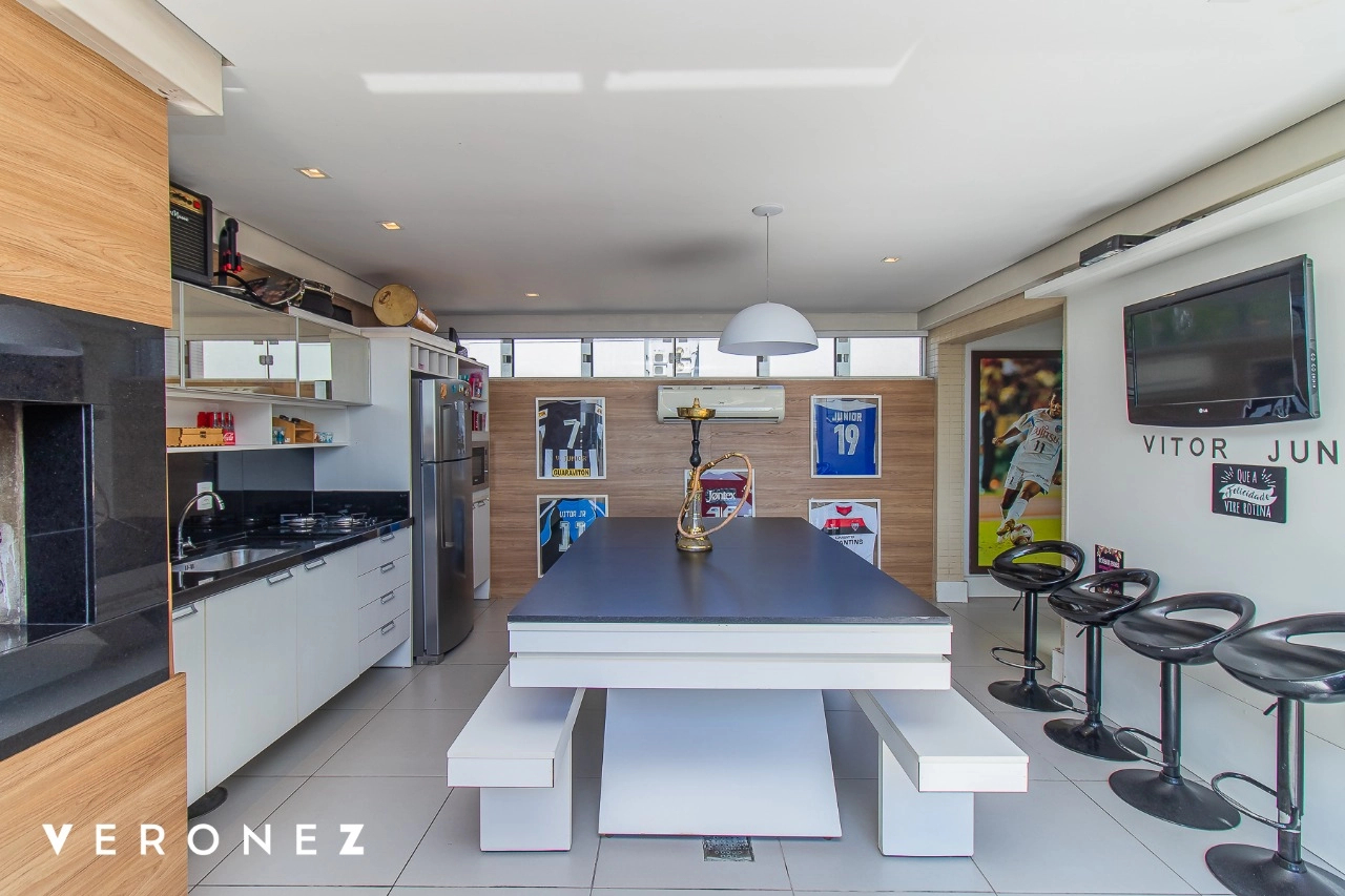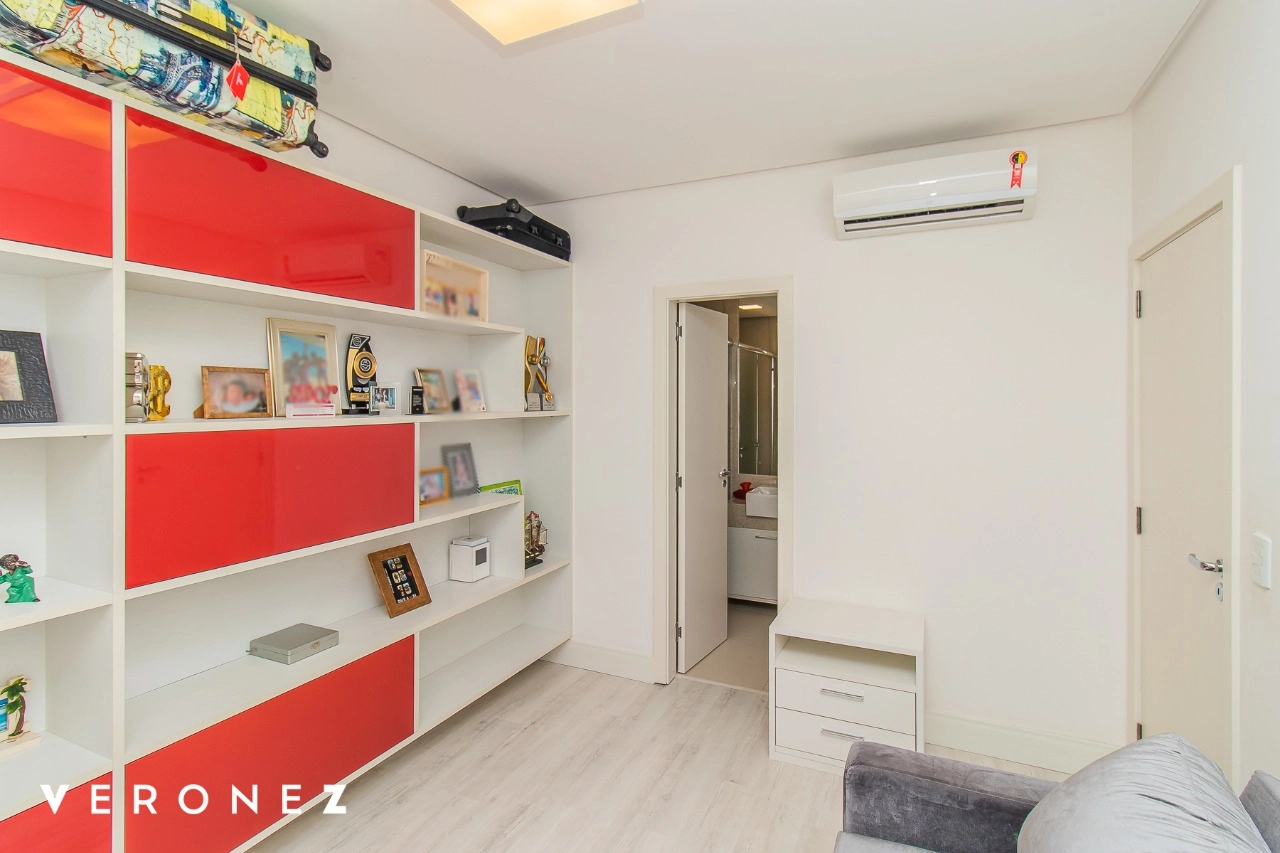 São 320 m² privativos, 3 amplas suítes com persianas elétricas e split instalado. Na suíte master tem uma varanda com jacuzzi e esteira! Passando os dormitórios você encontra uma aconchegante sala de cinema, projetada para ficar totalmente escura e proporcionar a melhor experiencia de um filme em família! No living temos lavabo, amplo ambiente de TV com lareira, split, varanda integrada com linda vista para o Guaíba, cozinha americana com churrasqueira e área de serviço separada com banheiro auxiliar! Na cobertura, piscina com deck molhado, amplo ambiente para churrasco com mesa de sinuca, TV, split e lavabo! O elevador chega diretamente no andar superior!