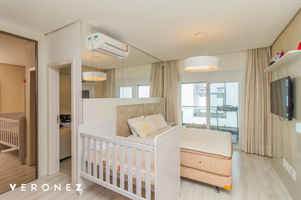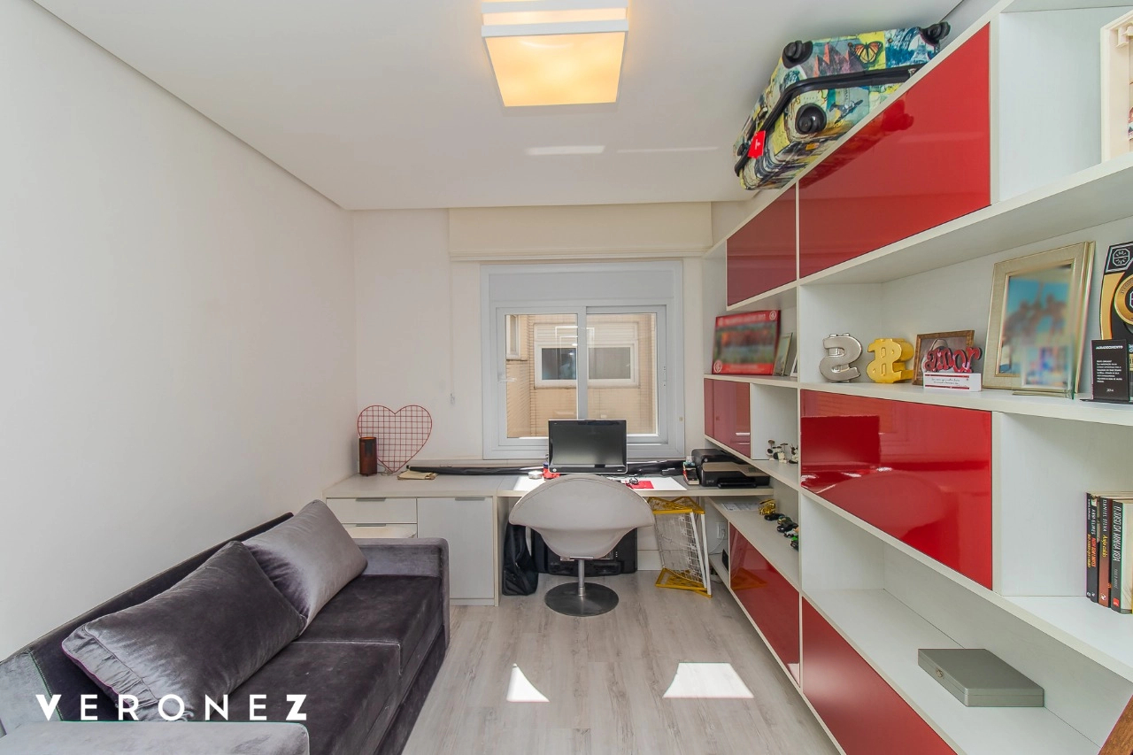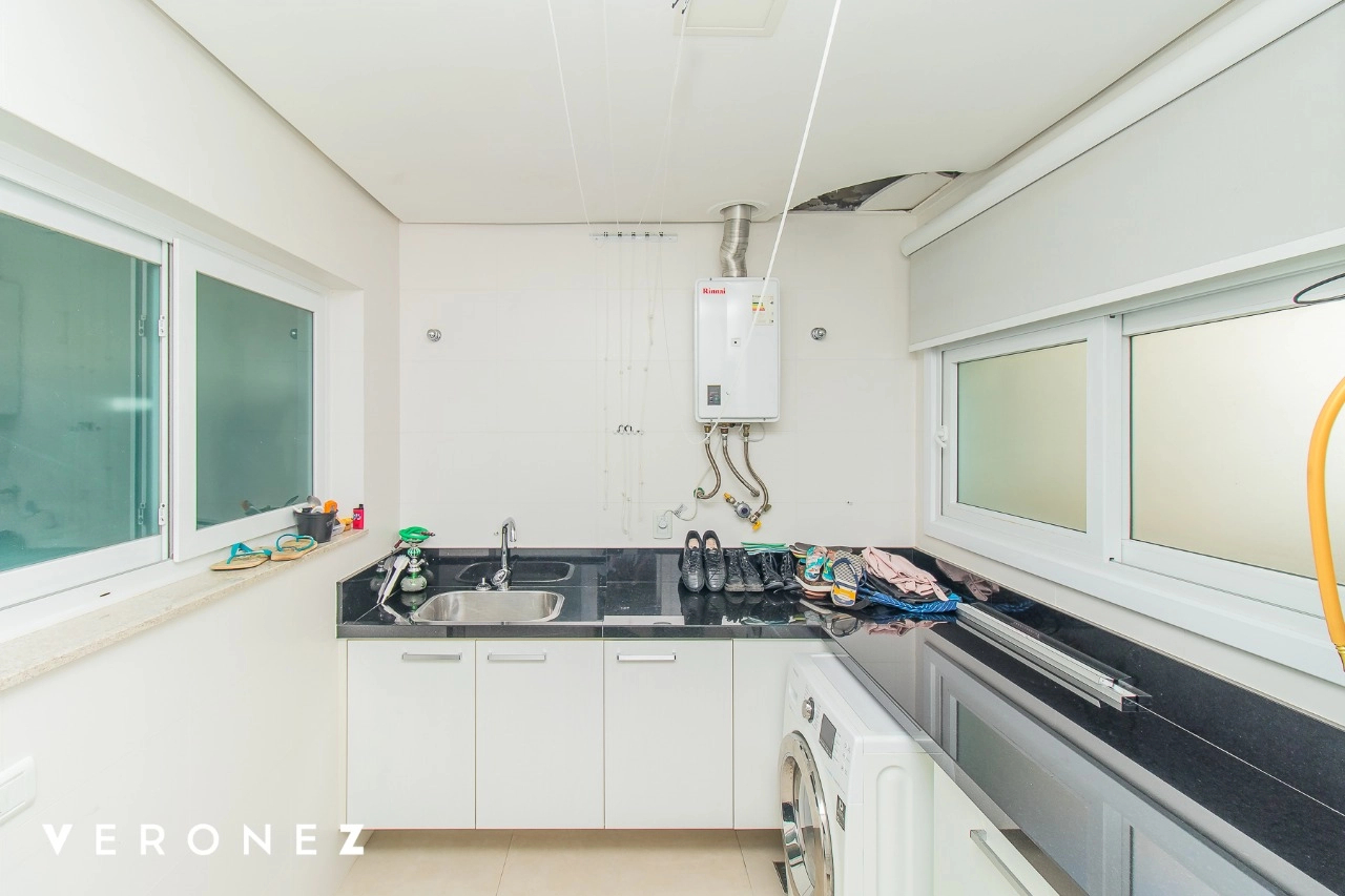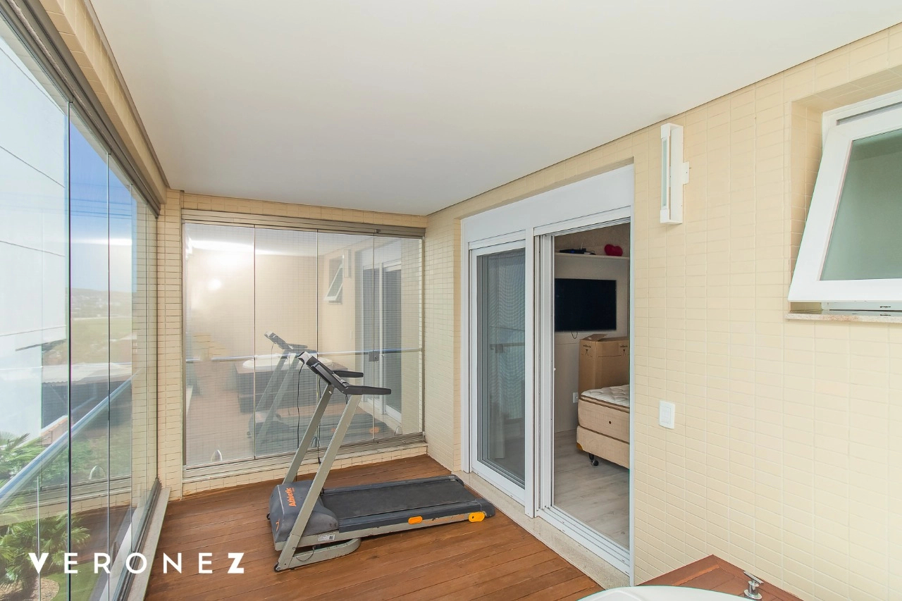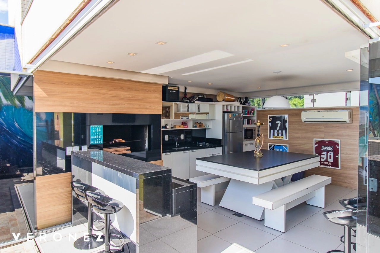 São 320 m² privativos, 3 amplas suítes com persianas elétricas e split instalado. Na suíte master tem uma varanda com jacuzzi e esteira! Passando os dormitórios você encontra uma aconchegante sala de cinema, projetada para ficar totalmente escura e proporcionar a melhor experiencia de um filme em família! No living temos lavabo, amplo ambiente de TV com lareira, split, varanda integrada com linda vista para o Guaíba, cozinha americana com churrasqueira e área de serviço separada com banheiro auxiliar! Na cobertura, piscina com deck molhado, amplo ambiente para churrasco com mesa de sinuca, TV, split e lavabo! O elevador chega diretamente no andar superior!