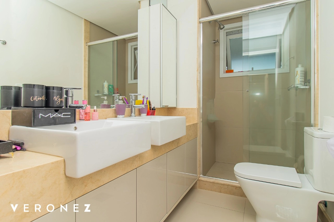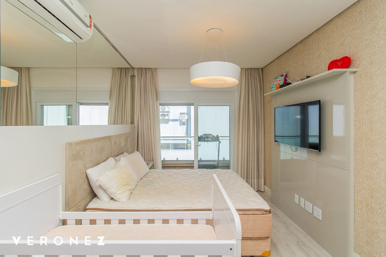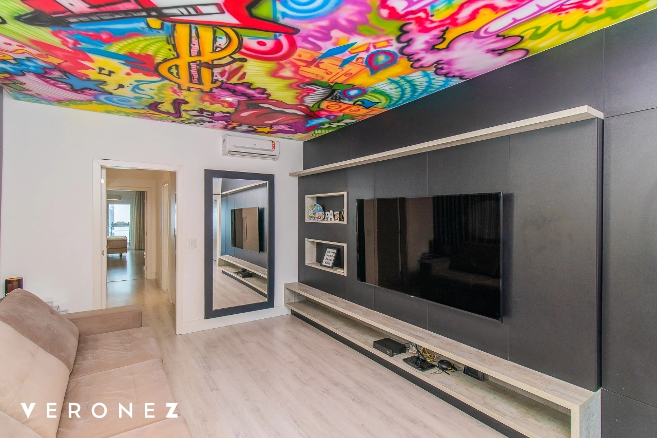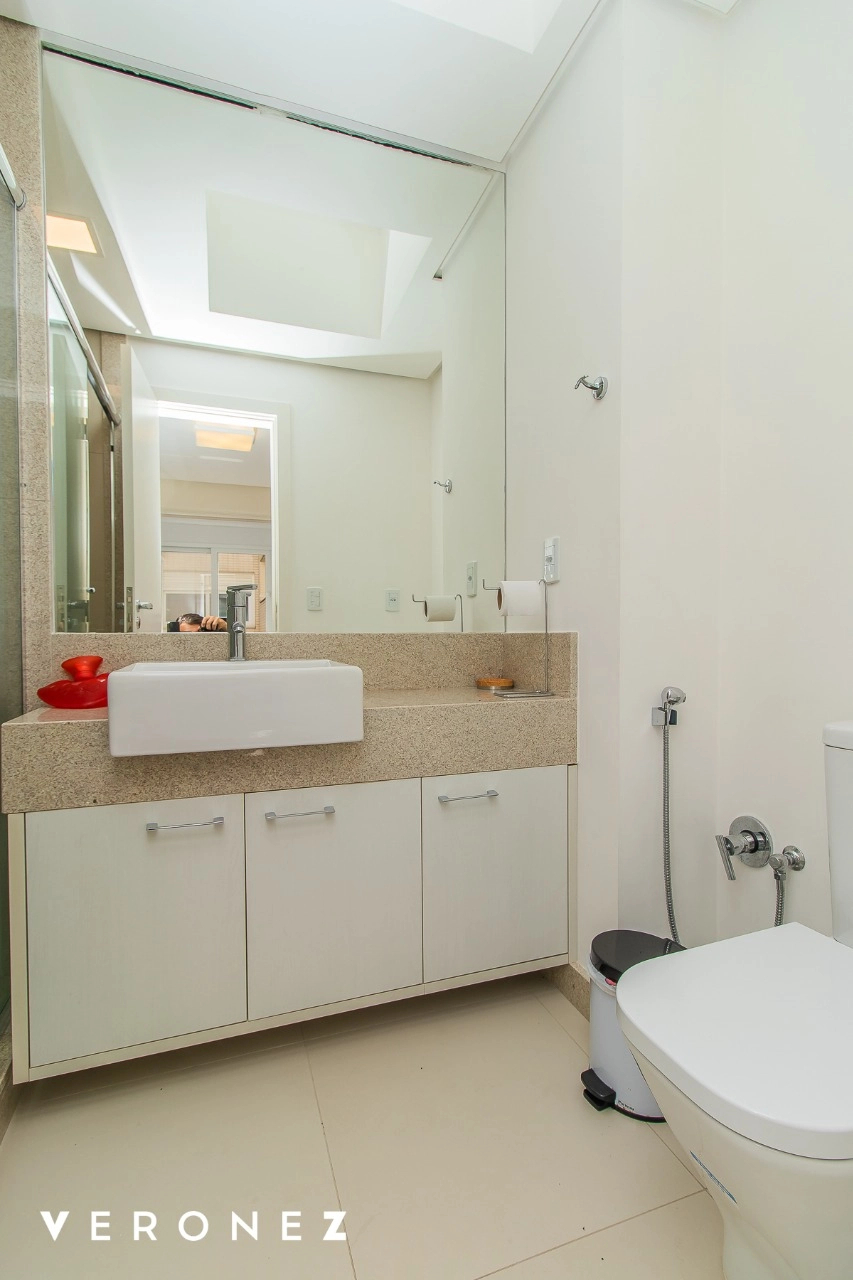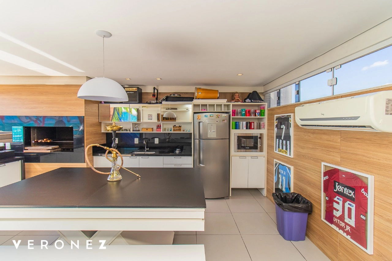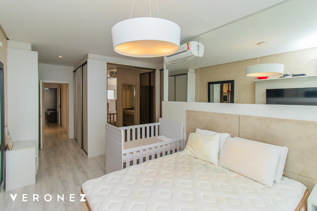 São 320 m² privativos, 3 amplas suítes com persianas elétricas e split instalado. Na suíte master tem uma varanda com jacuzzi e esteira! Passando os dormitórios você encontra uma aconchegante sala de cinema, projetada para ficar totalmente escura e proporcionar a melhor experiencia de um filme em família! No living temos lavabo, amplo ambiente de TV com lareira, split, varanda integrada com linda vista para o Guaíba, cozinha americana com churrasqueira e área de serviço separada com banheiro auxiliar! Na cobertura, piscina com deck molhado, amplo ambiente para churrasco com mesa de sinuca, TV, split e lavabo! O elevador chega diretamente no andar superior!