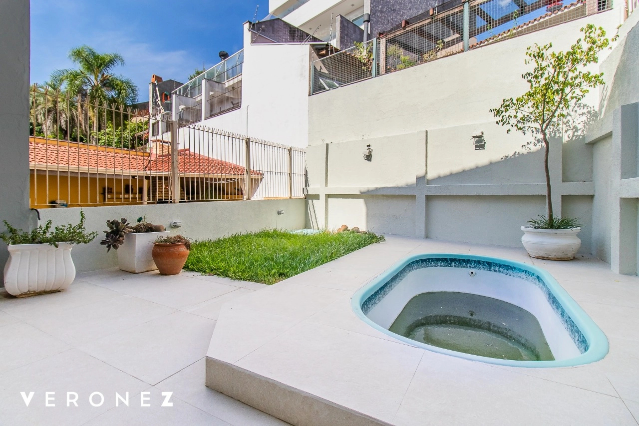 Casa com 3 dormitórios totalmente reformada, sendo uma suite master com lareira, sacada e closet. Amplo living para 3 ambientes que se estende ao páteo e piscina, conta com lavabo, lareira, churrasqueira e cozinha aberta. No terceiro pavimento, sotão com lavabo, sacadão e belíssima vista para o bairro. Imóvel