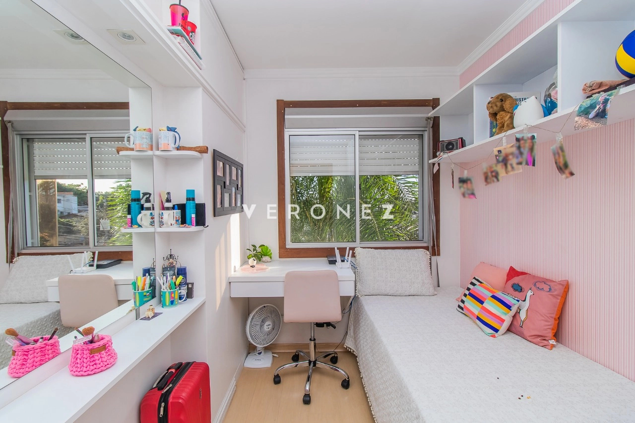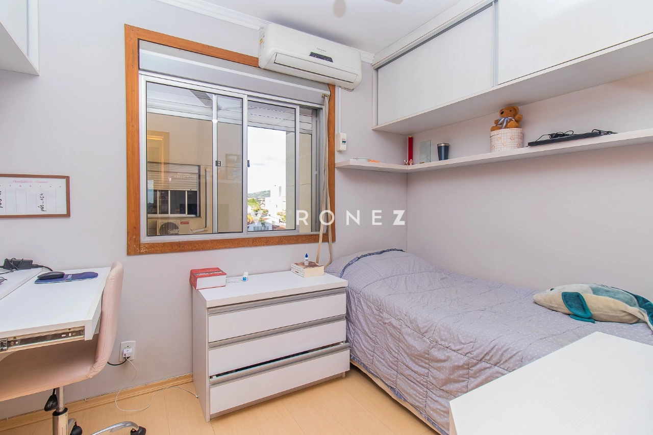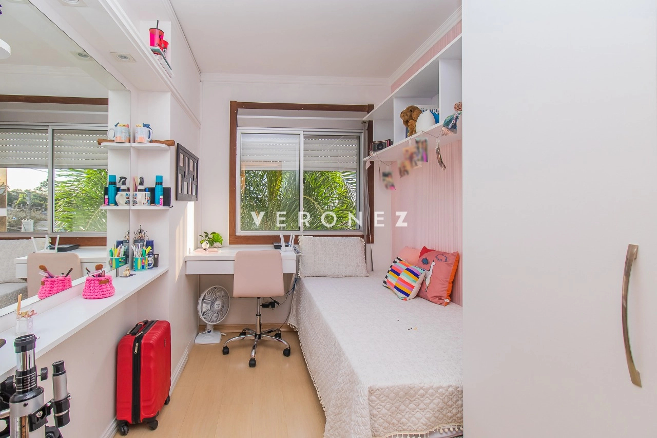 Belo apartamento no bairro Jardim do Salso, composto de 3 dormitórios, sendo 1 suíte, living para 2 ambientes com sacada e churrasqueira, cozinha americana planejada, área de serviço separada e banheiro social.