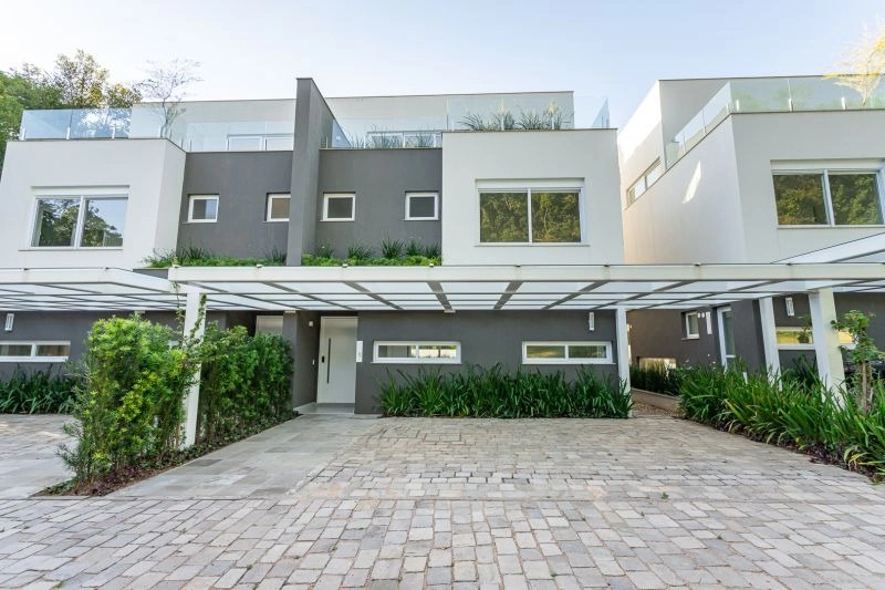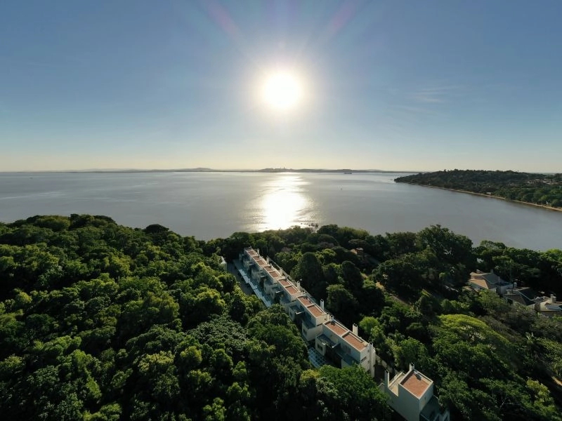 Casa de frente para o Morro do Sabiá, no bairro Pedra Redonda, um dos mais nobres e preservados da Zona Sul de Porto Alegre, com 449,15 m² privativos, sendo 276,25 m² coberta e 172,90 m² descoberta. Possui 3 suítes com opção para 4, 3 vagas, living 3 ambientes, lareira, lavabo e espaço gourmet. Área social integrada ao pátio privativo. Varanda com churrasqueira. Área de serviço com banheiro e acesso independente. Suíte master com terraço e espaço para closet. As casas possuem três amplos terraços e são distribuídas em uma área total com mais de 7,600 m². Gerador central para todas as unidades, persianas motorizadas, espera para elevador, cobertura com terraço e espera para spa, área técnica para equipamentos de ar condicionado, infraestrutura para implantação de sistemas de aspiração central e automação.