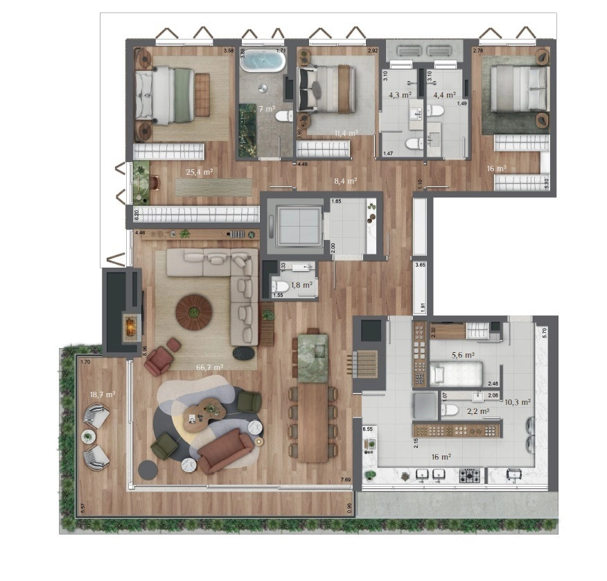 O foco na sustentabilidade, com plantas nativas da região, e a escolha das espécies buscam reequilibrar o ambiente urbano e proporcionar benefícios como regulação de temperatura e umidade do ar. A sintonia ideal para viver com mais qualidade e bem-estar.