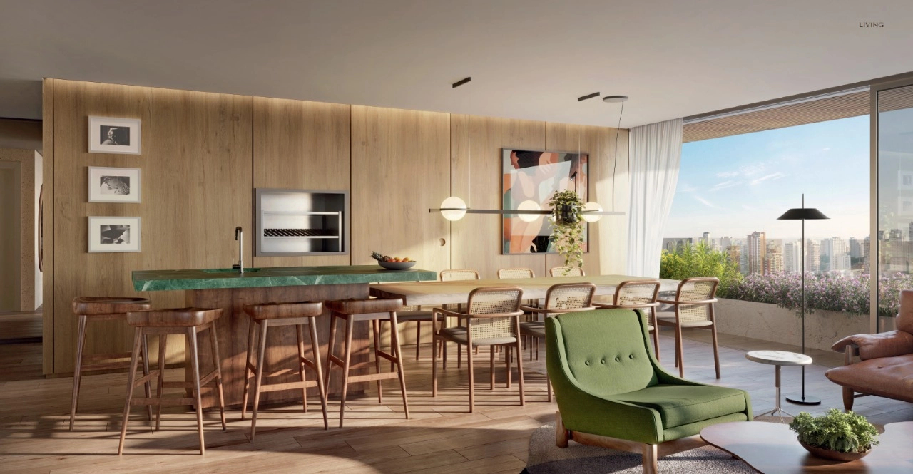 entre os moradores e a natureza, o projeto conta com diferentes plantas e colorações atrativas para a fauna. A brasilidade é representada em 54 espécies nativas da biodiversidade, quebrando as barreiras entre interior e exterior, dando aos habitantes a sensação de viver em meio à natureza.