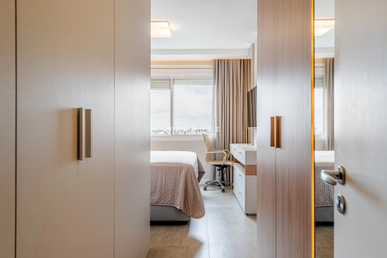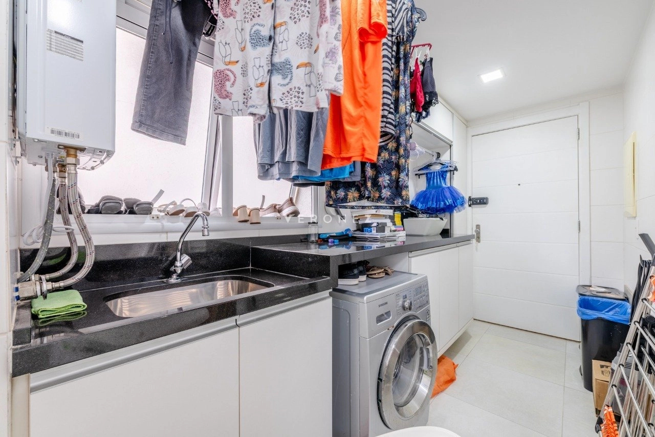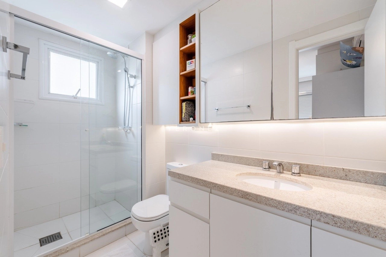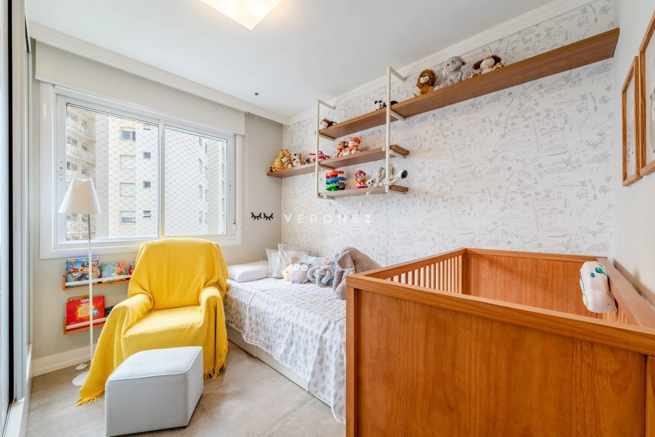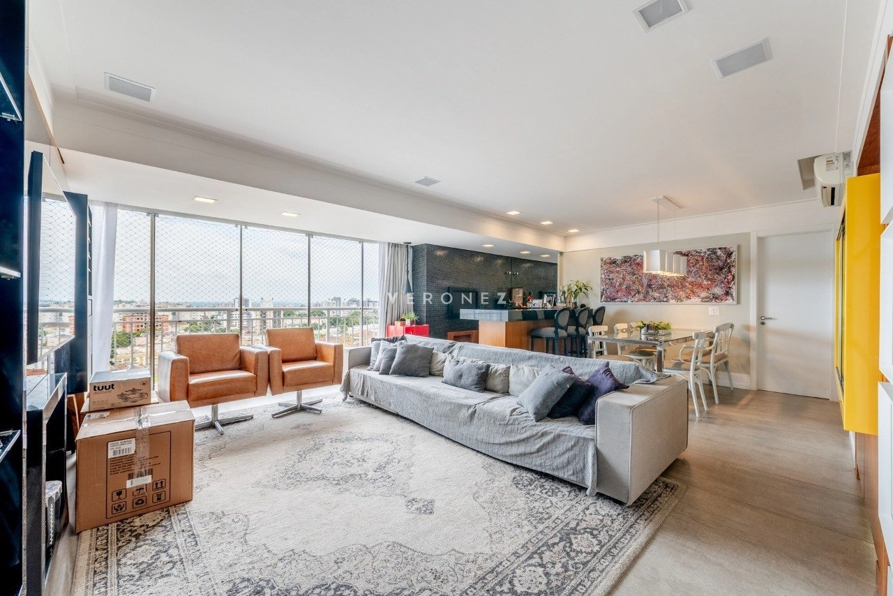 Apartamento de 130 m², totalmente mobiliado, com 3 dormitórios, sendo 3 suítes, lavabo e 2 vagas de garagem. O imóvel conta com móveis planejados em todos os ambientes, piso em porcelanato, living com churrasqueira integrada, ar-condicionado split e área de serviço com lavanderia, oferecendo conforto e praticidade para o dia a dia.