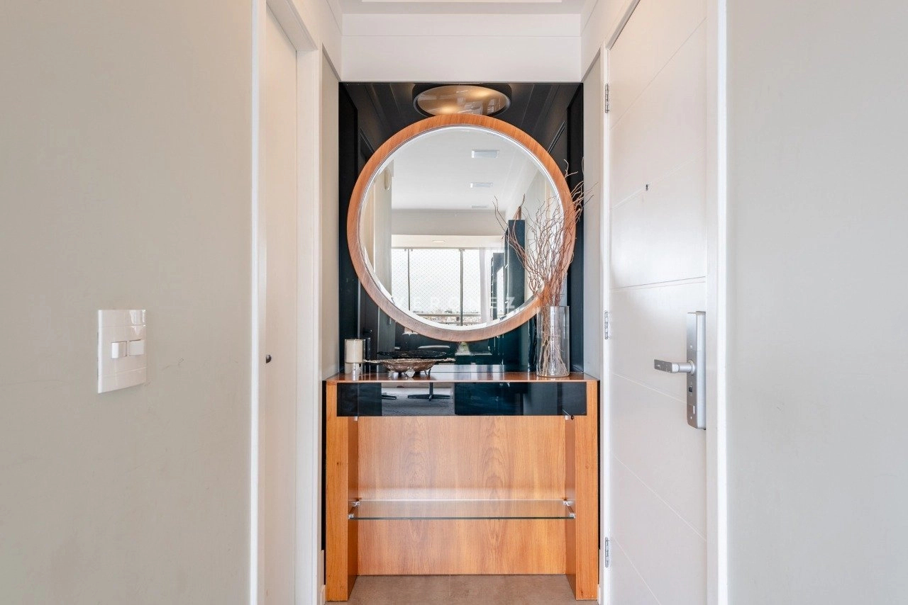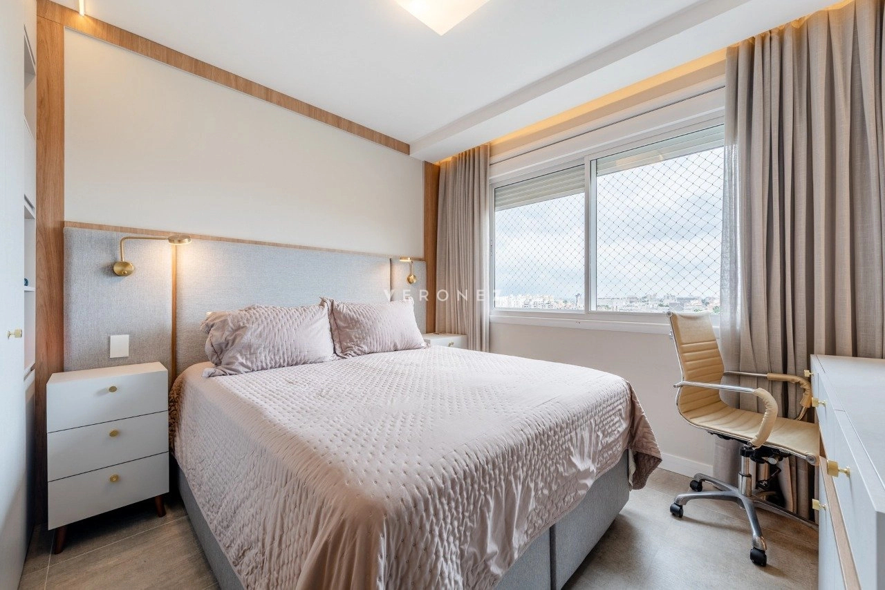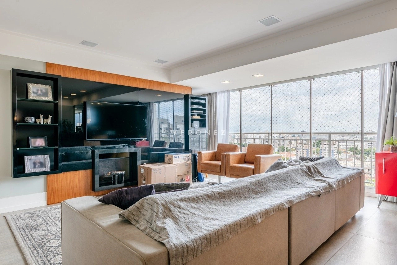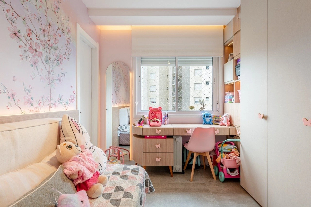 Apartamento de 130 m², totalmente mobiliado, com 3 dormitórios, sendo 3 suítes, lavabo e 2 vagas de garagem. O imóvel conta com móveis planejados em todos os ambientes, piso em porcelanato, living com churrasqueira integrada, ar-condicionado split e área de serviço com lavanderia, oferecendo conforto e praticidade para o dia a dia.