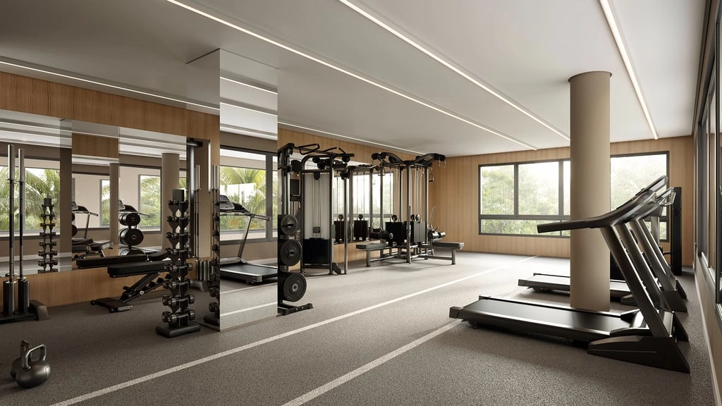 As amenidades do empreendimento incluem brinquedoteca, espaço para negócios, elevador social, espaço gourmet, academia, piscina para adultos, playground, portaria, segurança e um terraço coletivo.