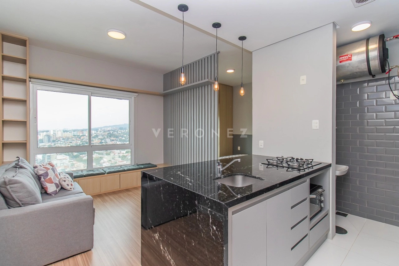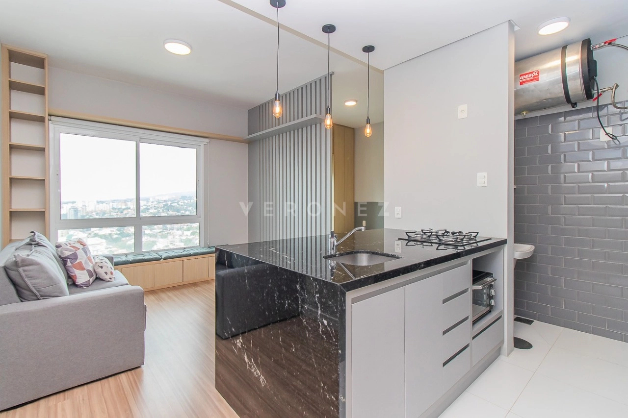 Apartamento mobiliado de 37m² no bairro Três Figueiras para aluguel.