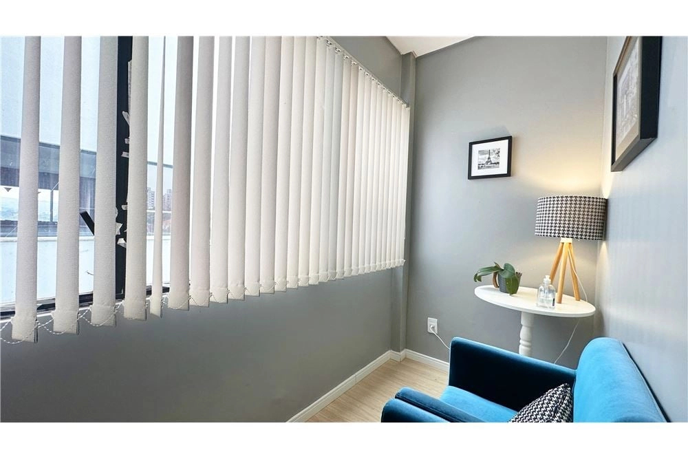 Excelente sala comercial, mobiliada lindamente, com recepção, cozinha, lavabo e um box de garagem escriturado. Sala mobiliada em andar alto, com ótima vista e ventilação. O condomínio conta com elevador, portaria no horário comercial e é muito bem localizado, em rua calma, fácil de estacionar, entre as Ruas Felipe de Oliveira e Av.Protásio Alves. Ótimo local de trabalho ou para investimento! Agende já sua visita! Preço e disponibilidade do imóvel sujeitos a alteração sem aviso prévio.