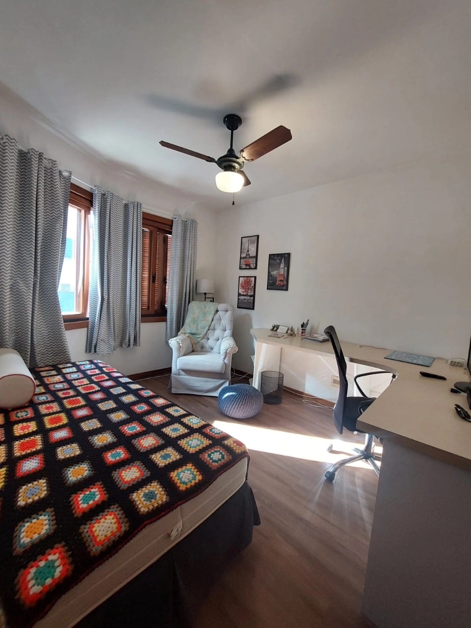Casa em condomínio, composta por 4 dormitórios sendo 1 suíte com sacada, living 2 ambientes, lavabo, cozinha com móveis sob medida, lavanderia, dependência de empregada, pátio com churrasqueira, gabinete e amplo sótão com lareira. Garagem para 2 carros. Condomínio com piscina, salão de festas, academia e portaria 24 horas.