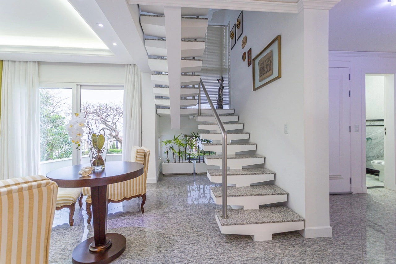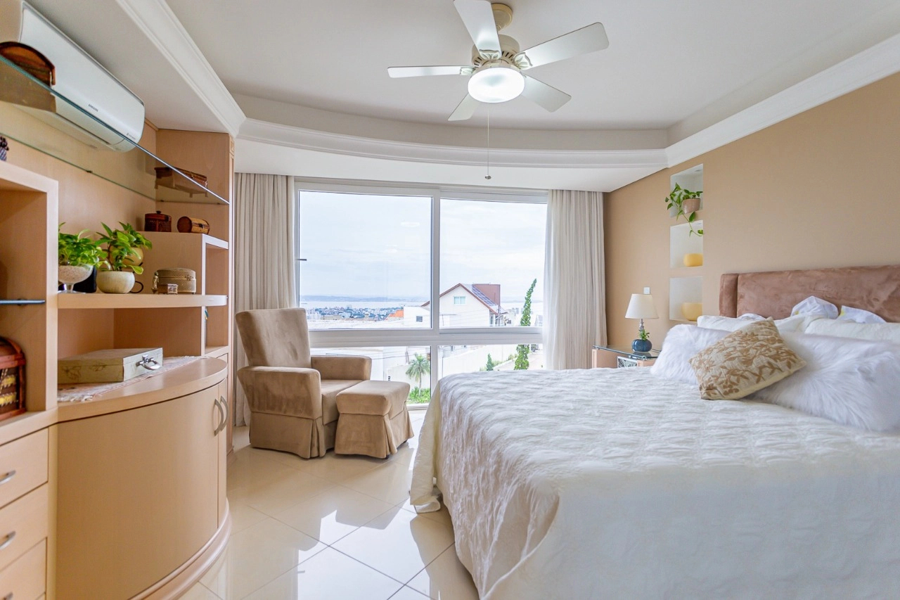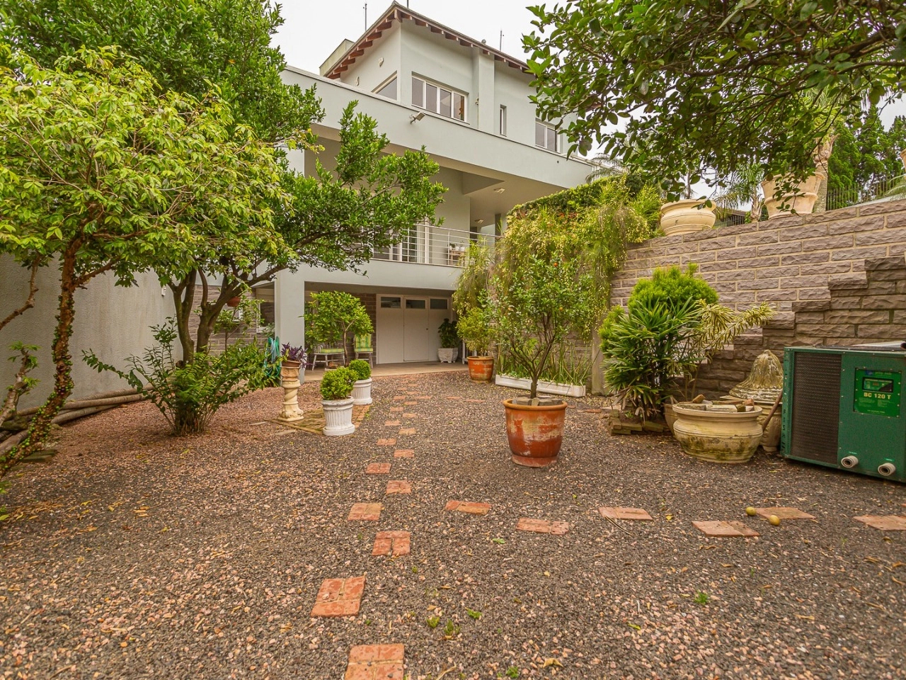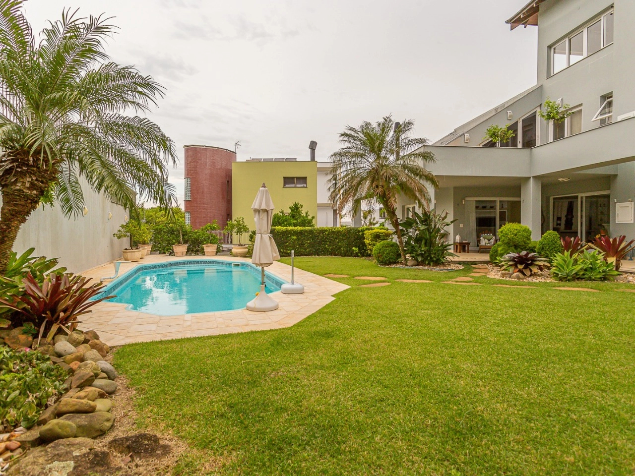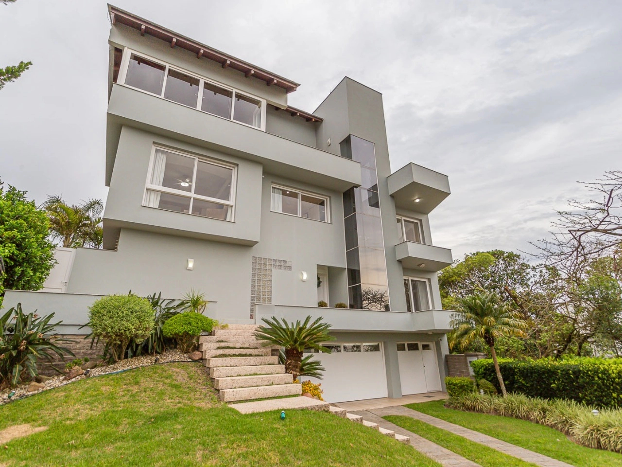 Casa em condomínio distribuída em 4 pavimentos. Vista espetacular para o Rio Guaíba e cidade. Semi mobiliada,2 dormitórios sendo 1 suíte com closet hidromassagem, com piso, louças e metais em material importado e no mezanino opção para mais 1 dormitório, gabinete, banheiro social, amplo living para 3 ambientes com pé direito duplo, todo em porcelanato Classe A, lareira, lavabo e sala de jantar com acesso direto ao pátio com jardim e piscina. Último pavimento com academia, estar com lareira e bar, banheiro privativo, rouparia e 2 terraços com esplêndida vista panorâmica da cidade e do Guaíba. Pavimento ao nível da rua com 4 vagas de garagem fechada, banheiro auxiliar, oficina e despensa, salão de festas integrado com adega e de extremo bom gosto. Pátio ao fundo com piscina, paisagismo e avarandado que se integra a sala de jantar, living e cozinha. Área de preservação limitando com fundo do terreno. Piso aquecido em praticamente toda a residência. Monitoramento por câmeras de segurança, cerca elétrica, alarme e muros blindados. Condomínio com portaria 24 horas , salão de festas, quadras de esportes, beach tênis, playground, trilha para caminhadas e quiosque com churrasqueira.