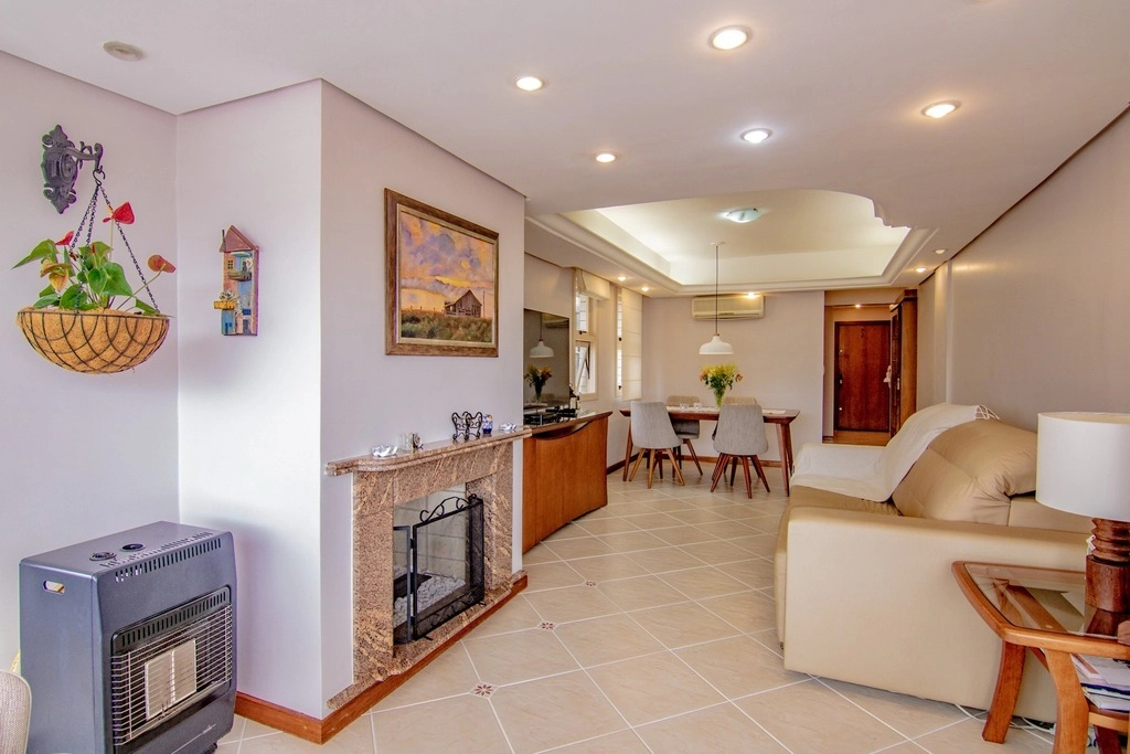 Amplo apartamento de 2 dormitórios, em rua calma do Bairro Petrópolis. Apartamento de 2 dormitórios sendo 1 suíte, com sacada transformada em gabinete. O 2º dormitório também com sacada. 2 banheiros com janela. Sala para 3 ambientes: jantar, estar com lareira e espaço gourmet com espera para churrasqueira. Cozinha montada, área de serviço independente e dependência de empregada completa. Apartamento em excelente estado de conservação, todo mobiliado. Possui box duplo amplo para 2 caminhonetes. Ótima localização, meia quadra do clube União Petrópolis. Edifício todo revestido com pastilhas, hall de entrada bonito e decorado. Preço e disponibilidade do imóvel sujeitos a alteração sem aviso prévio.