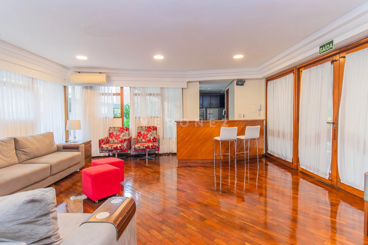 Localizada em tradicional e privilegiada rua do Bairro, edifício imponente com salão de festas, fitness, piscina e portaria 24 hrs.